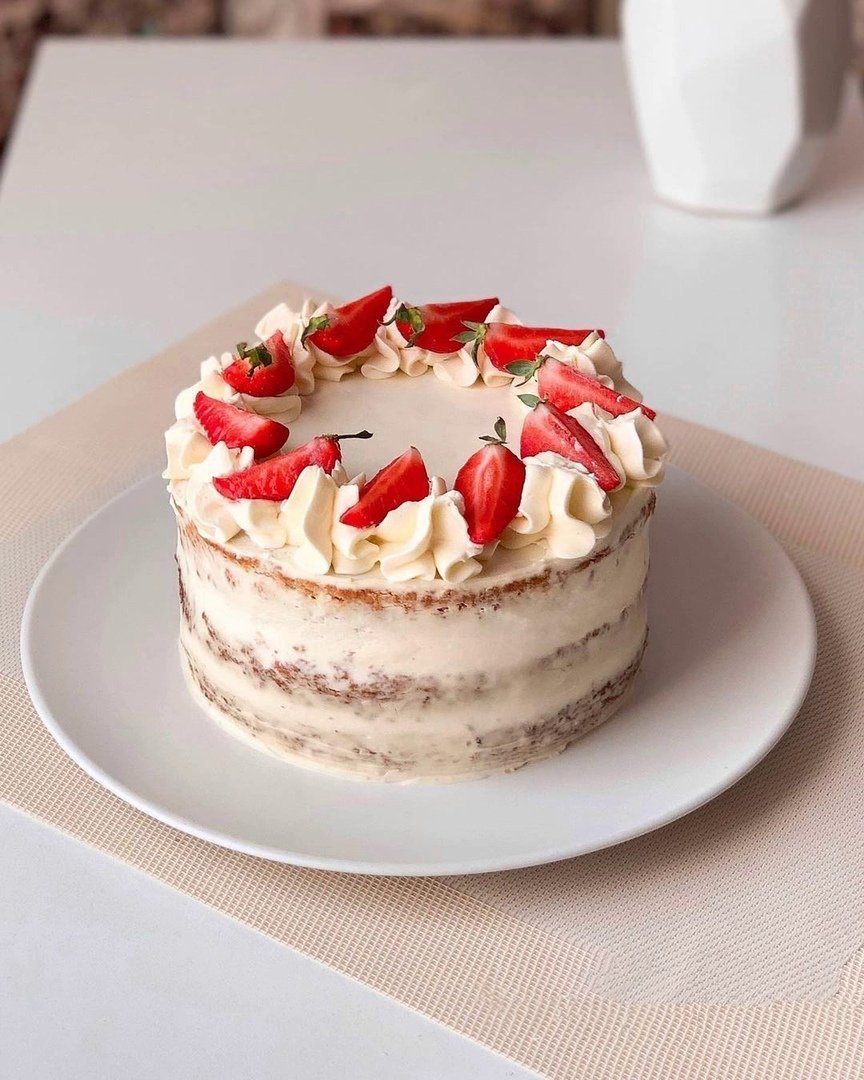 Торт ванильный: ванильный бисквит, крем-чиз,