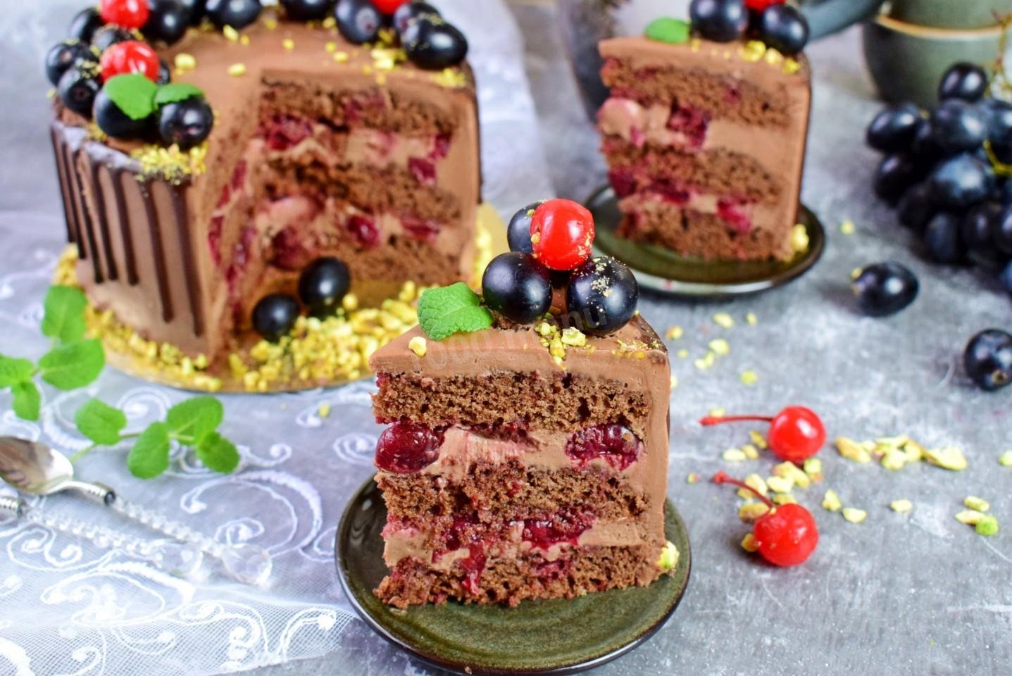 Шоколадно-вишневый торт с кремом чиз