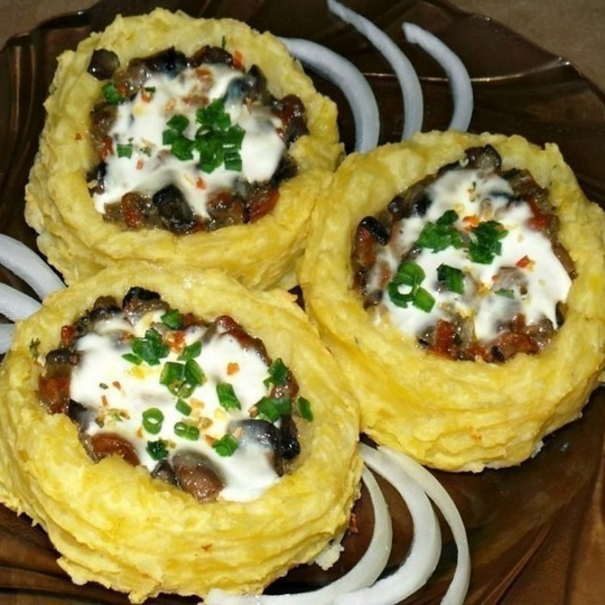 Картофельные гнезда с грибами