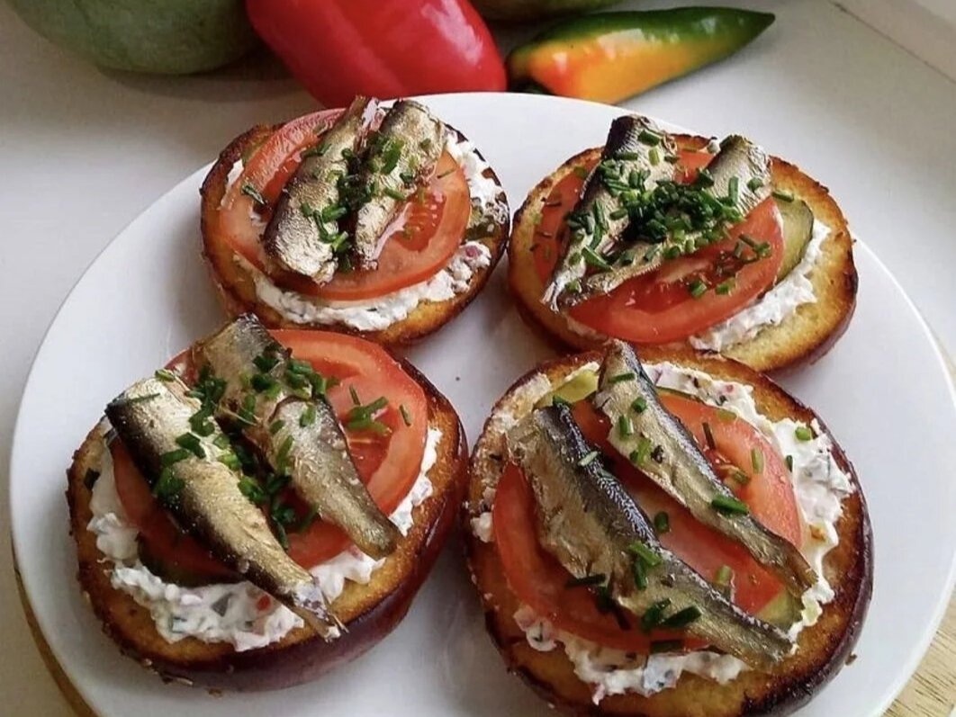 Бутеры со шпротами и помидорами