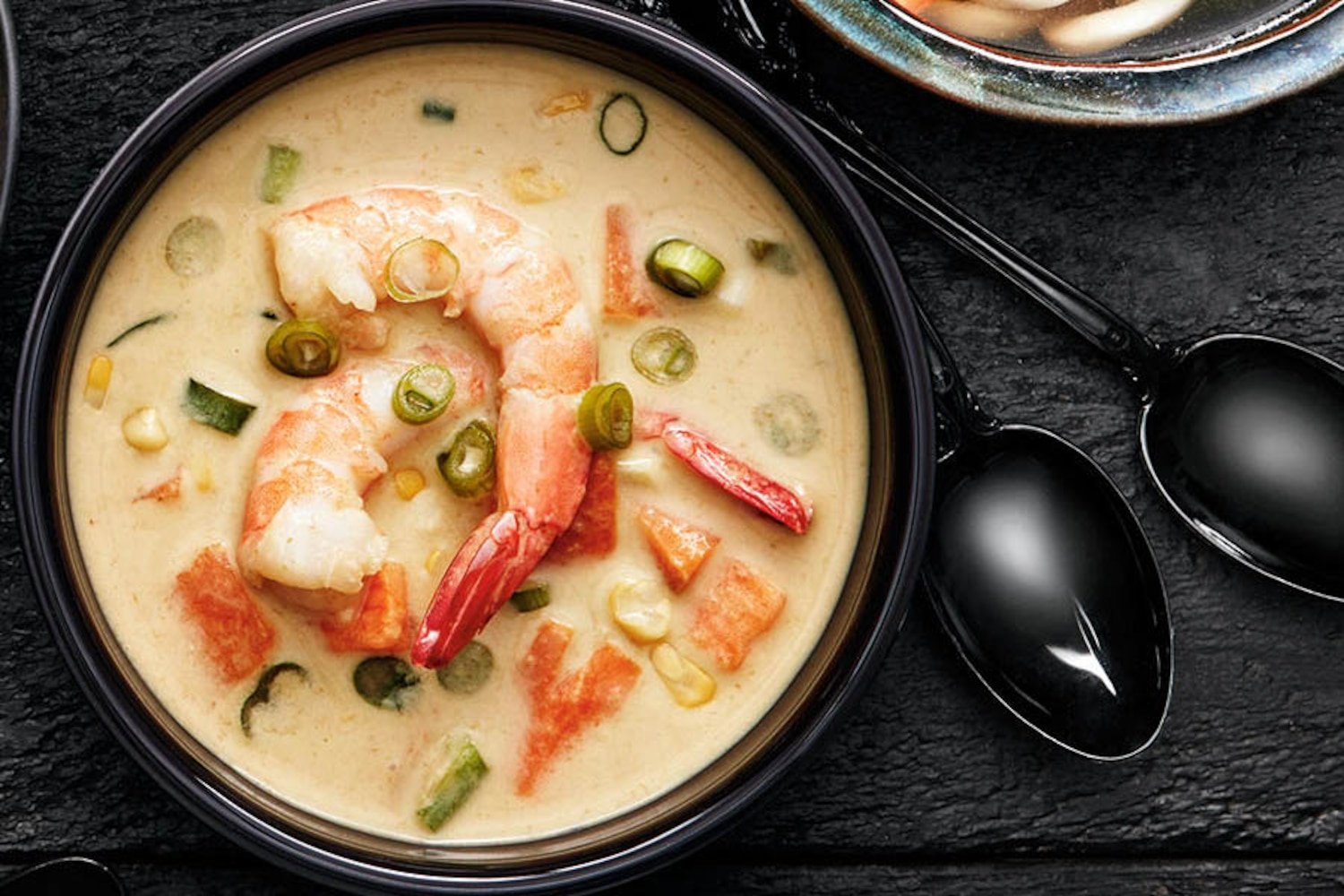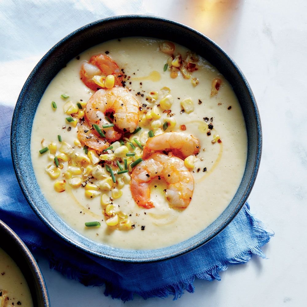 Кукурузный крем суп с креветками