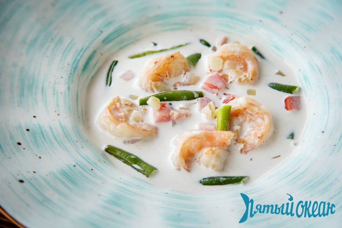 Молочный суп с креветками