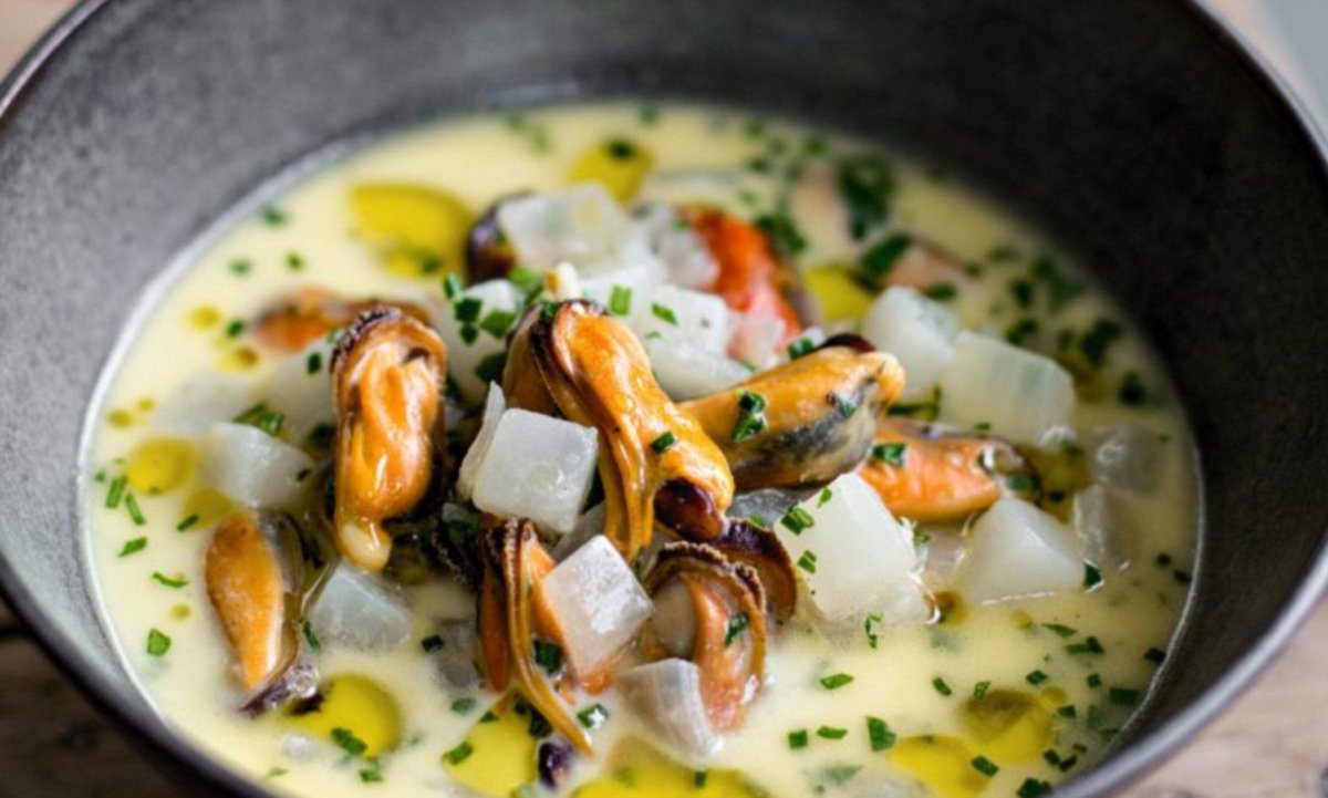 Сырный суп с мидиями