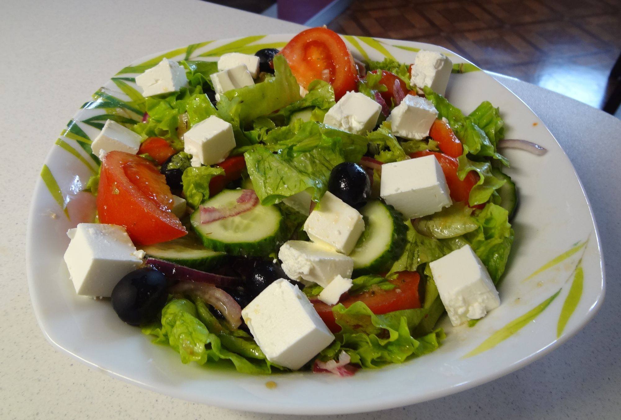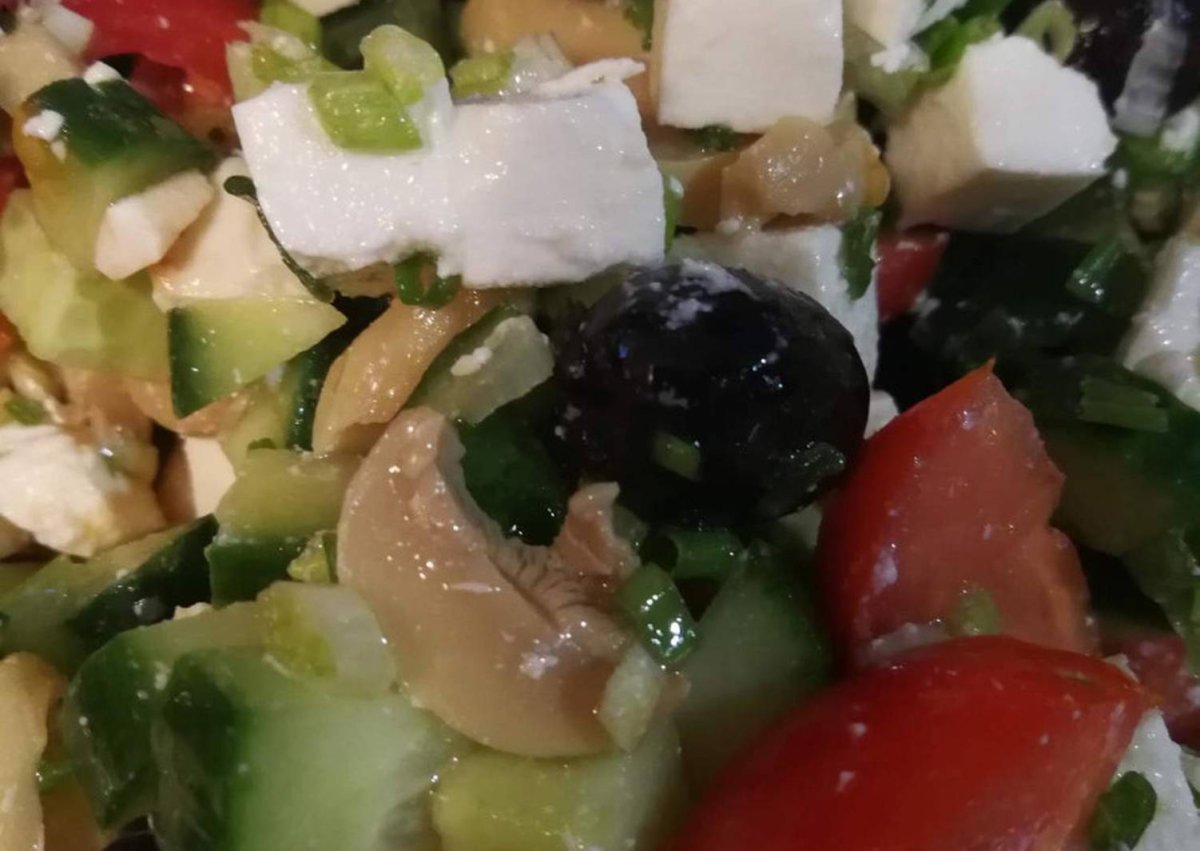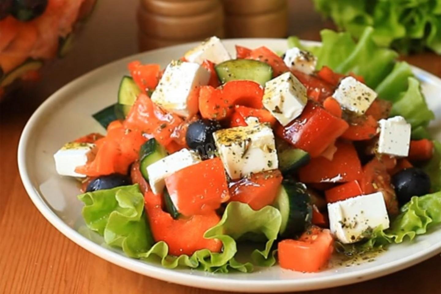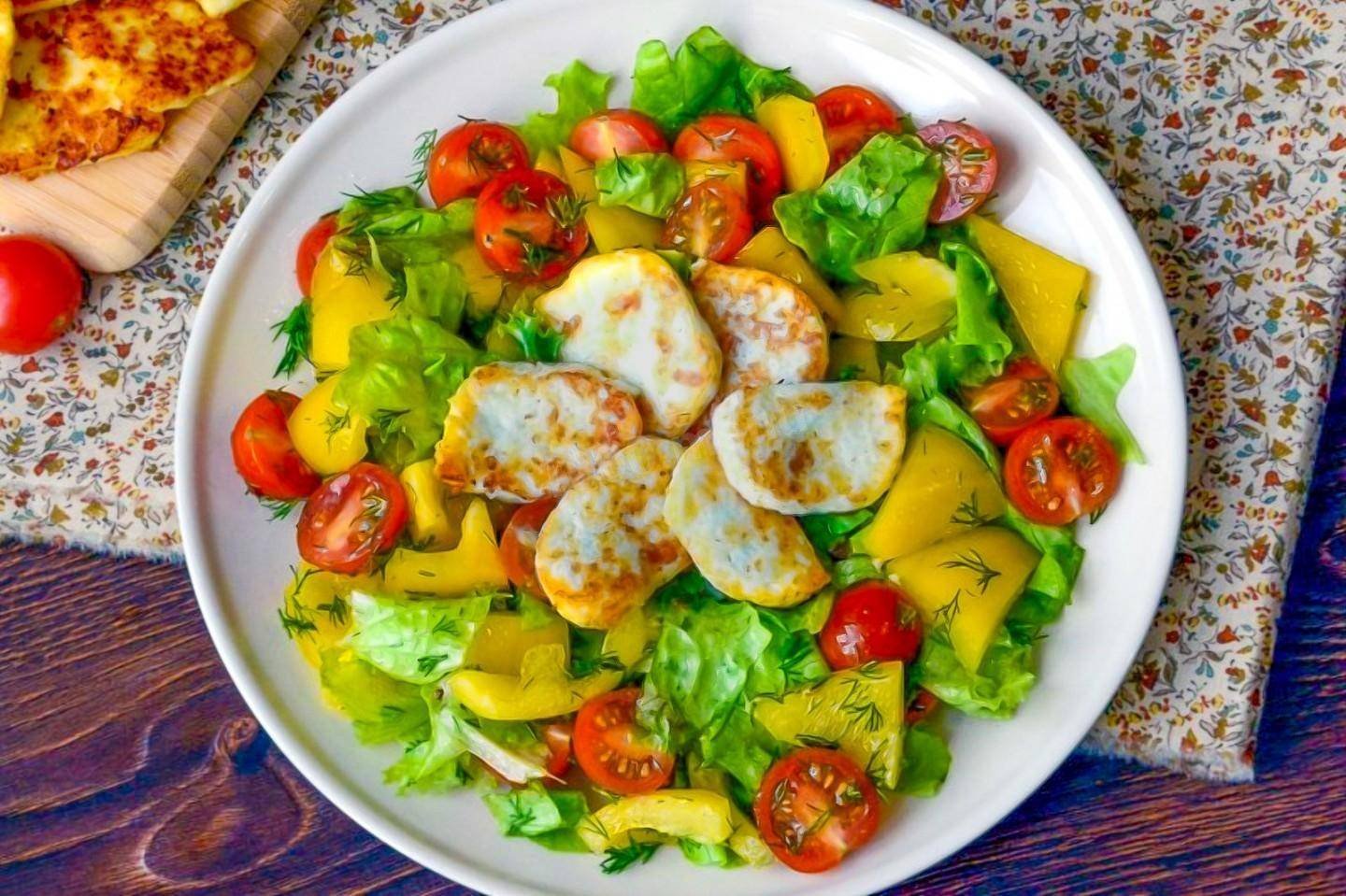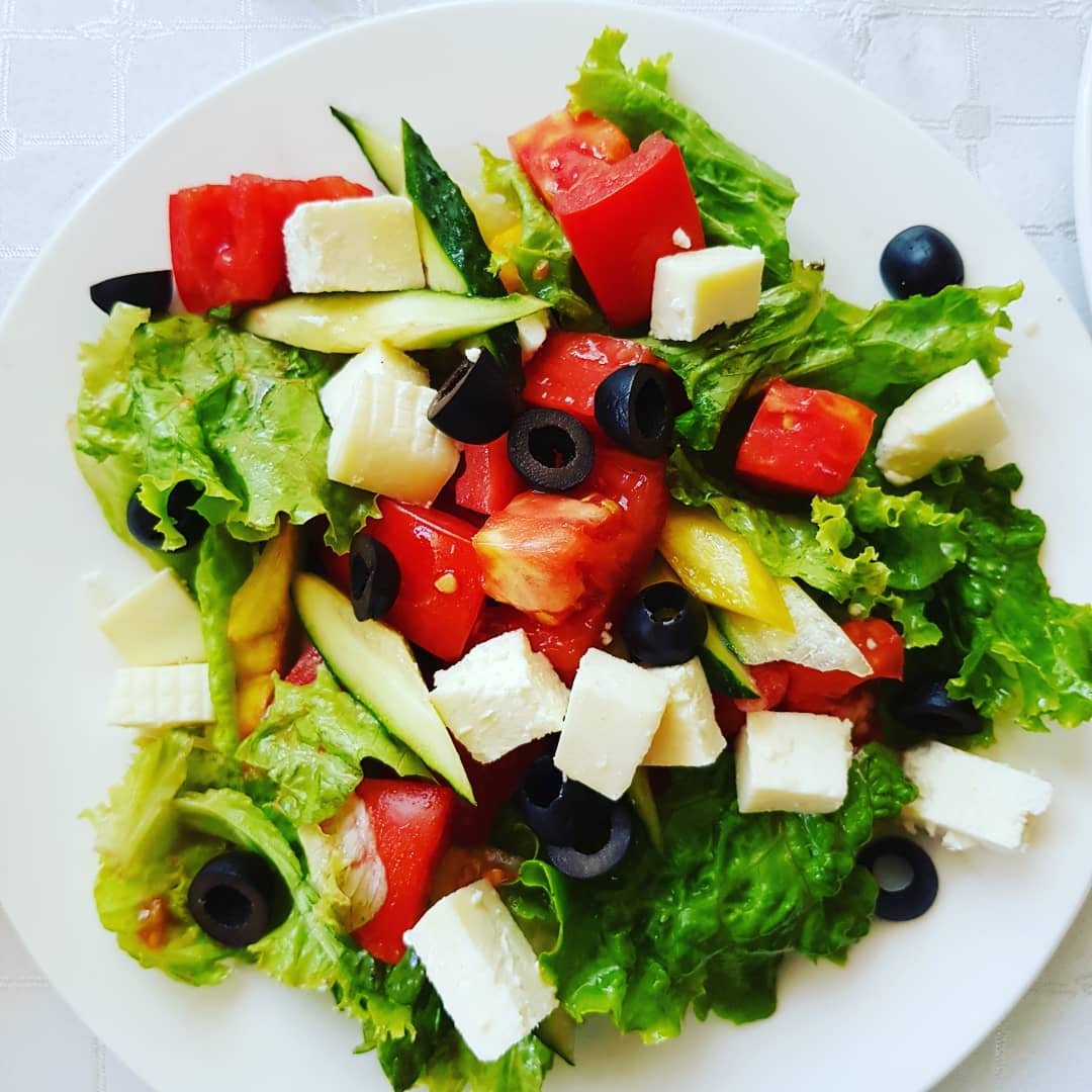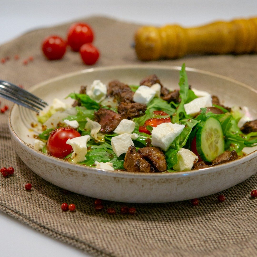 Салат с жареными баклажанами и помидорами, зеленью,брынзой