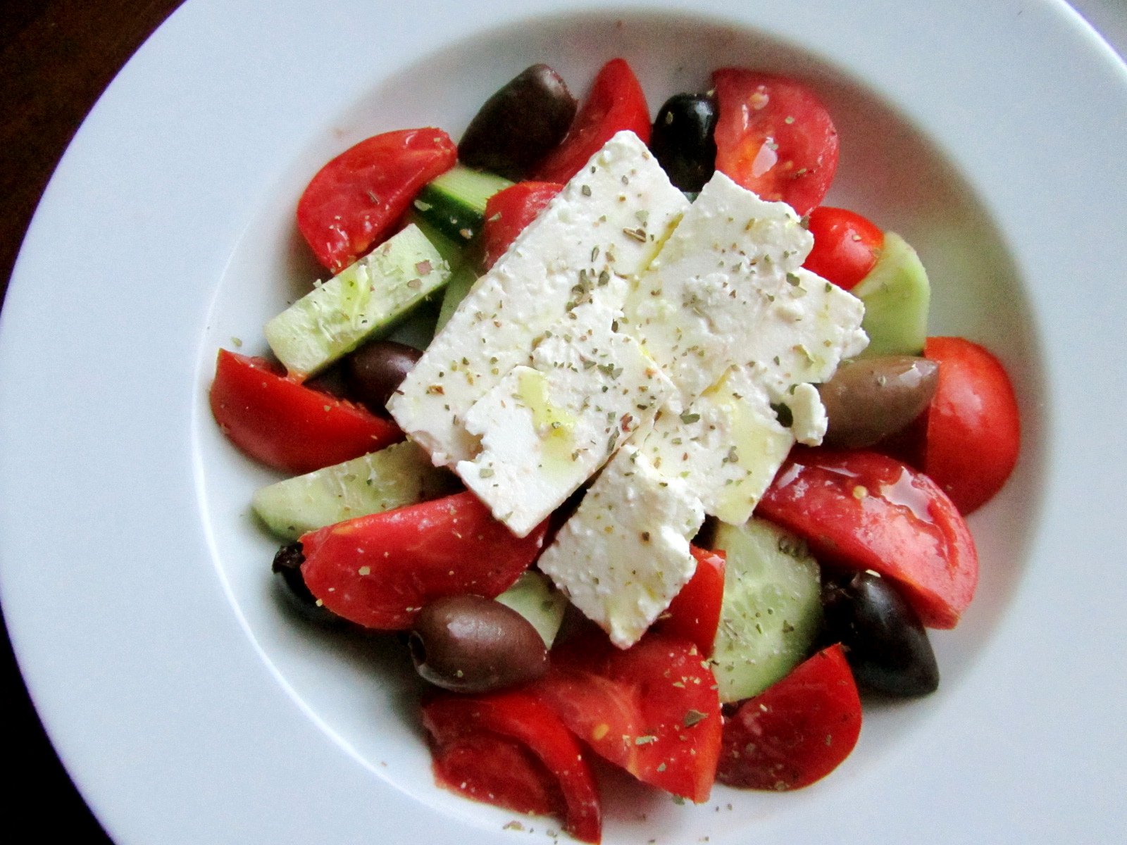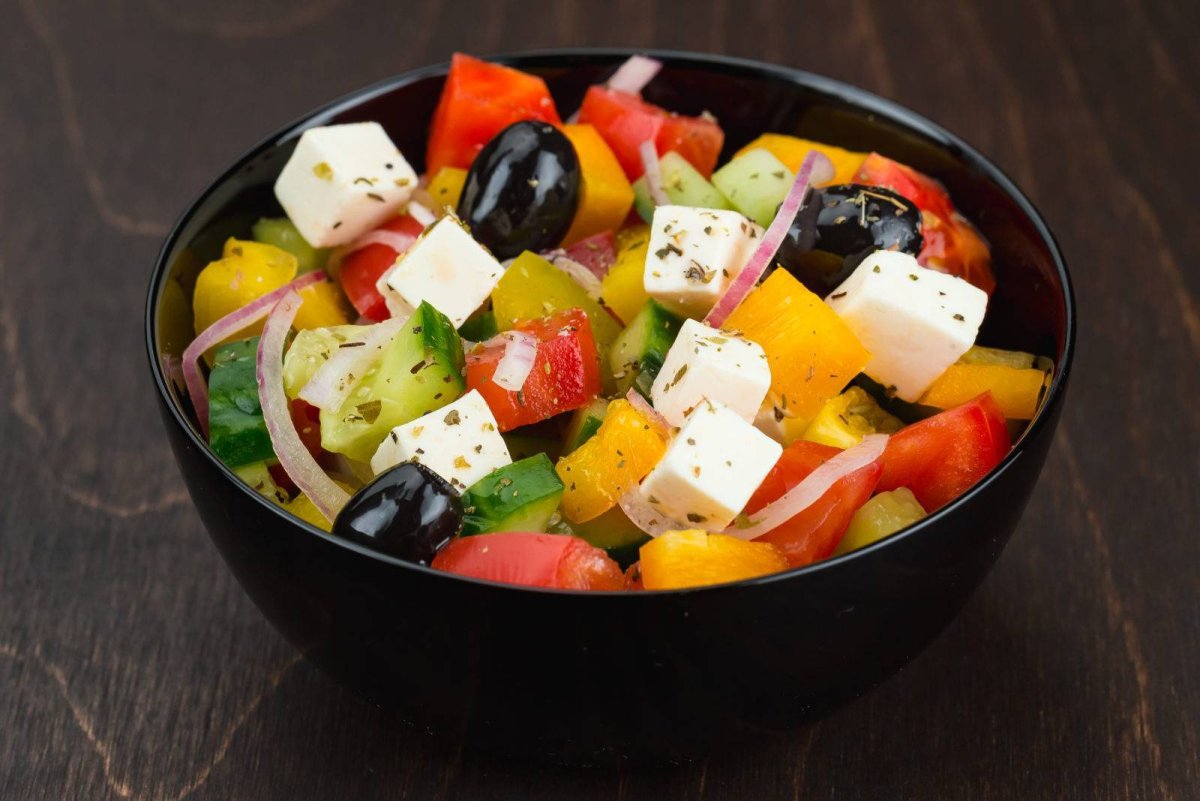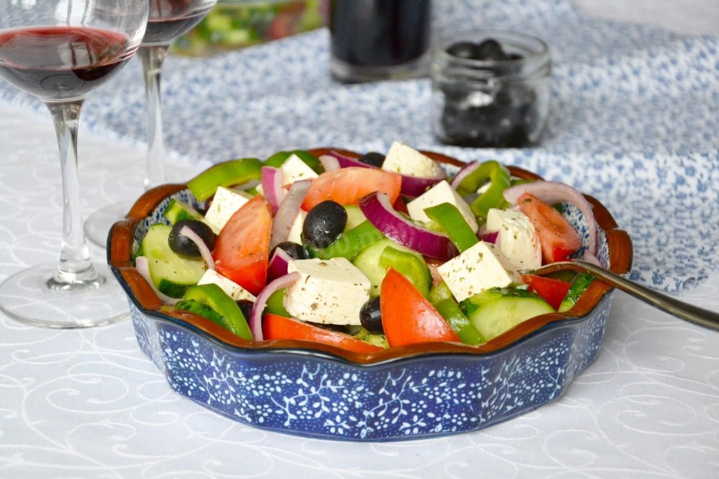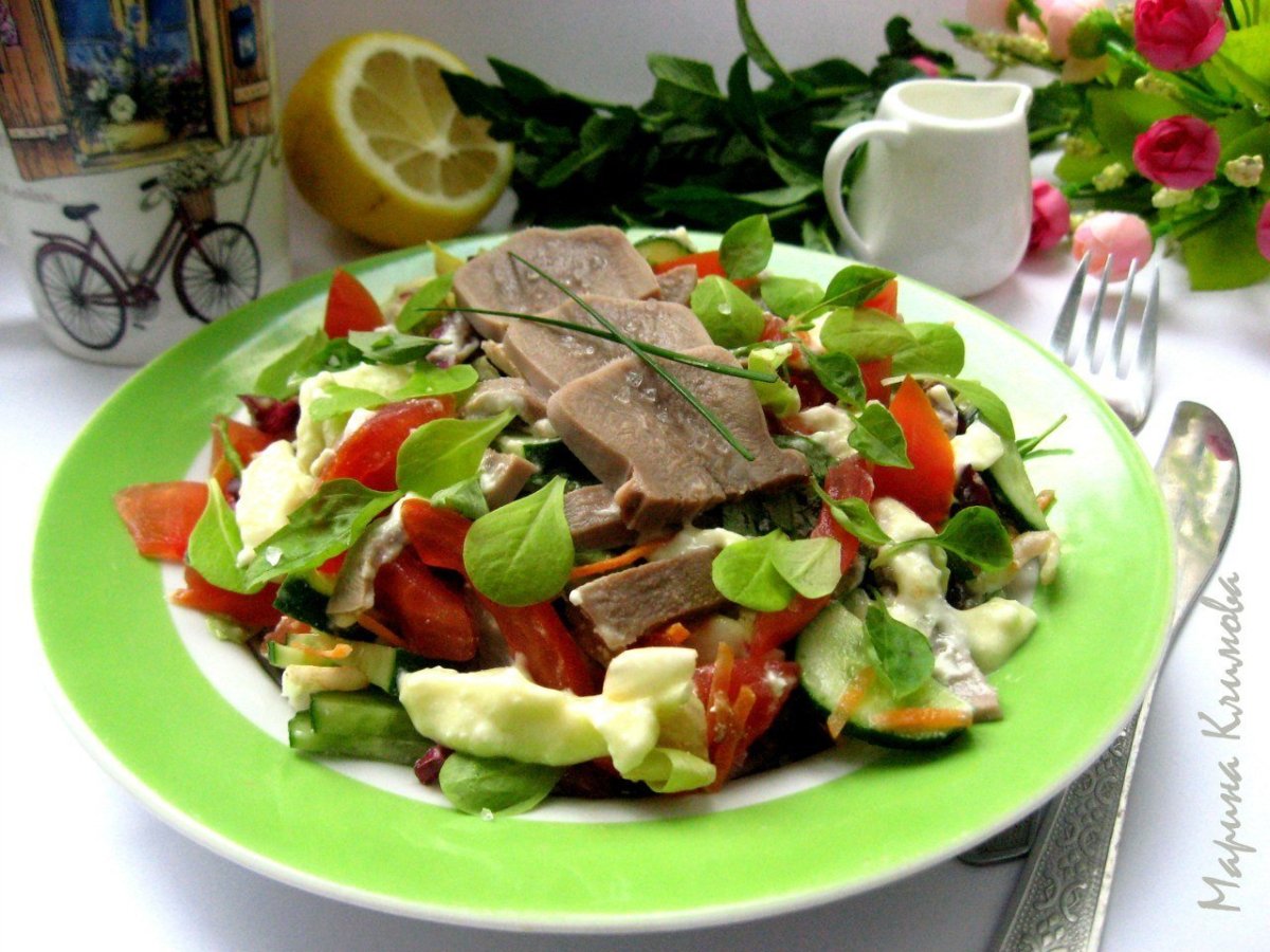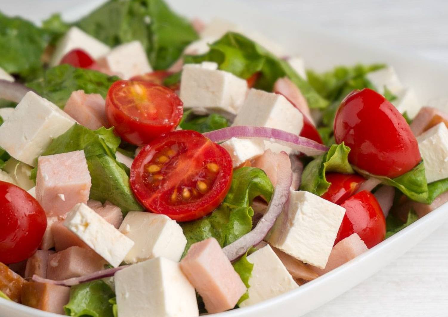Салат с жареными баклажанами и помидорами, зеленью,брынзой