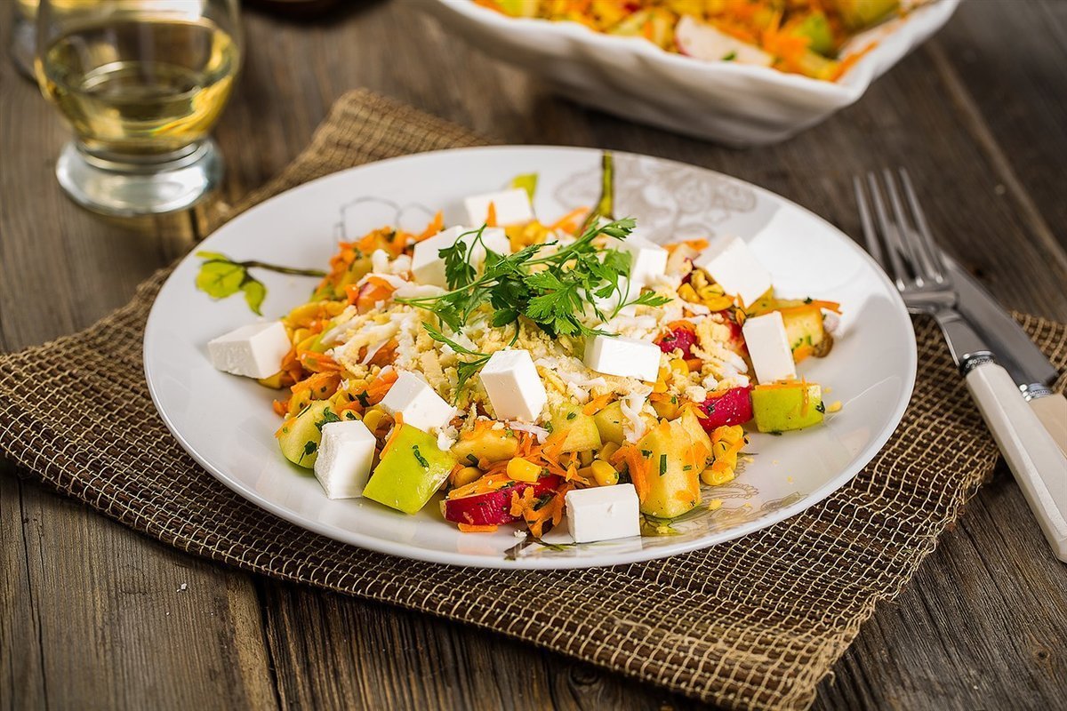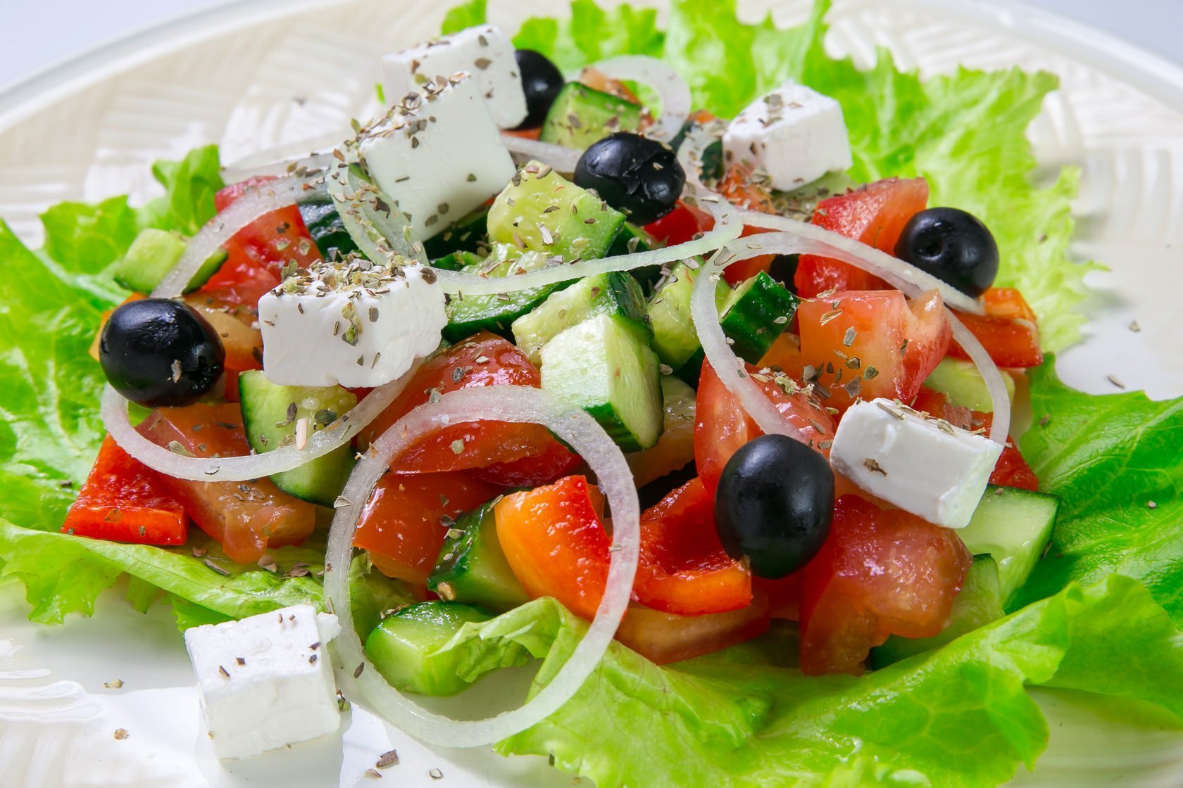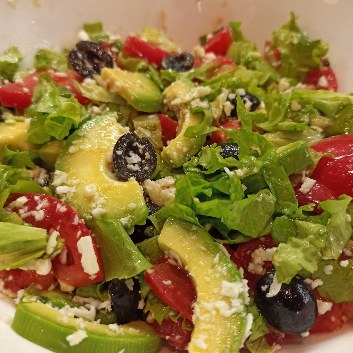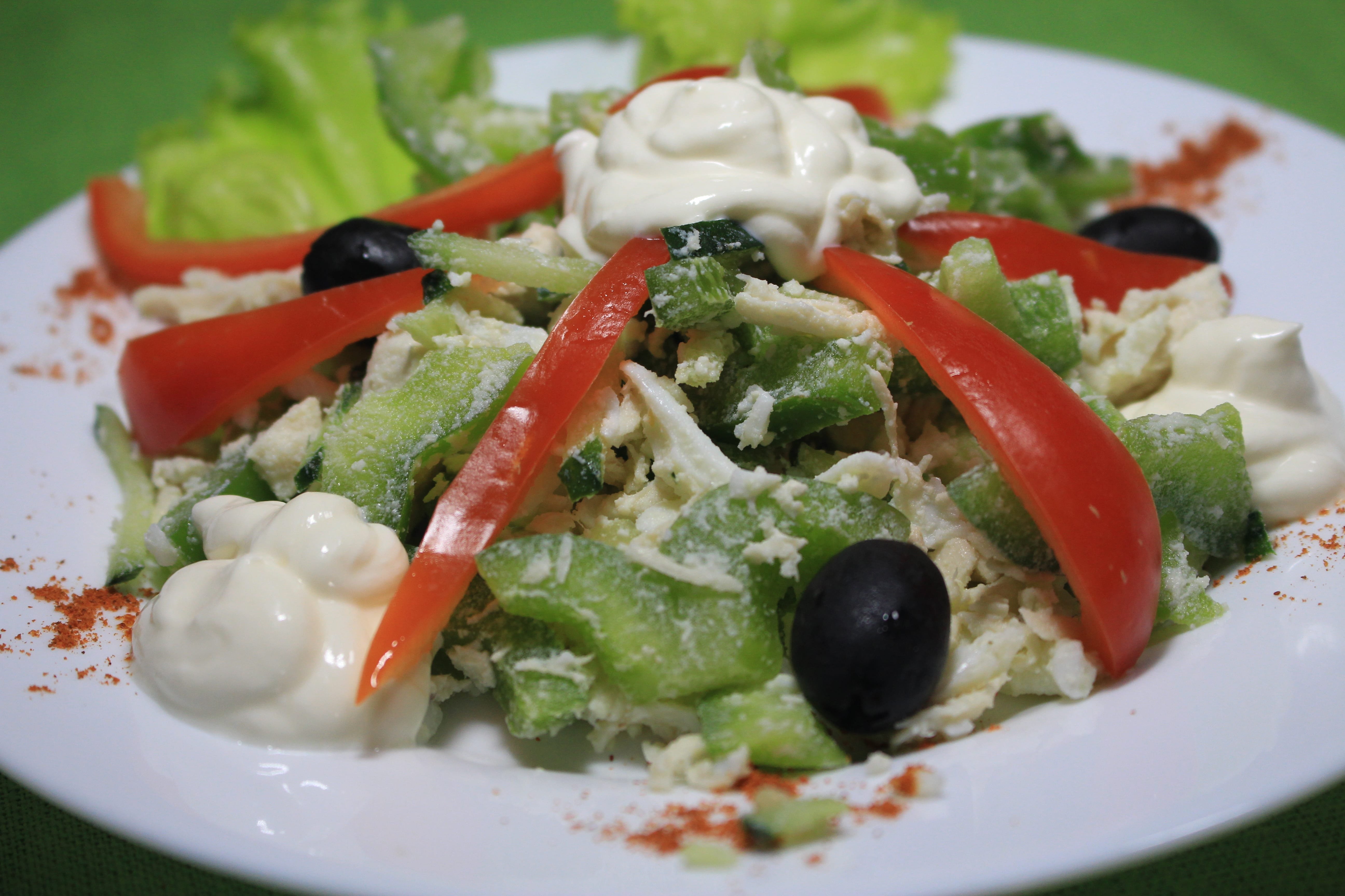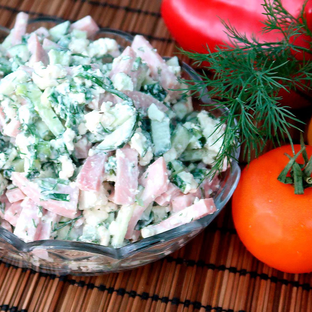 Салат с жареными баклажанами и помидорами, зеленью,брынзой