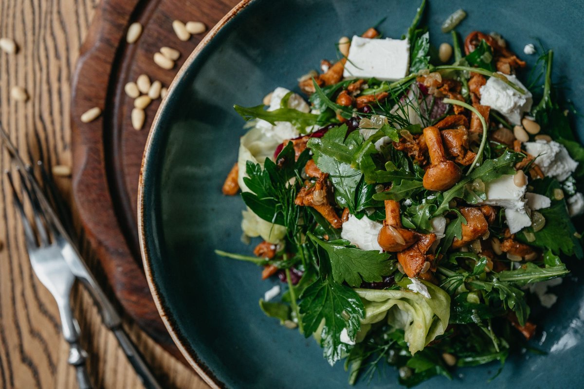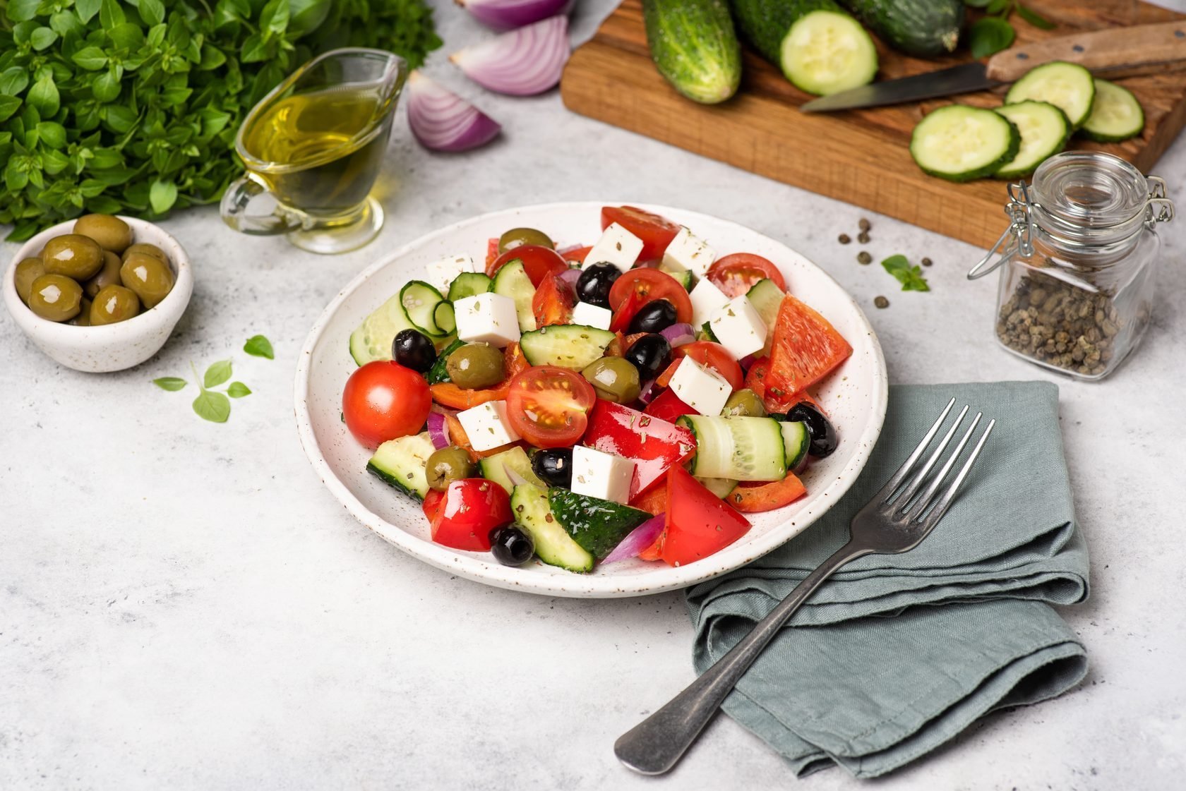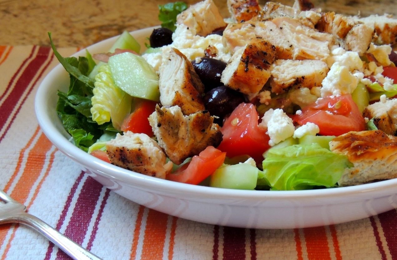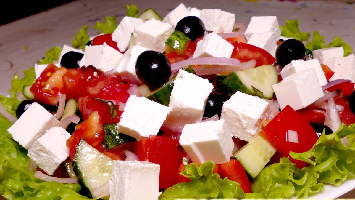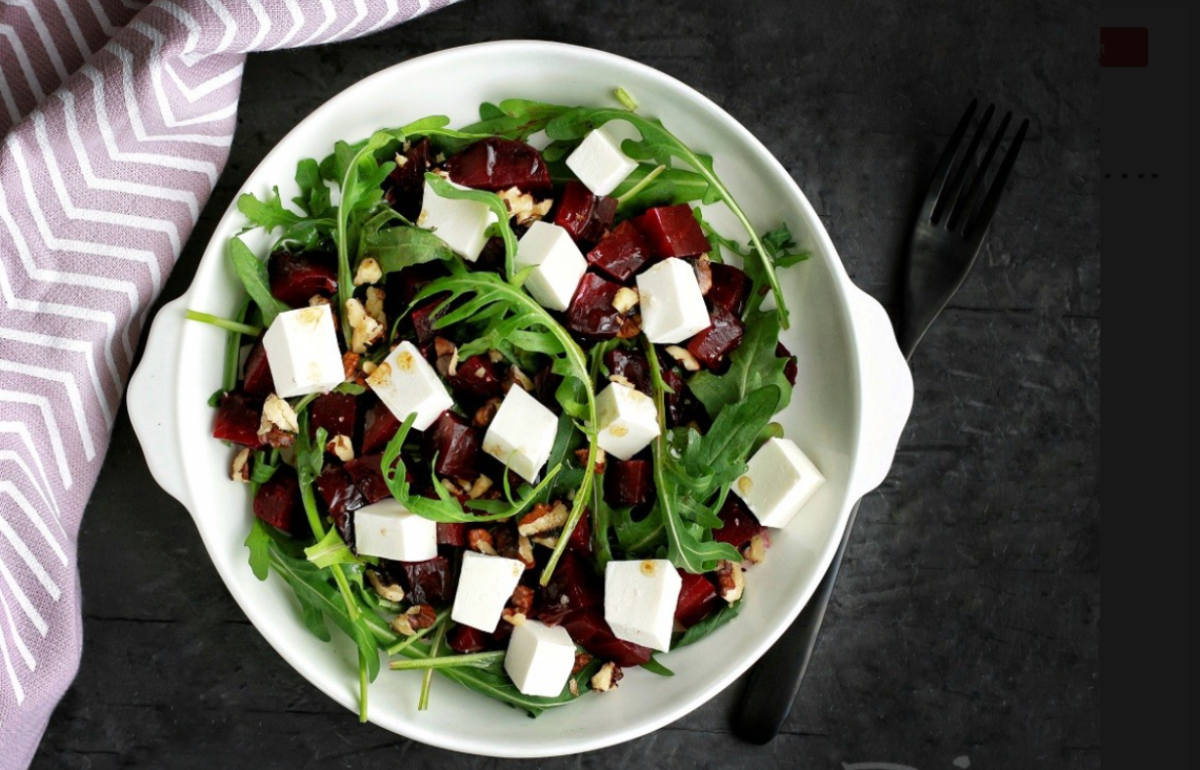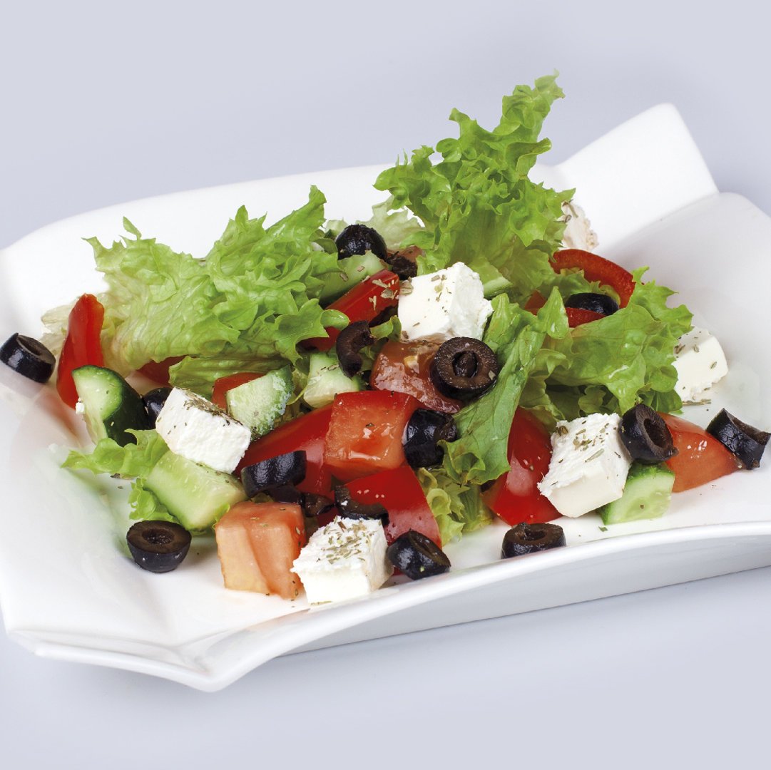 Салат с жареными баклажанами и помидорами, зеленью,брынзой