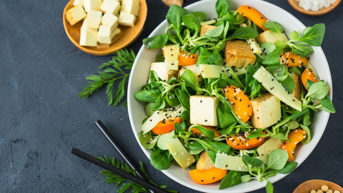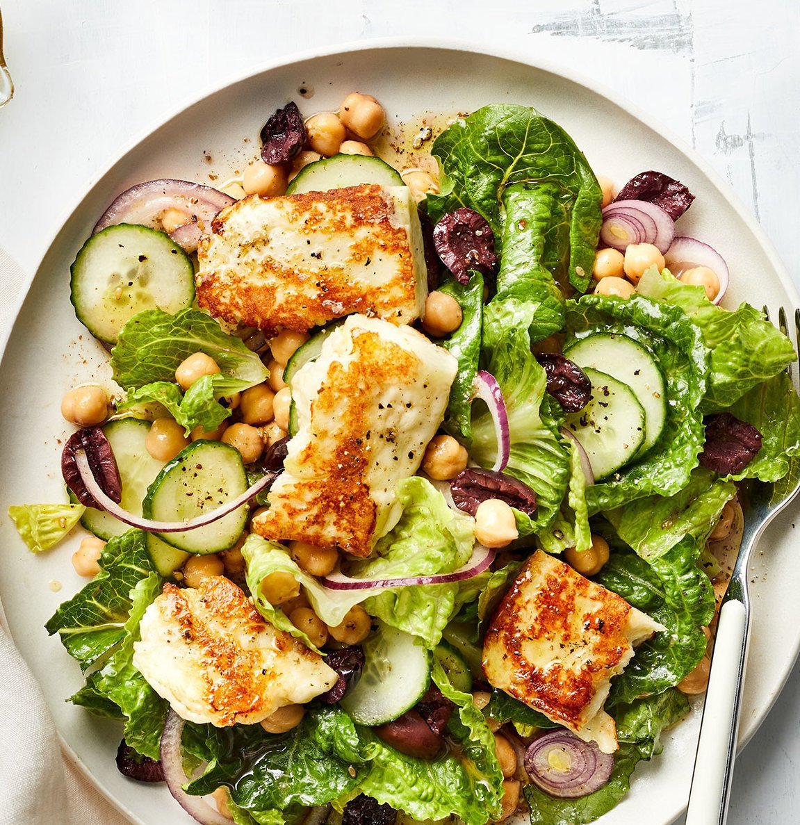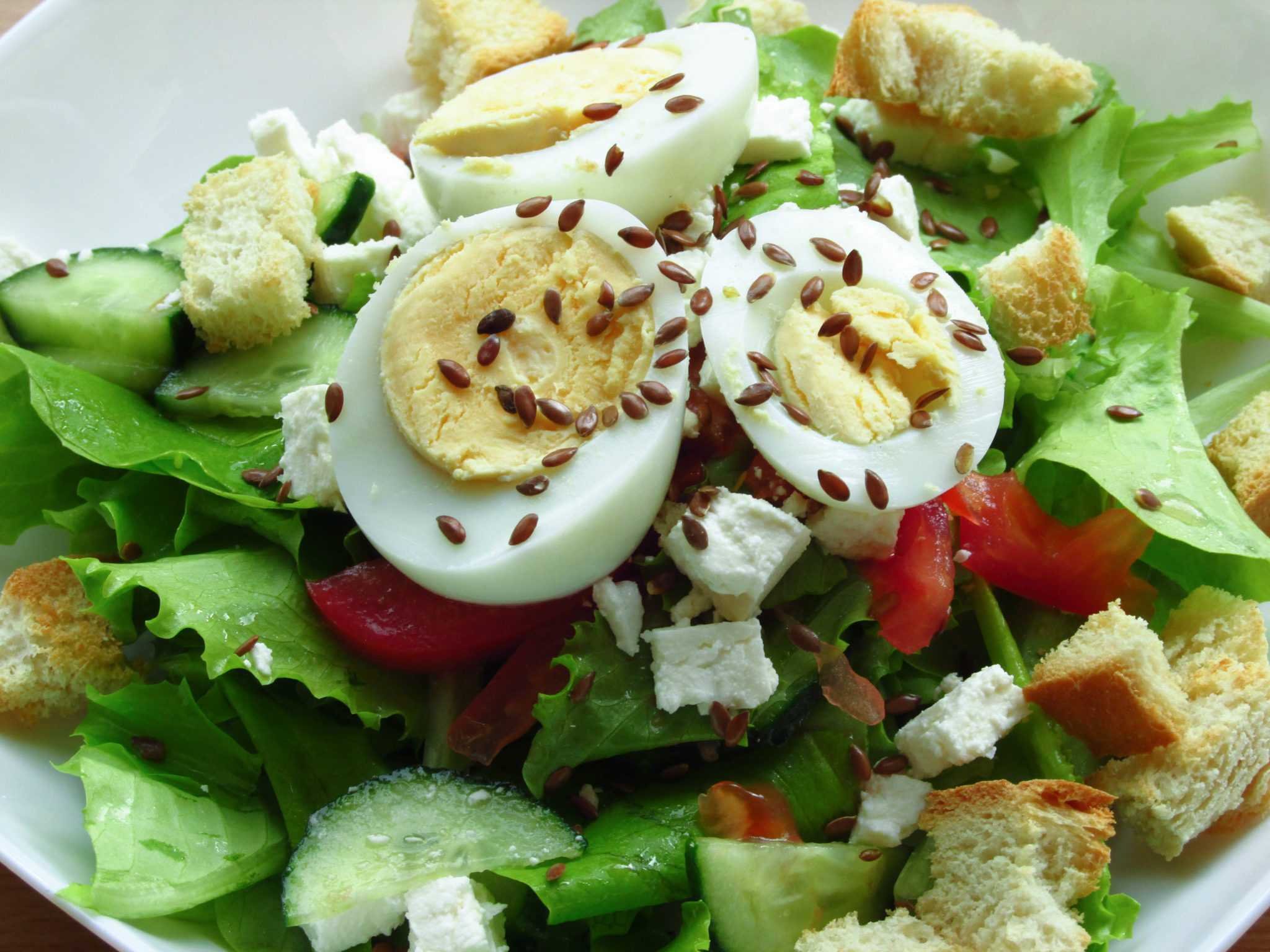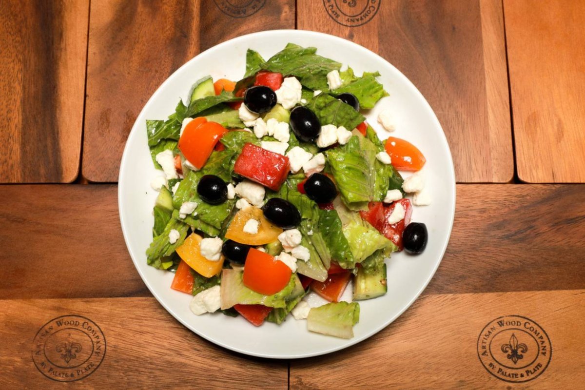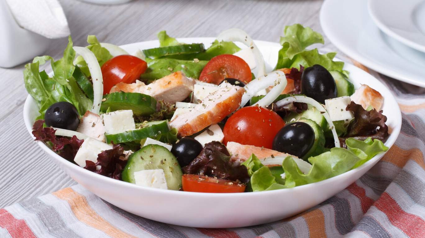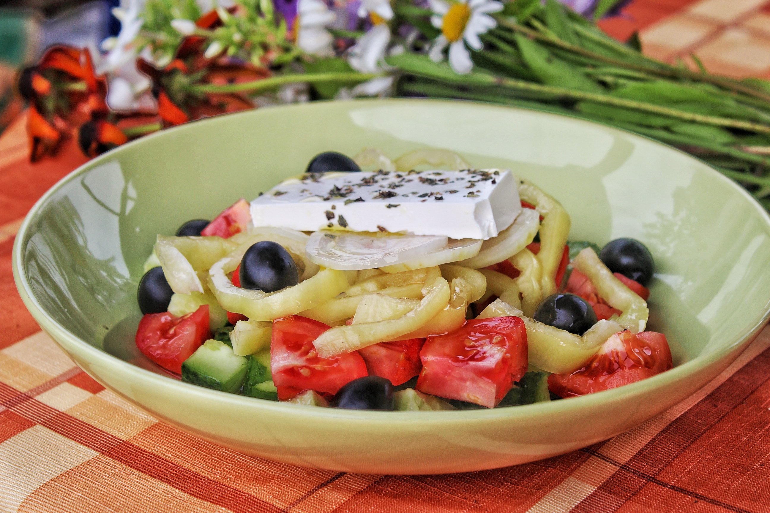 Салат с жареными баклажанами и помидорами, зеленью,брынзой