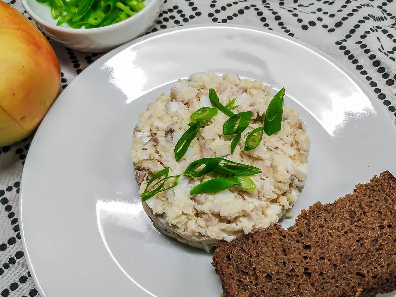 Закуска из селедки на хлеб с яйцом и яблоком