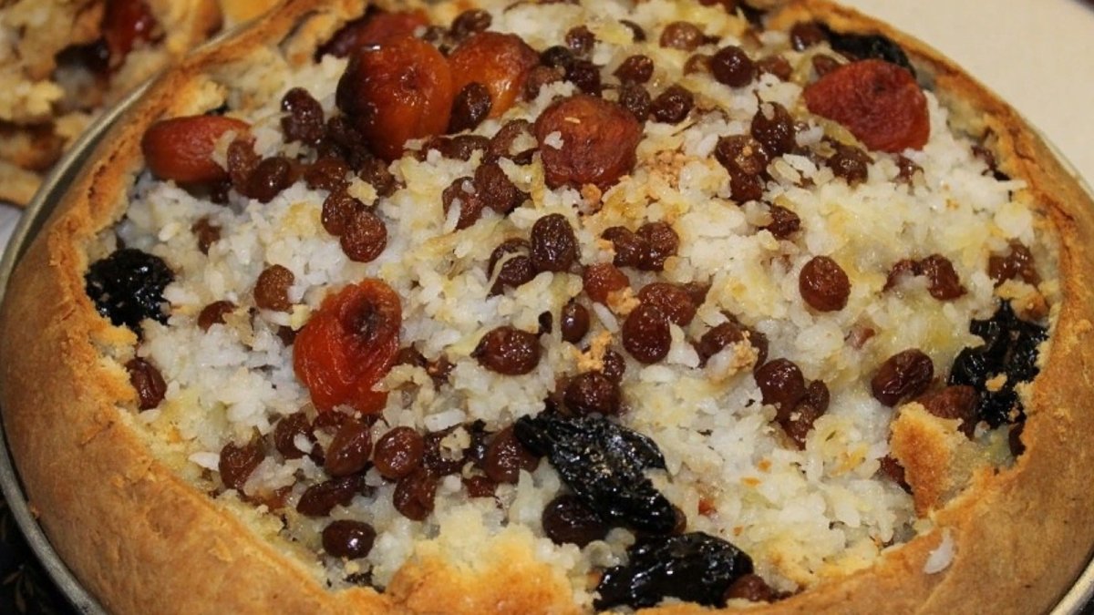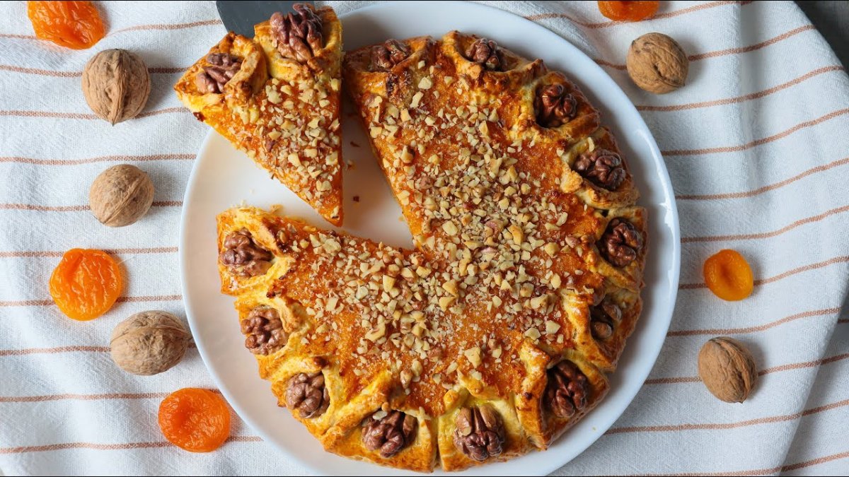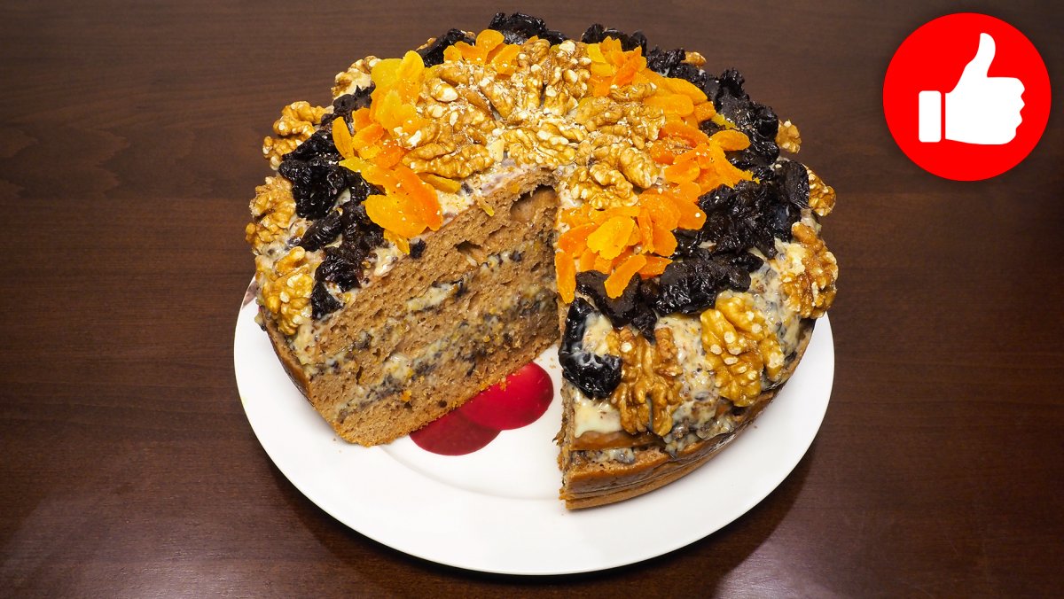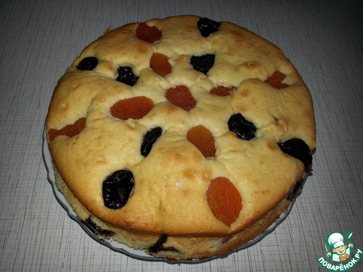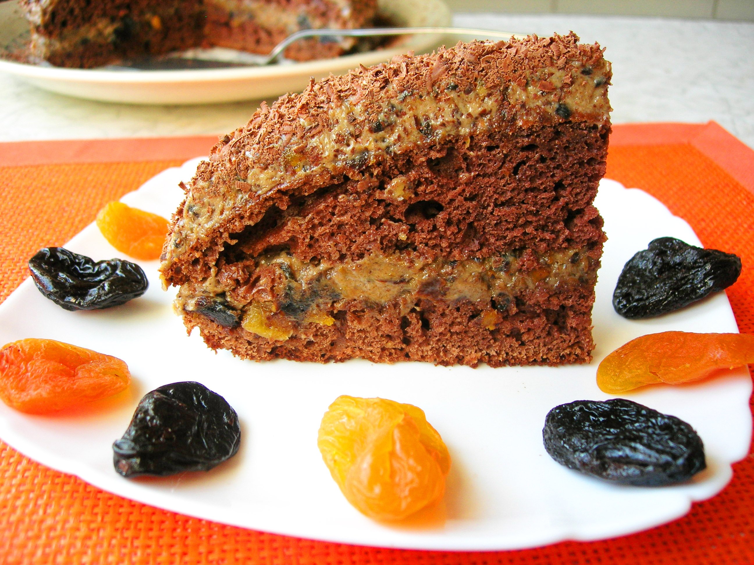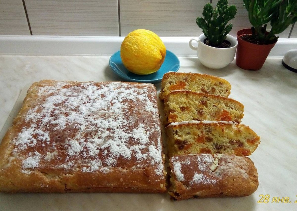 Трёхслойный пирог с курагой и черносливом и лимоном