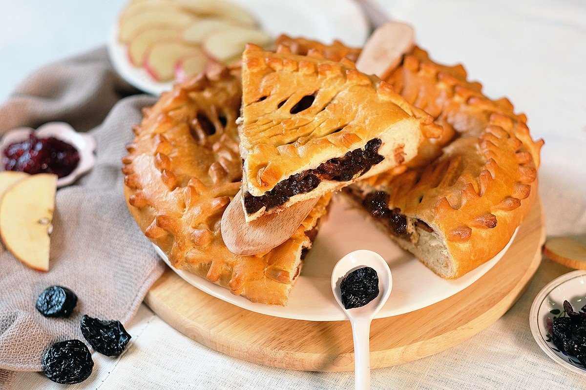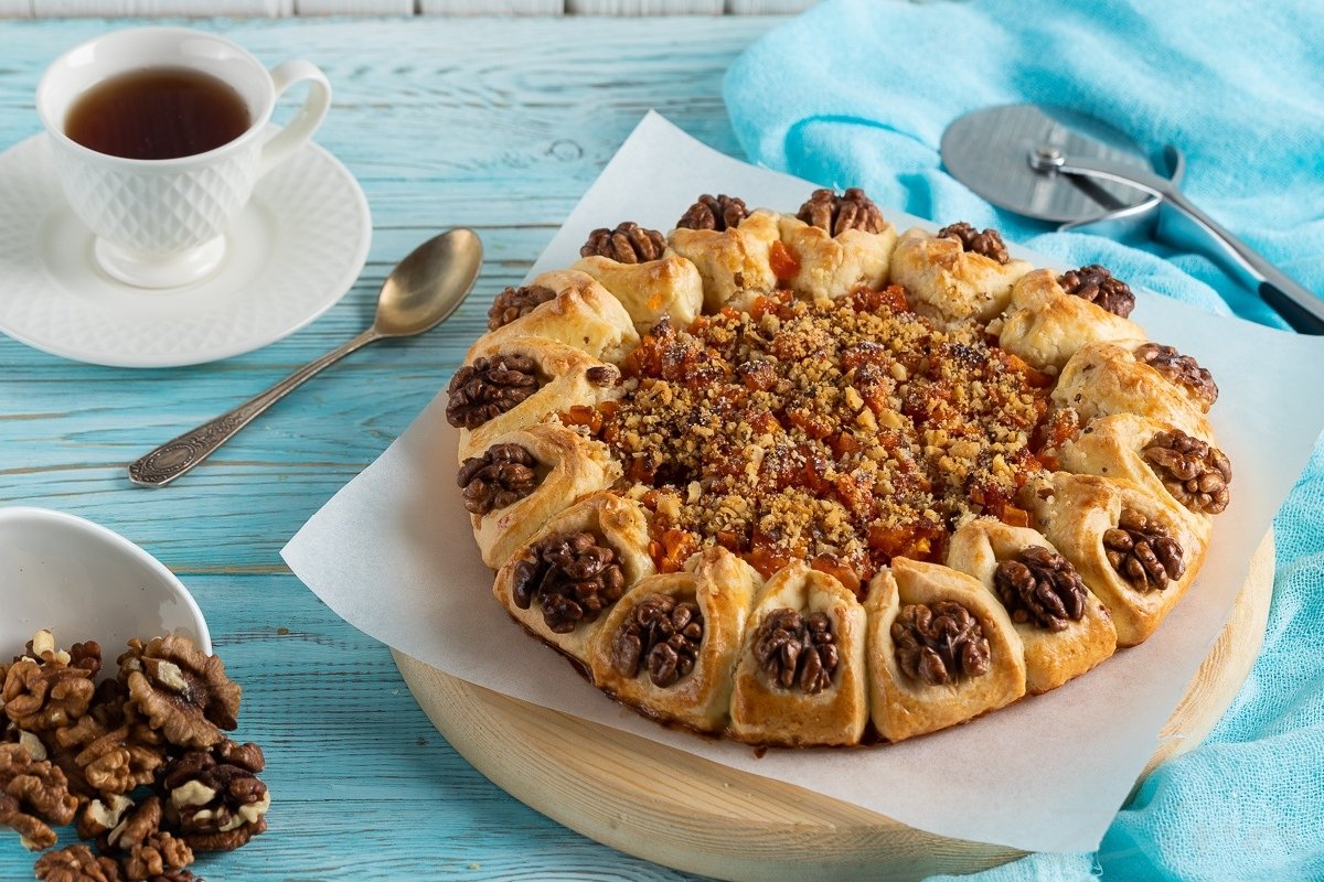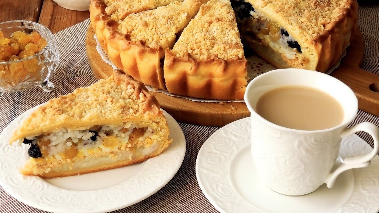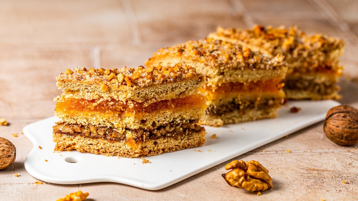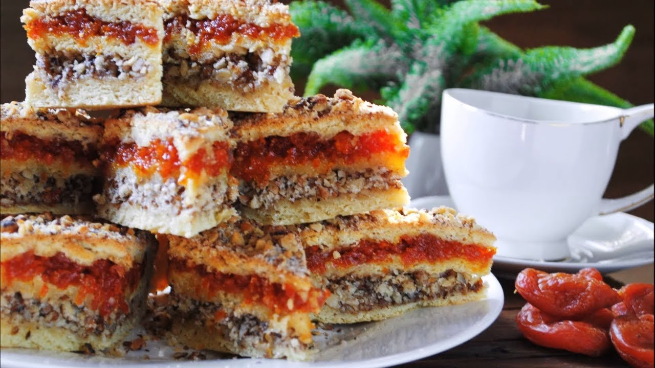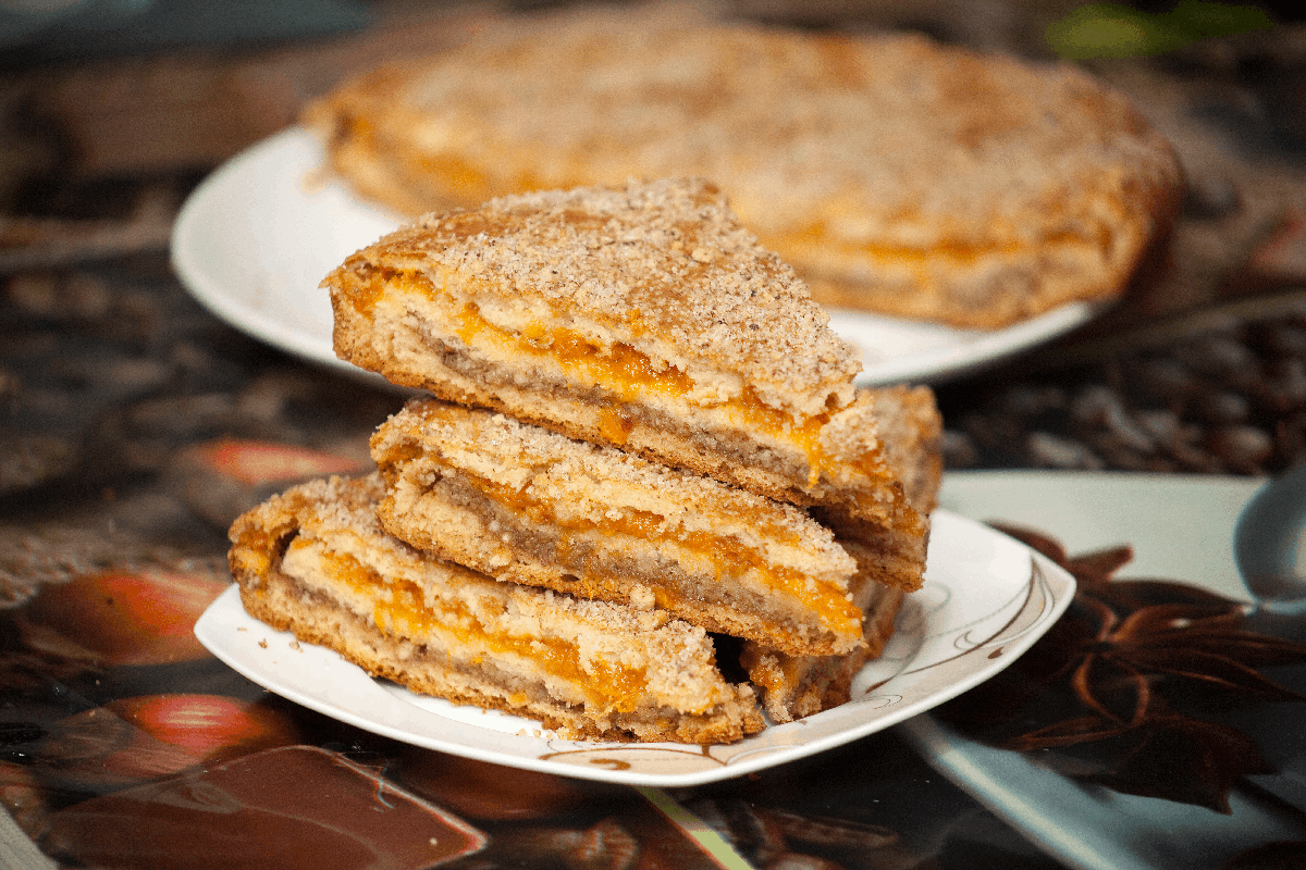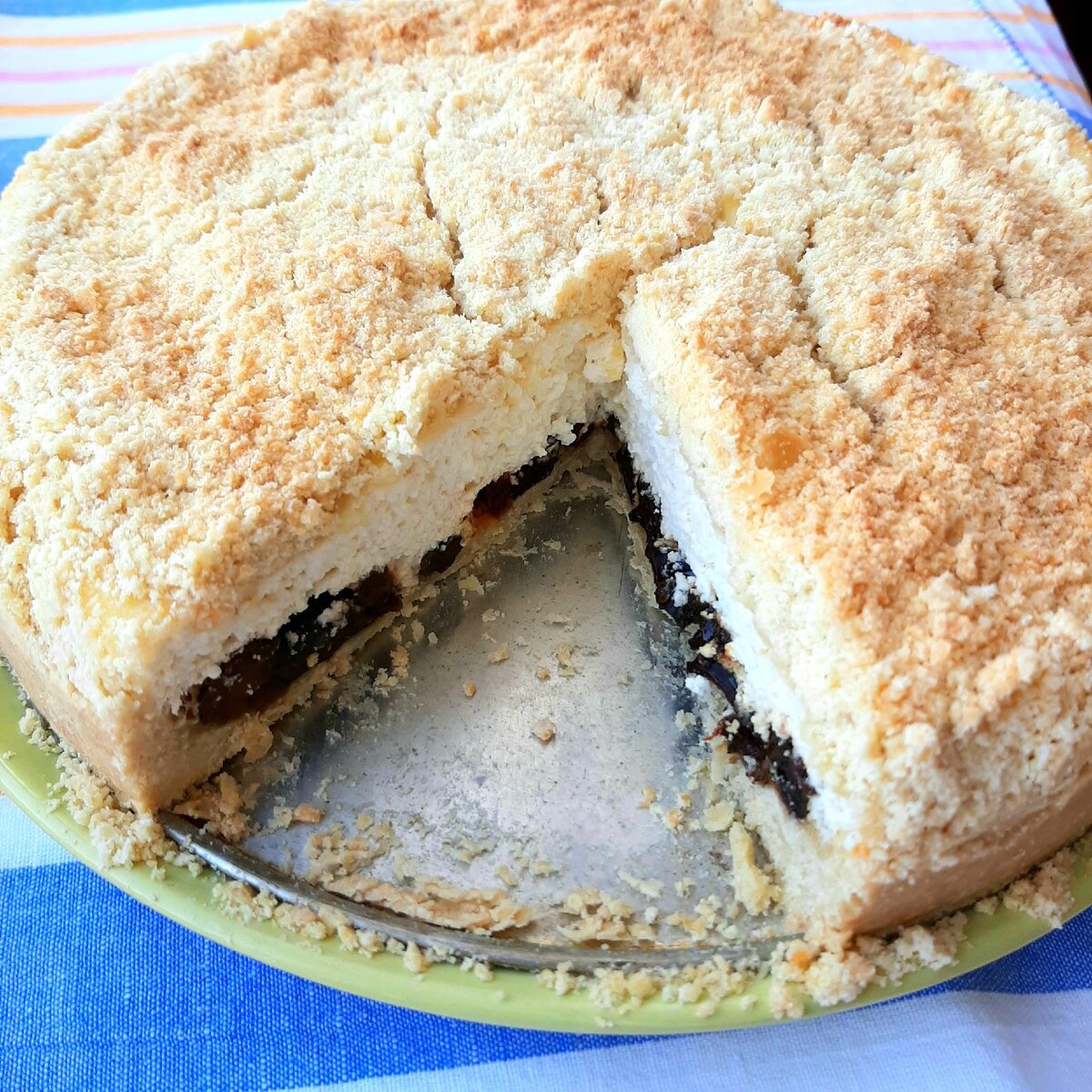 Трёхслойный пирог с курагой и черносливом и лимоном