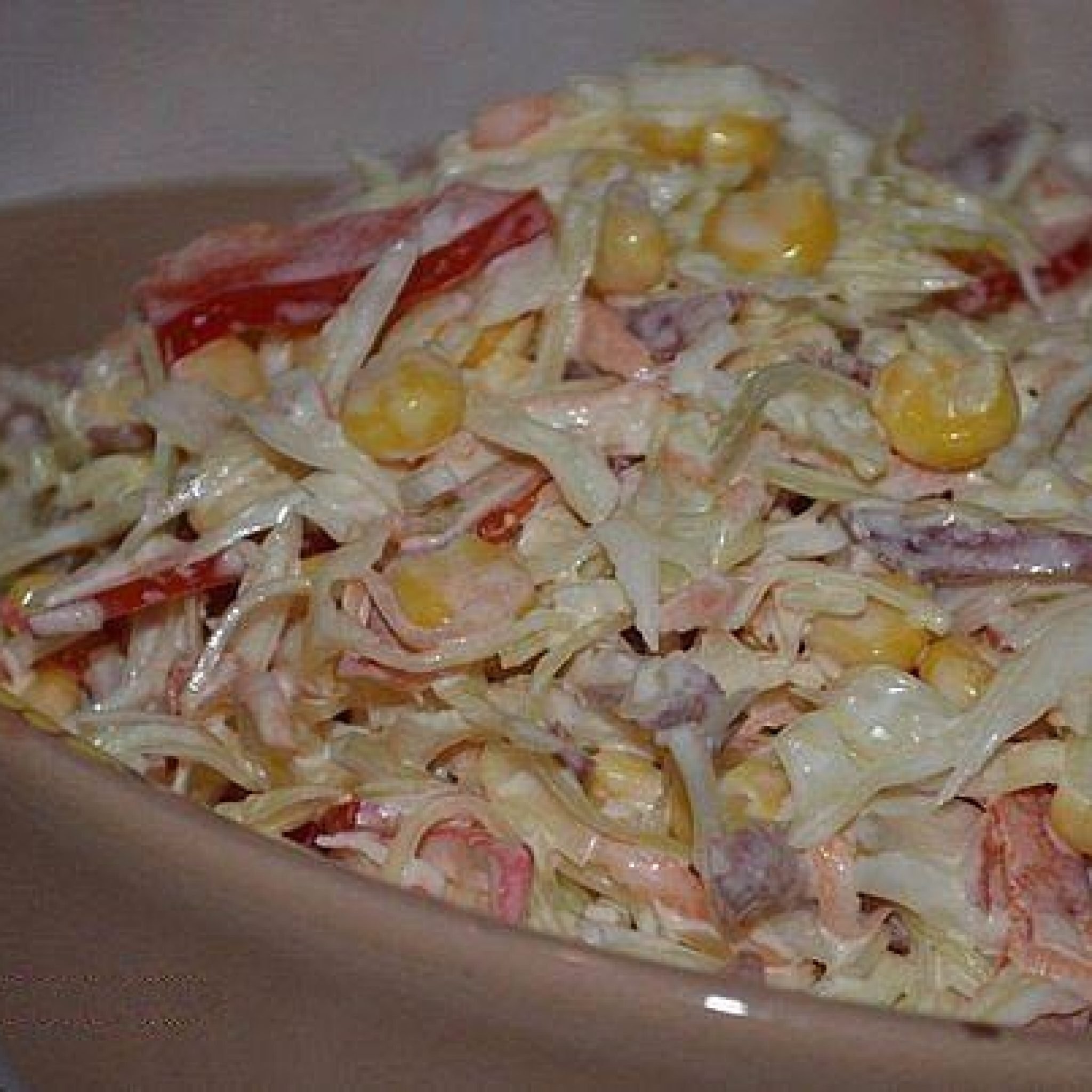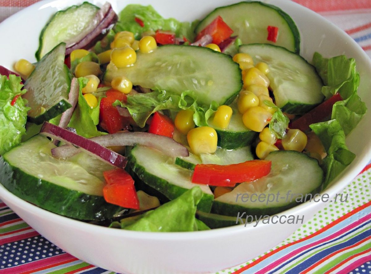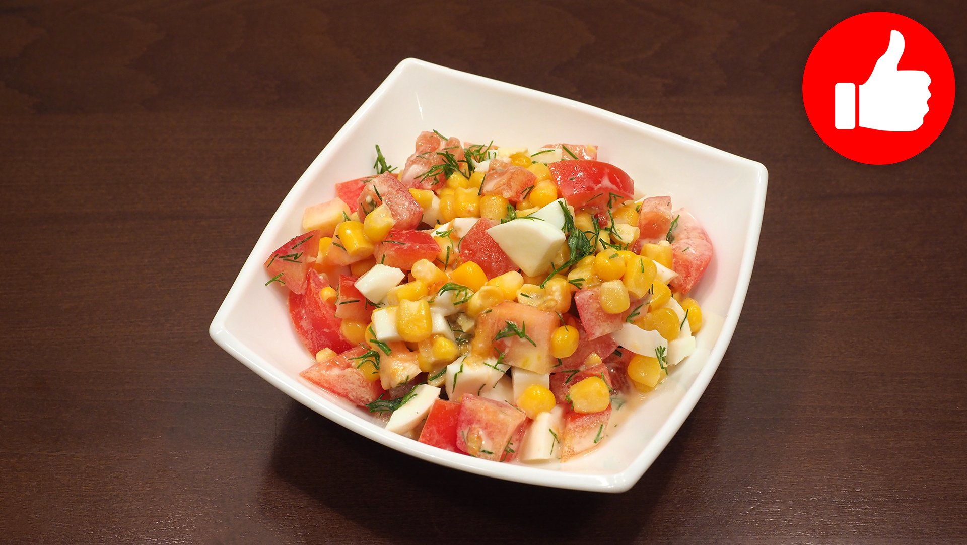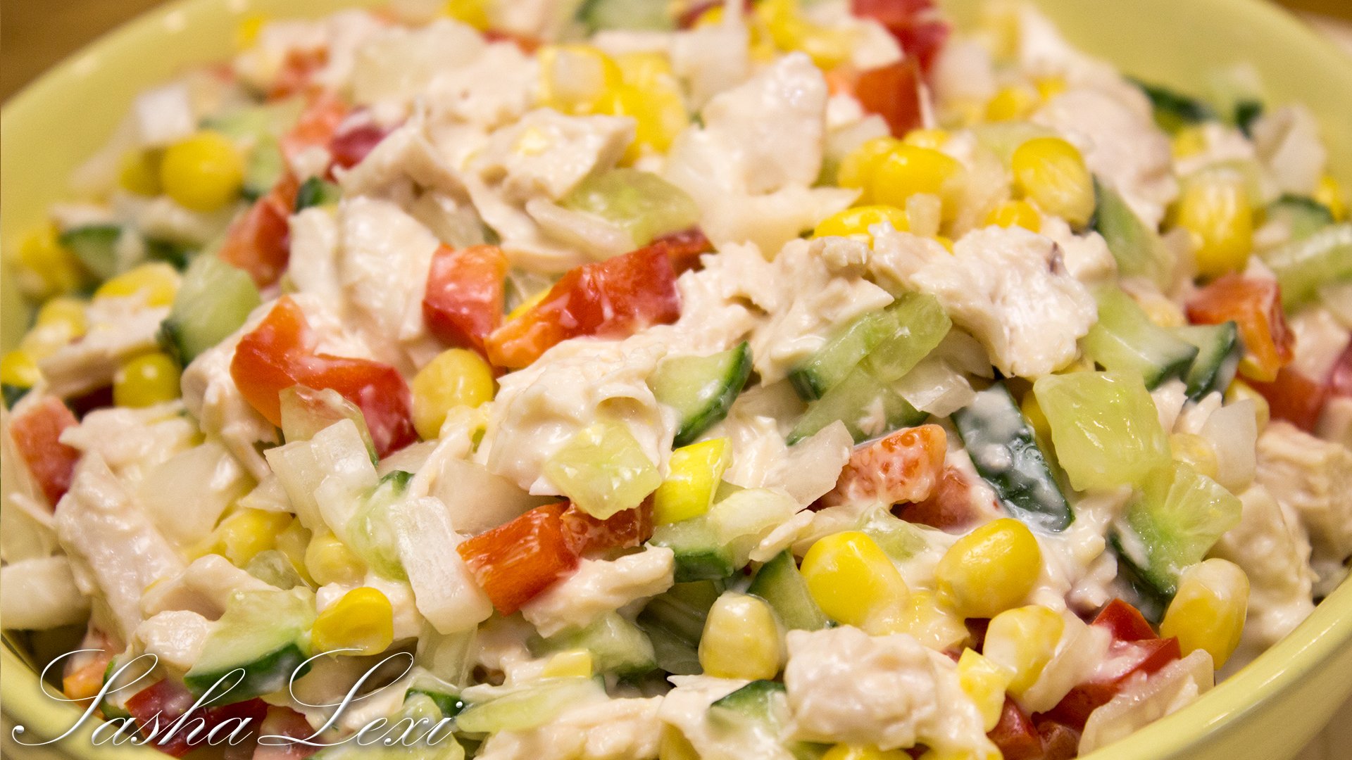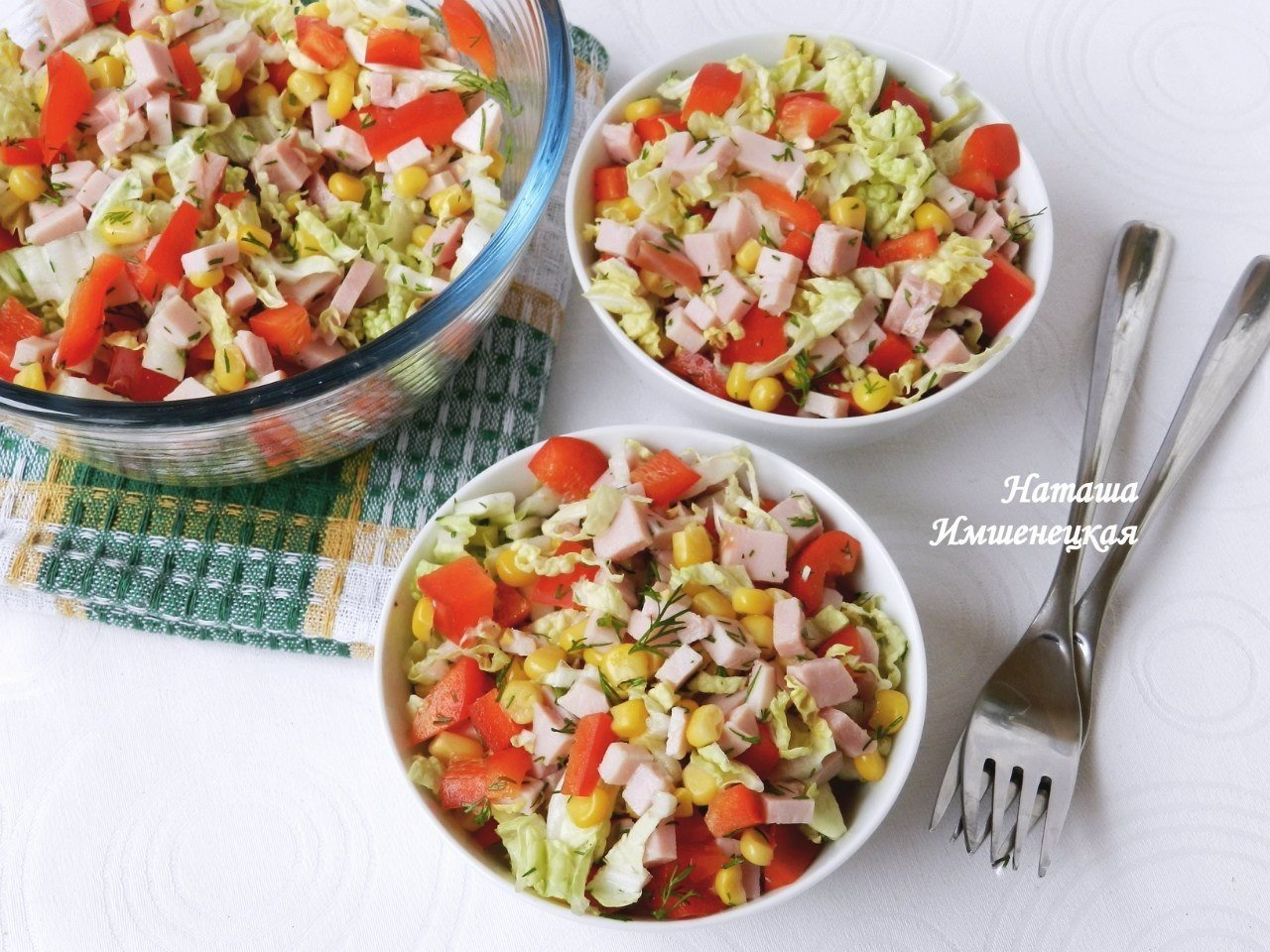 Салат с крабовыми палочками и кукурузой и капустой и огурцом
