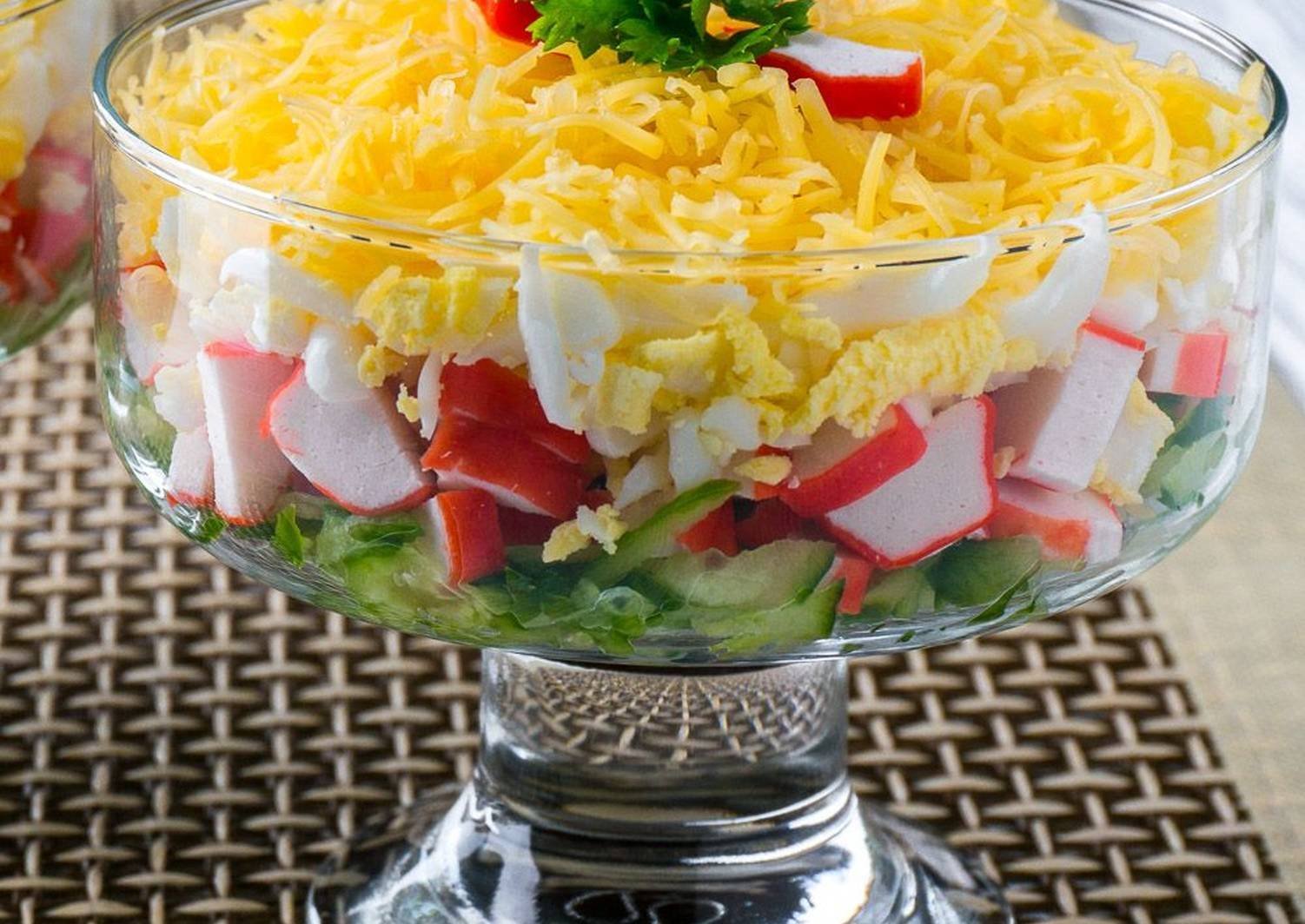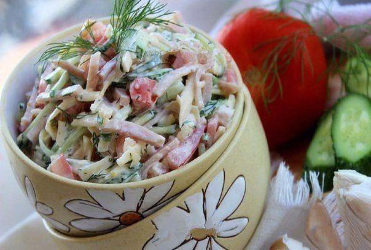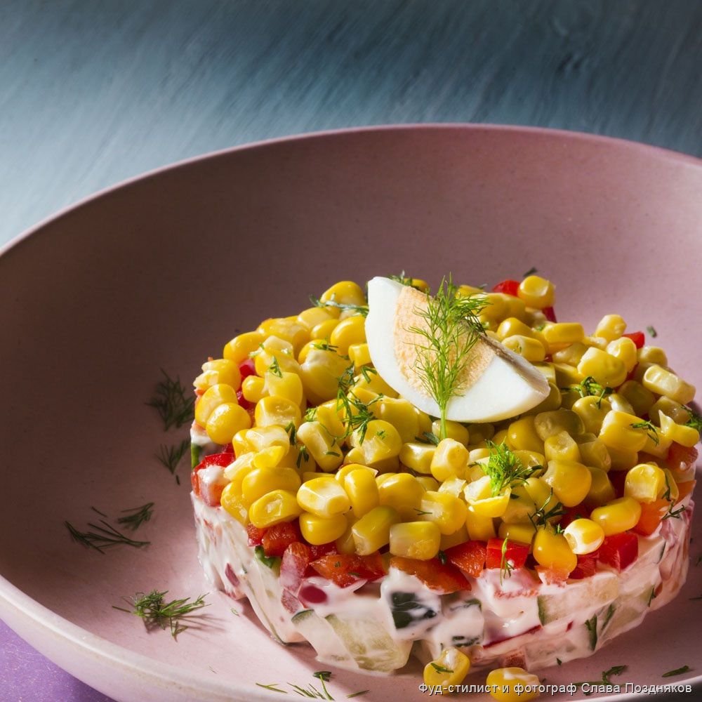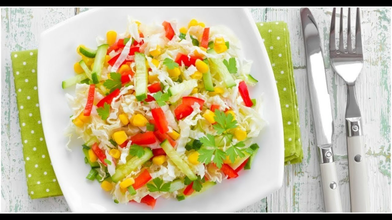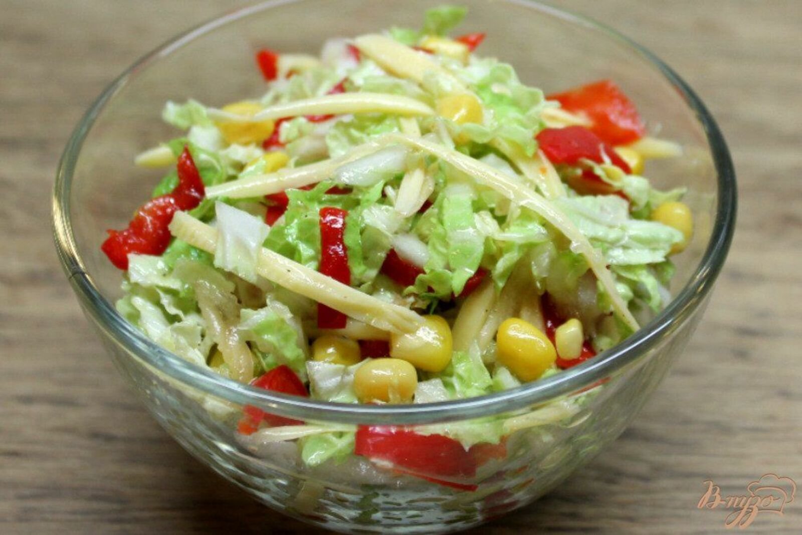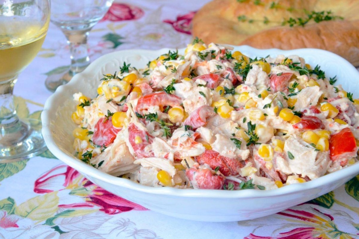 Салат с крабовыми палочками и кукурузой и капустой и огурцом