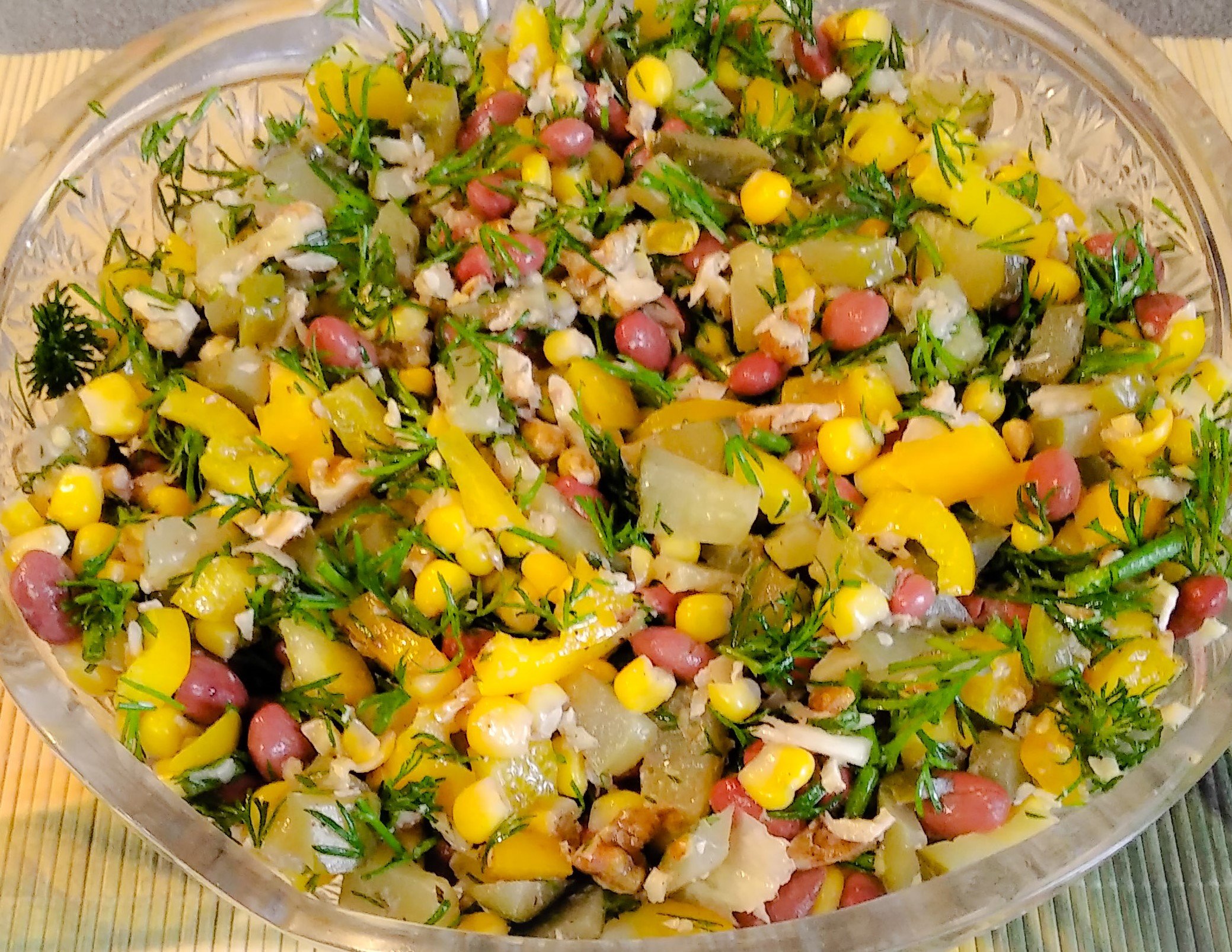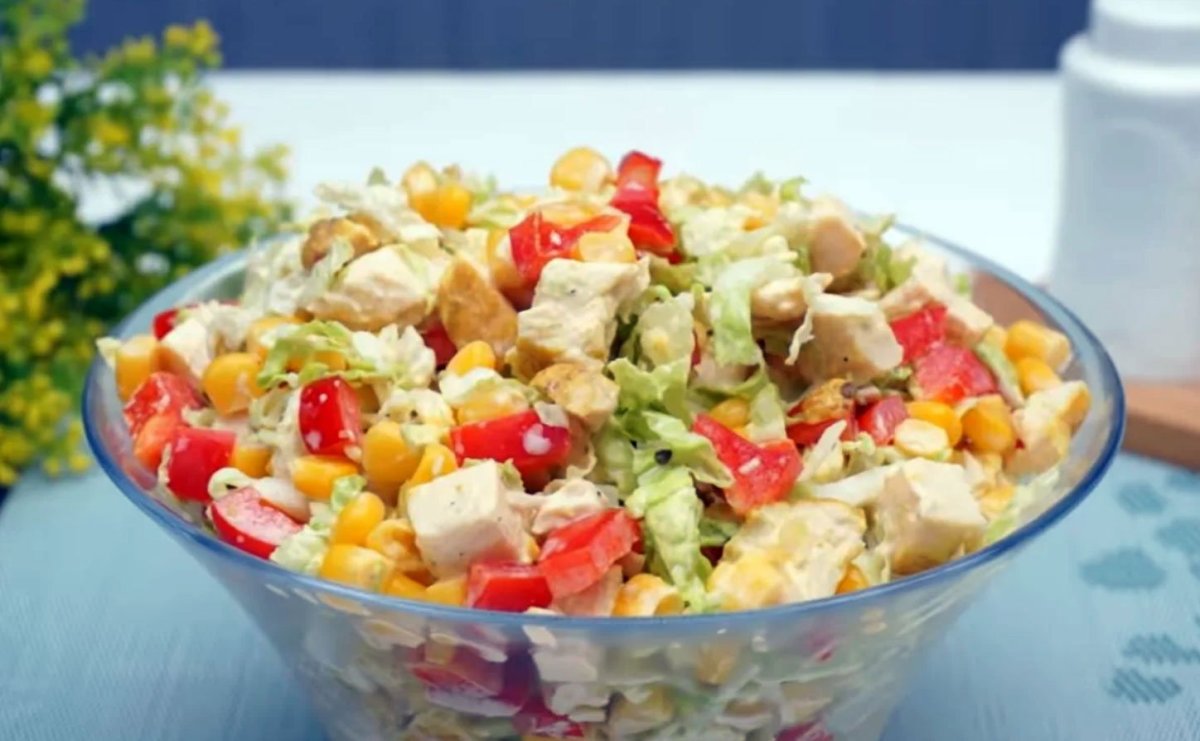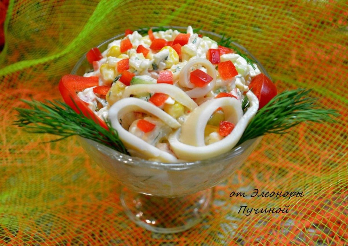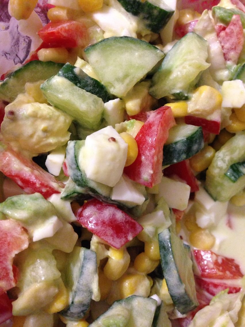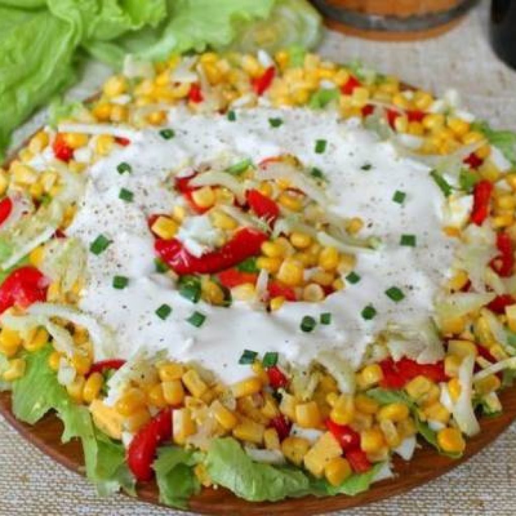 Салат с крабовыми палочками и кукурузой и капустой и огурцом