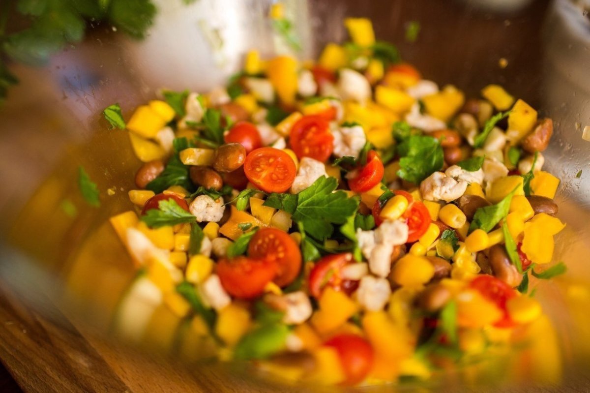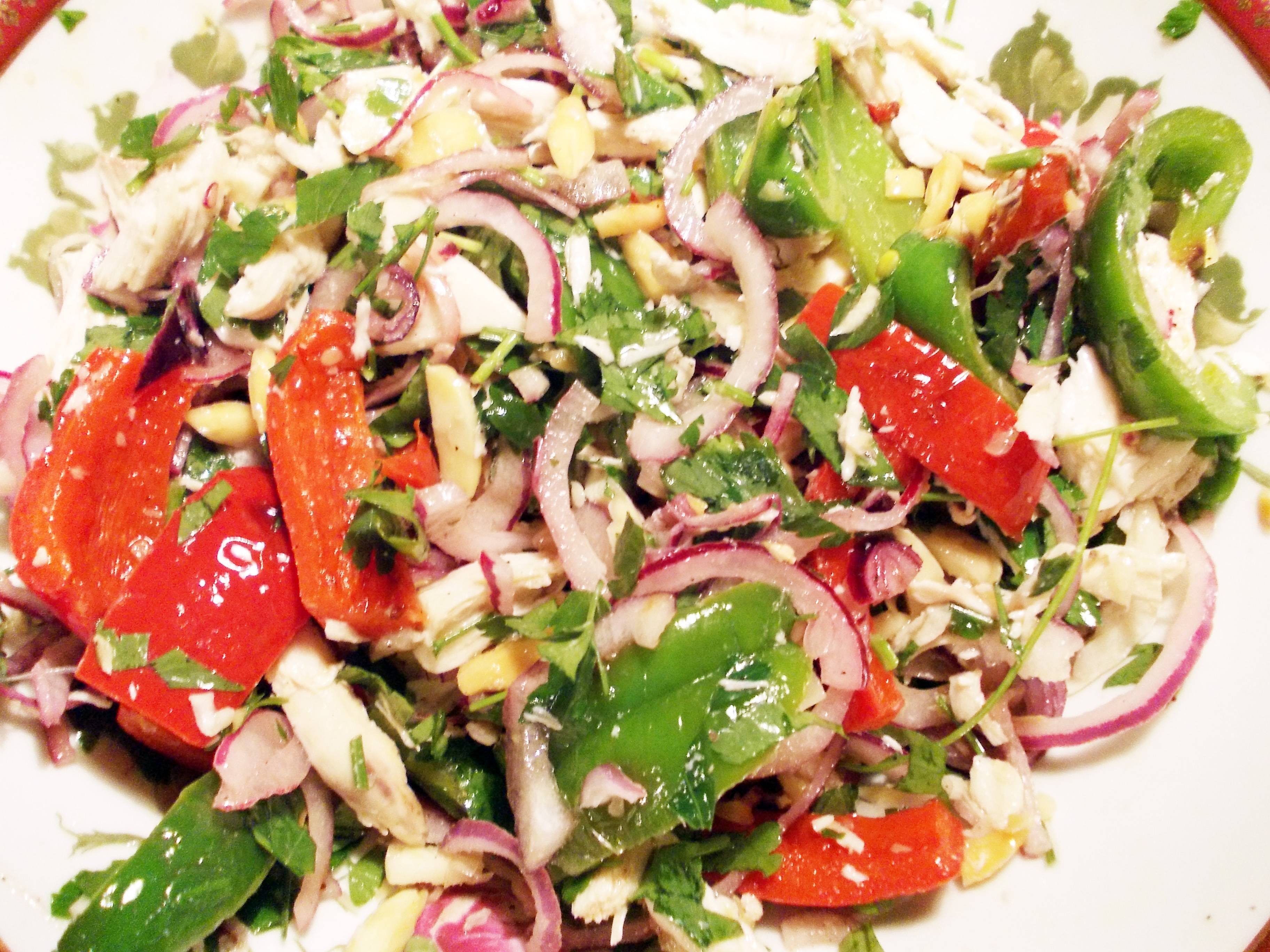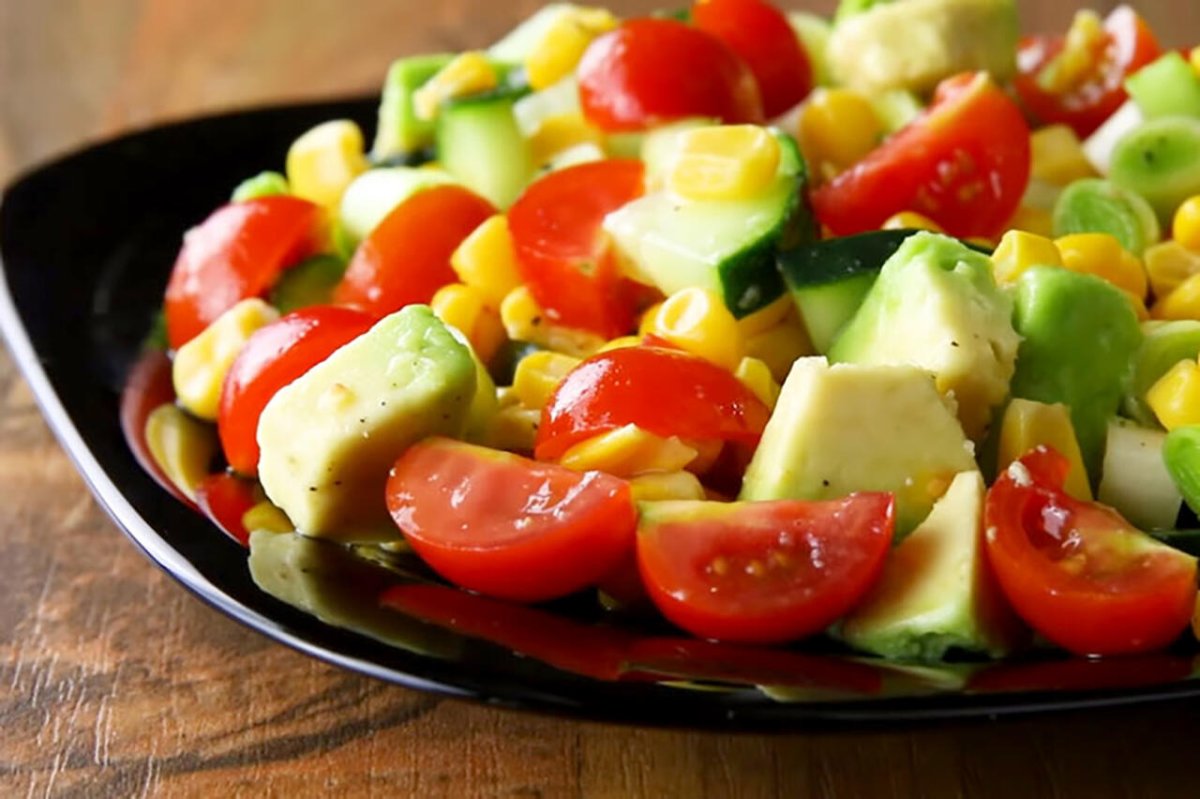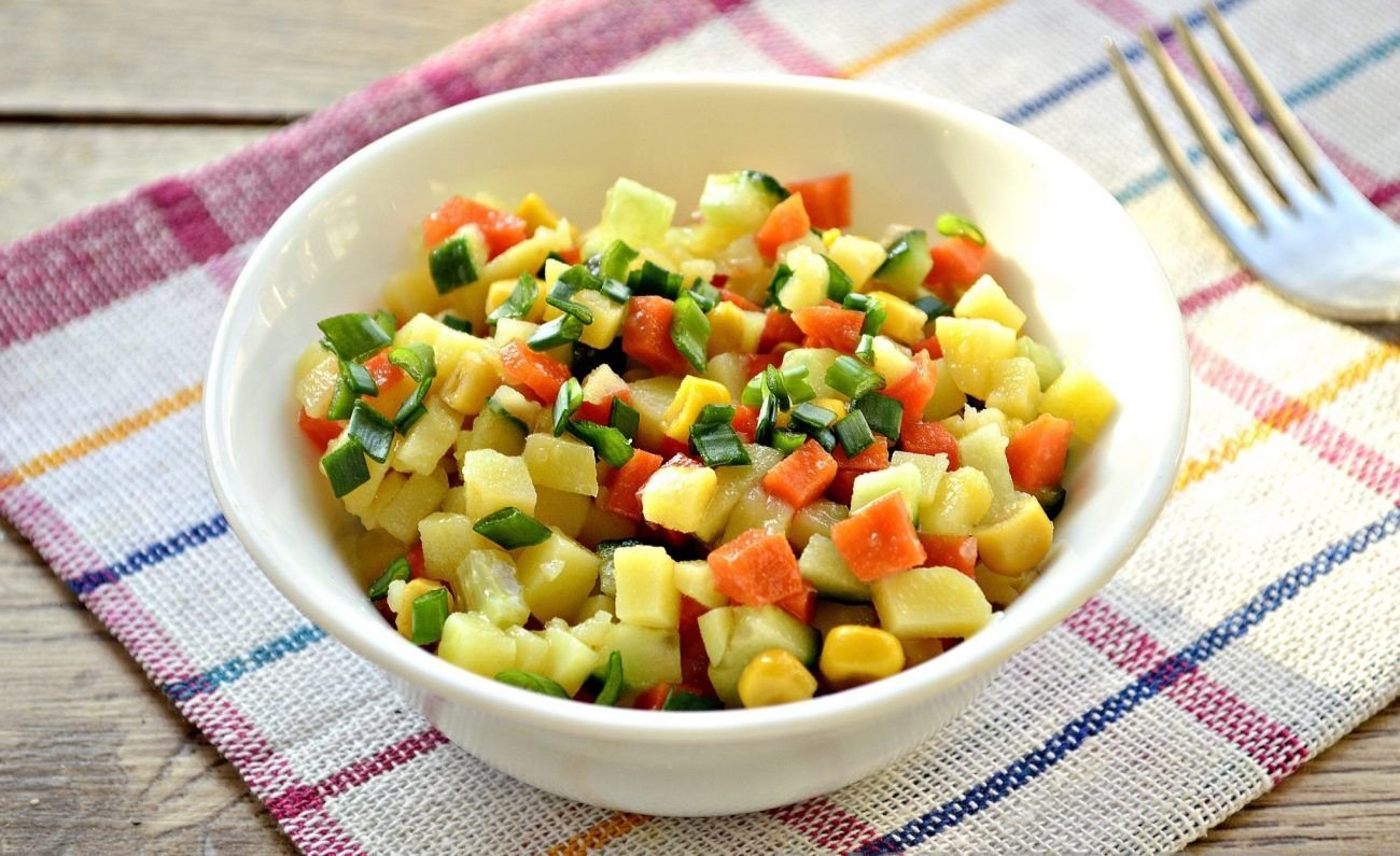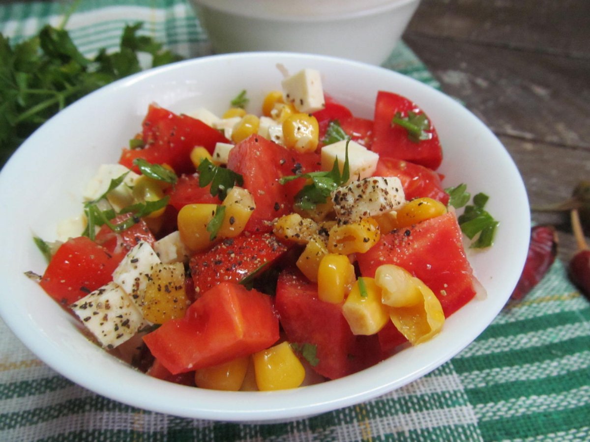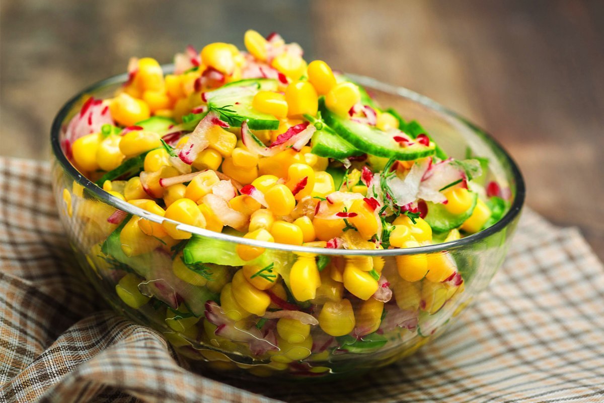 Салат с крабовыми палочками и кукурузой и капустой и огурцом