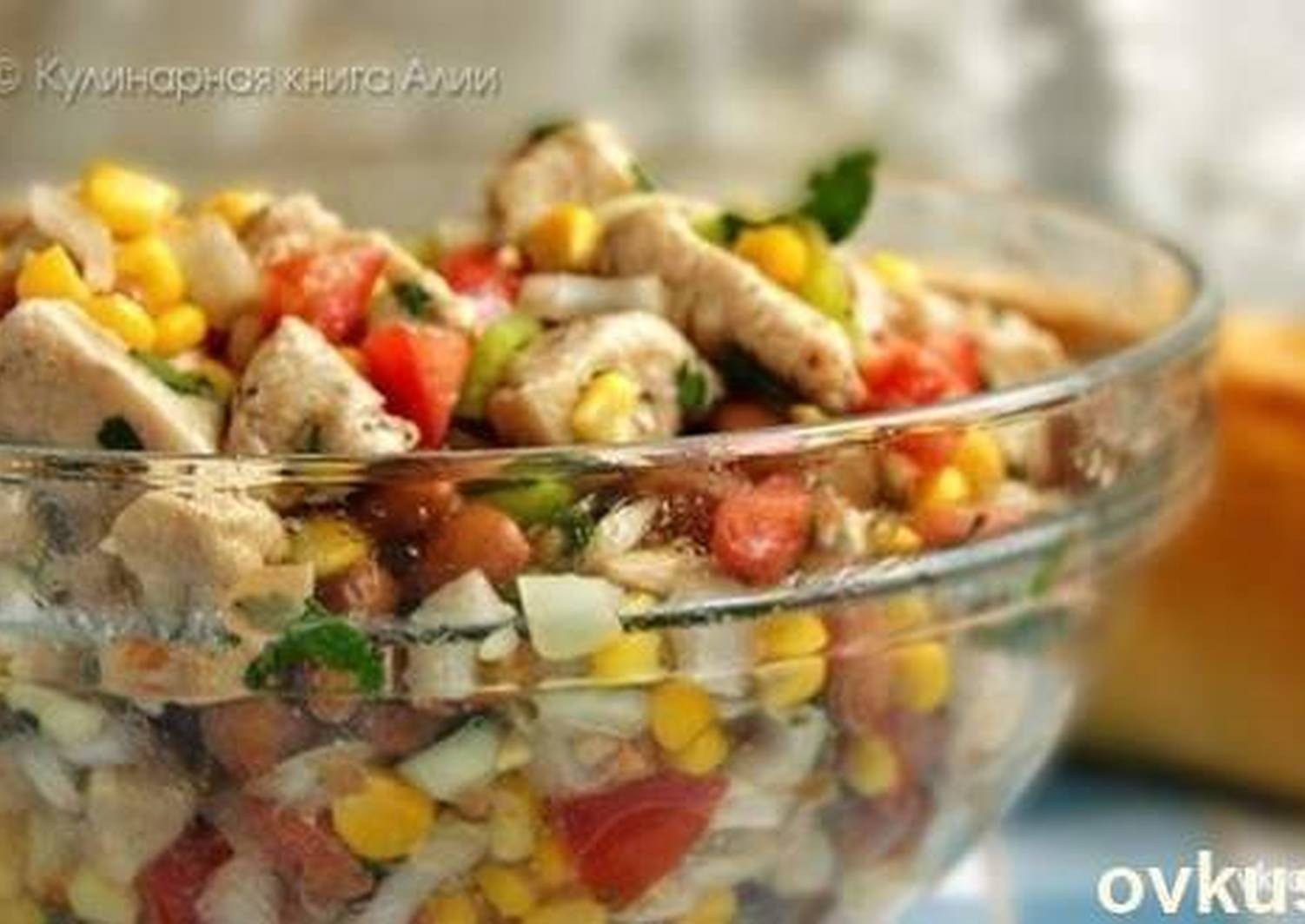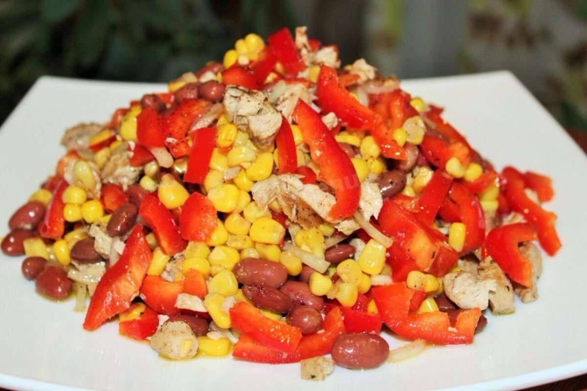 Салат кукуруза корейская морковь копченая колбаса сухарики