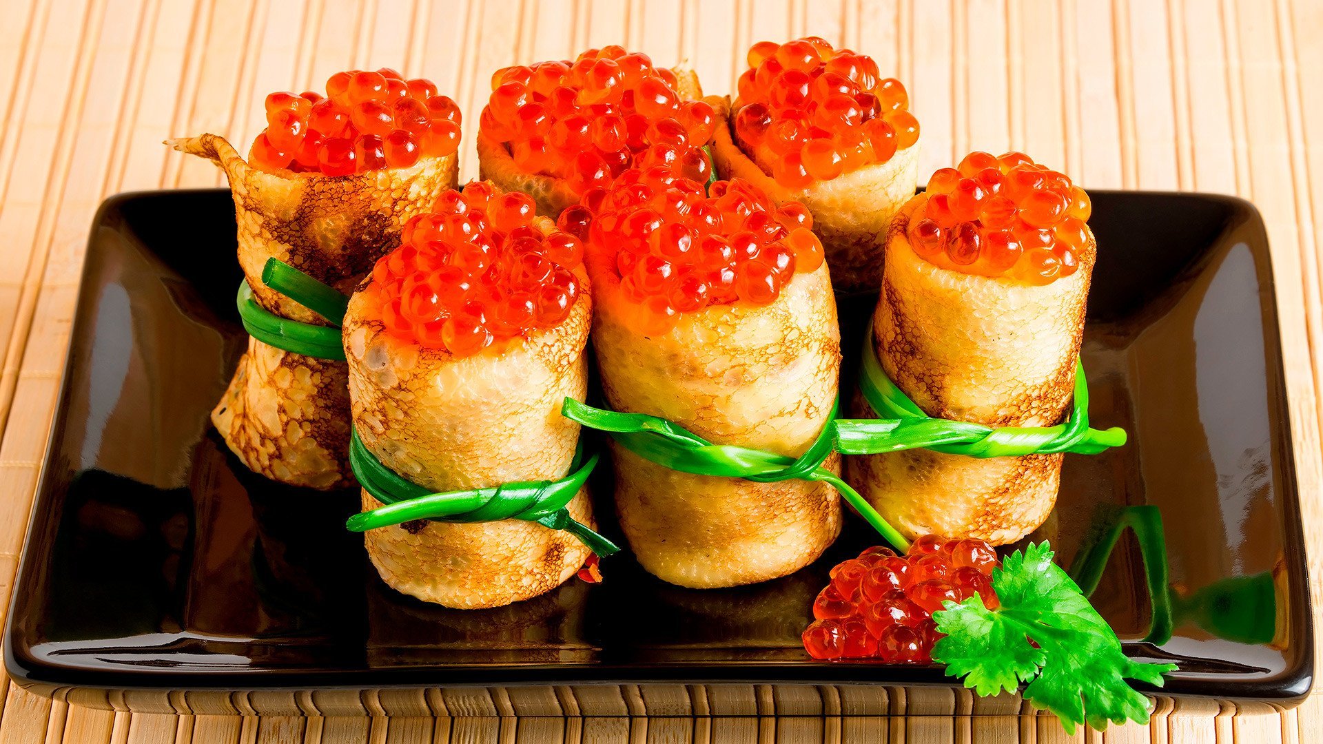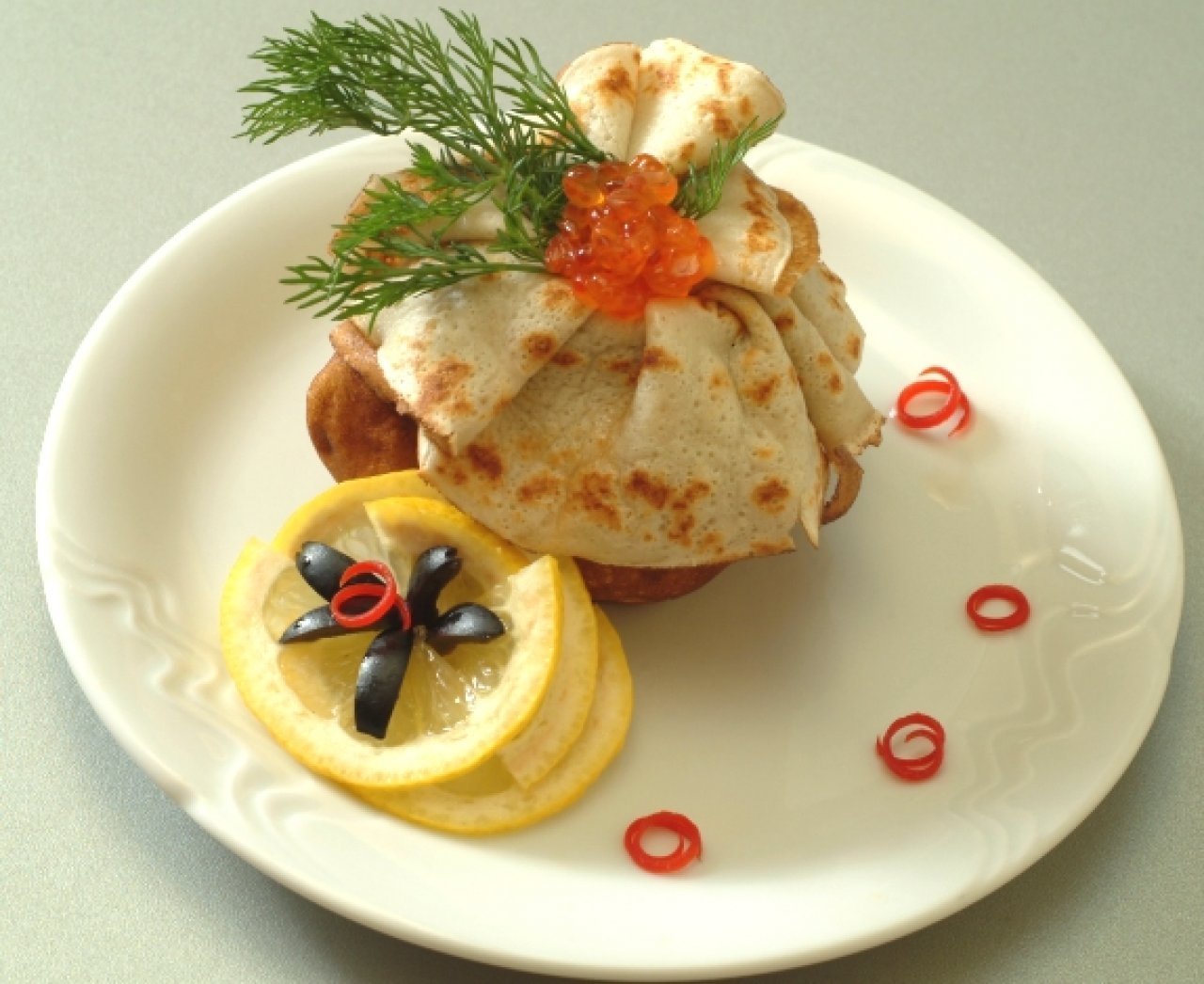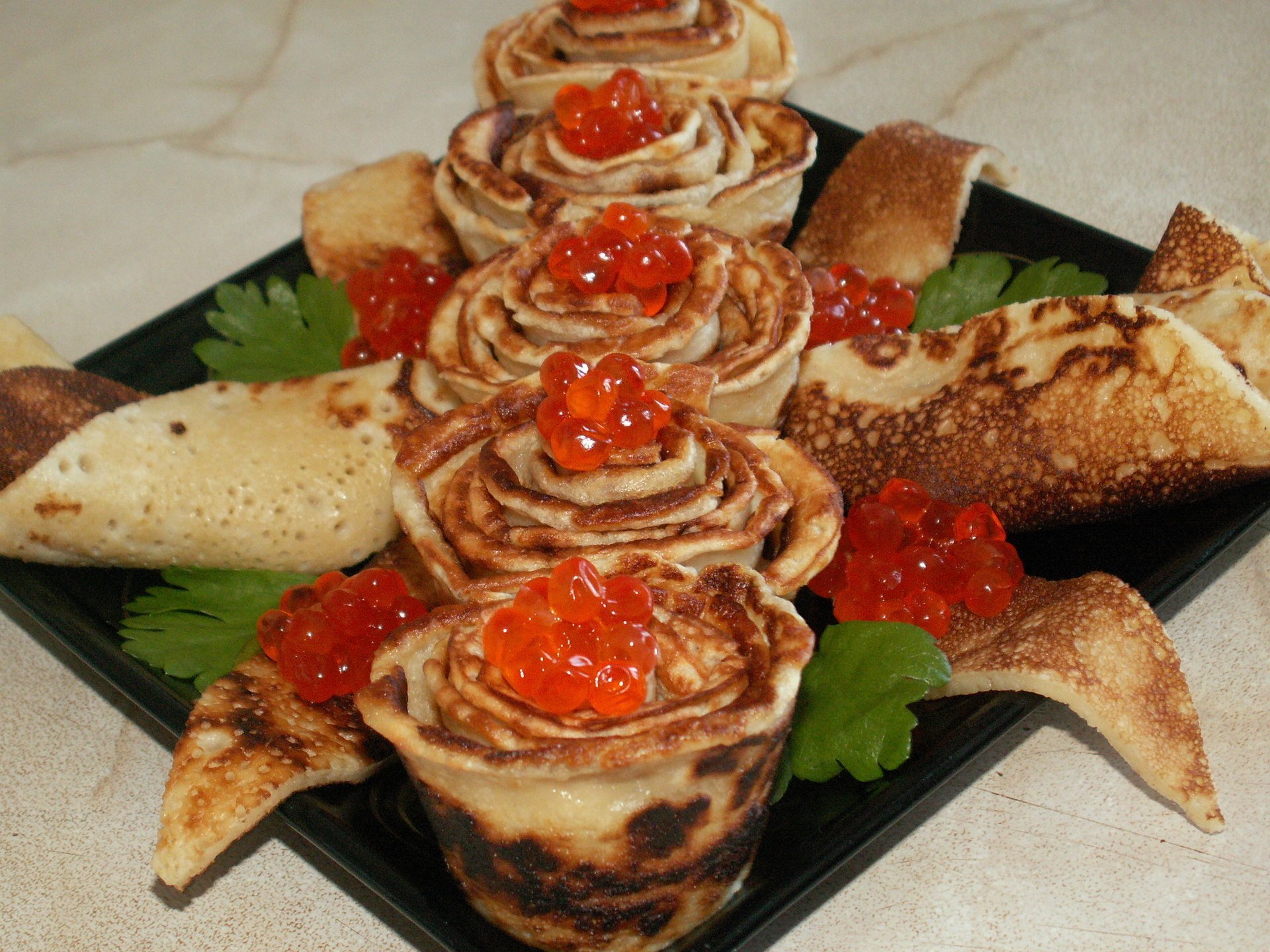 Блины фаршированные икрой красной