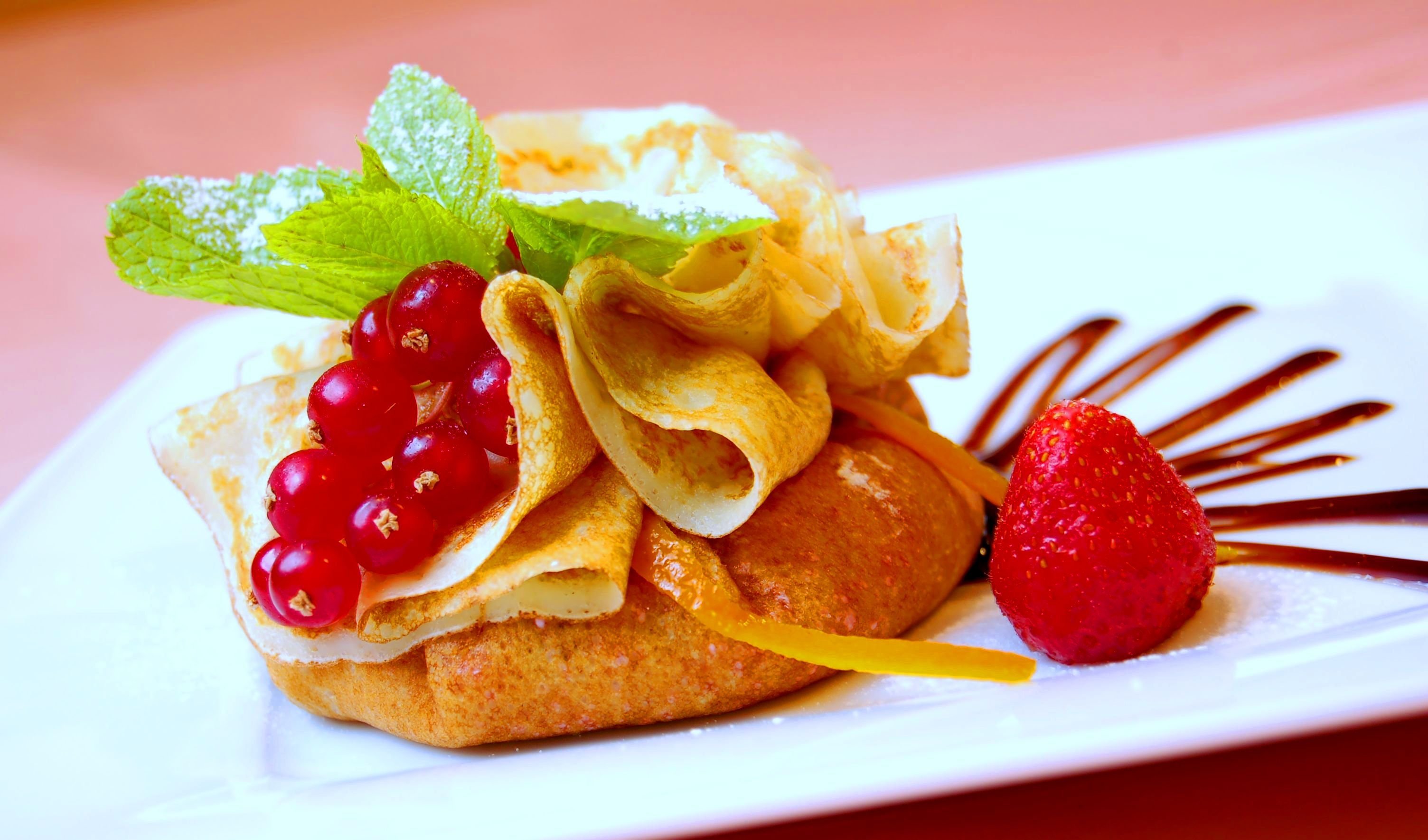 Блины с шоколадом и клубникой
