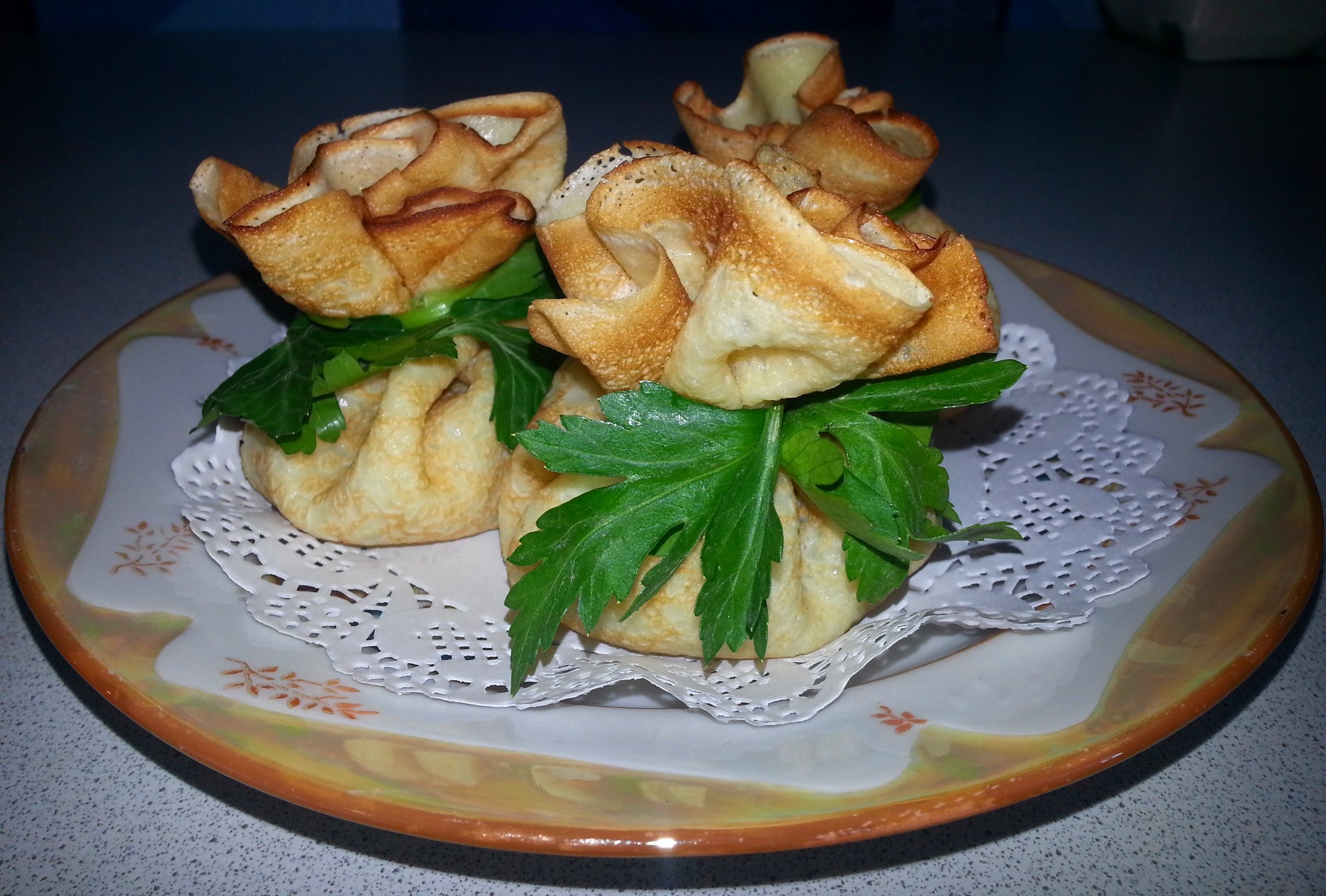 Блинные мешочки с курицей
