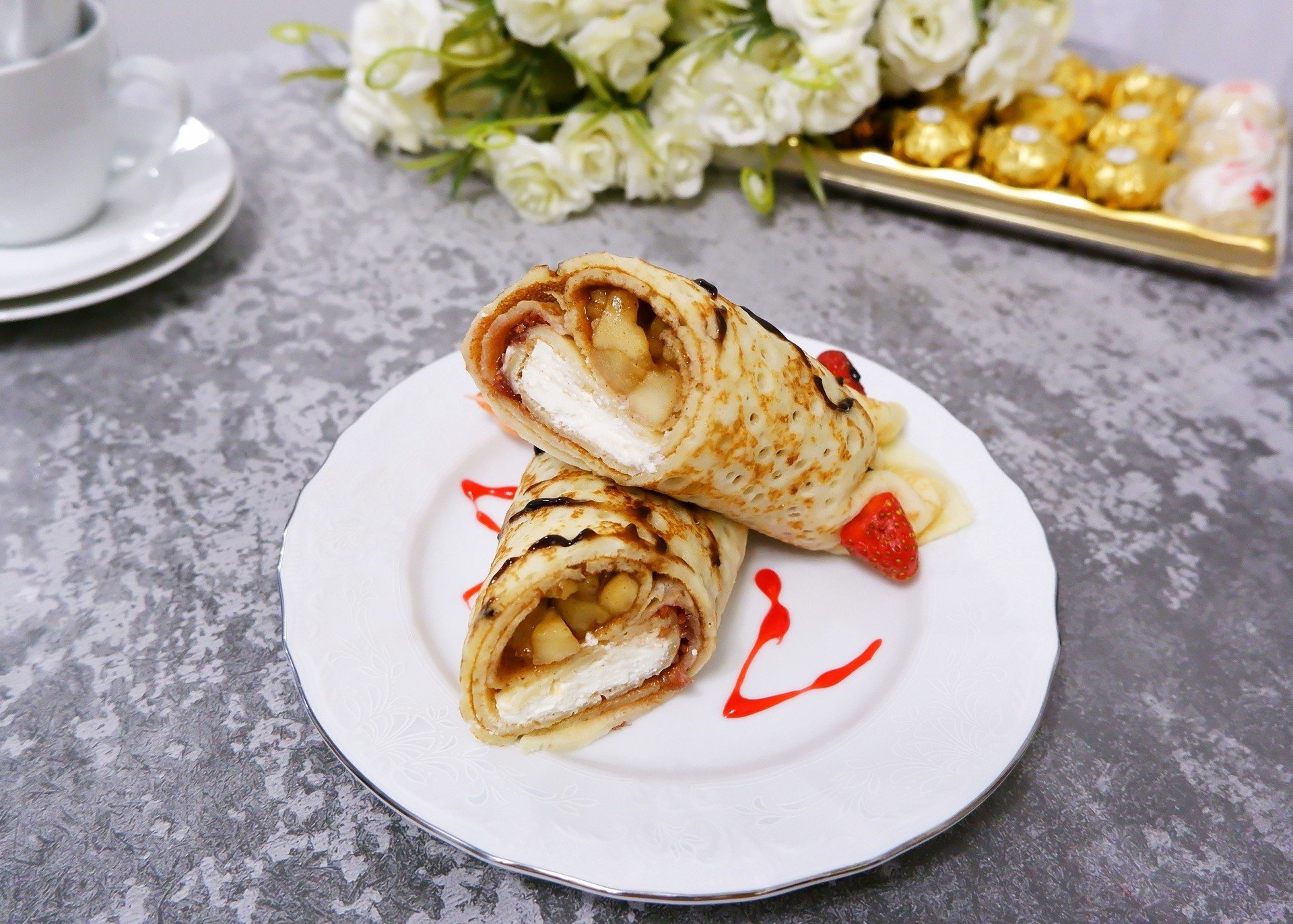 Красивая подача блинчиков с начинкой