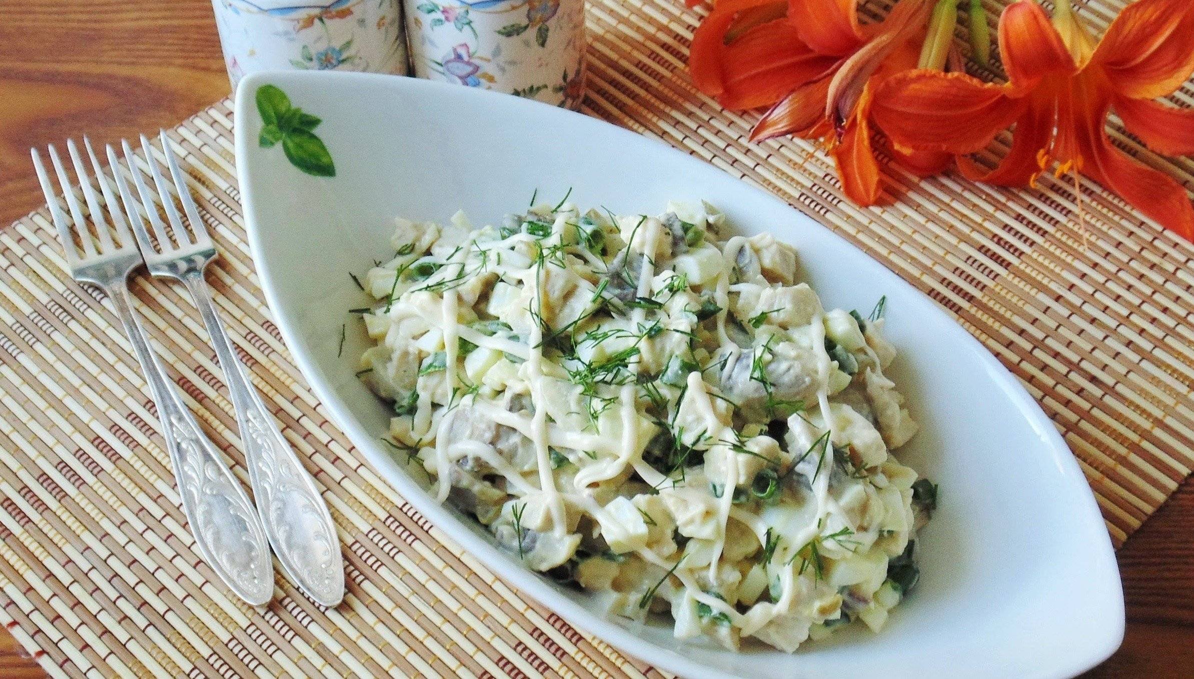Салат с курицей и грибами