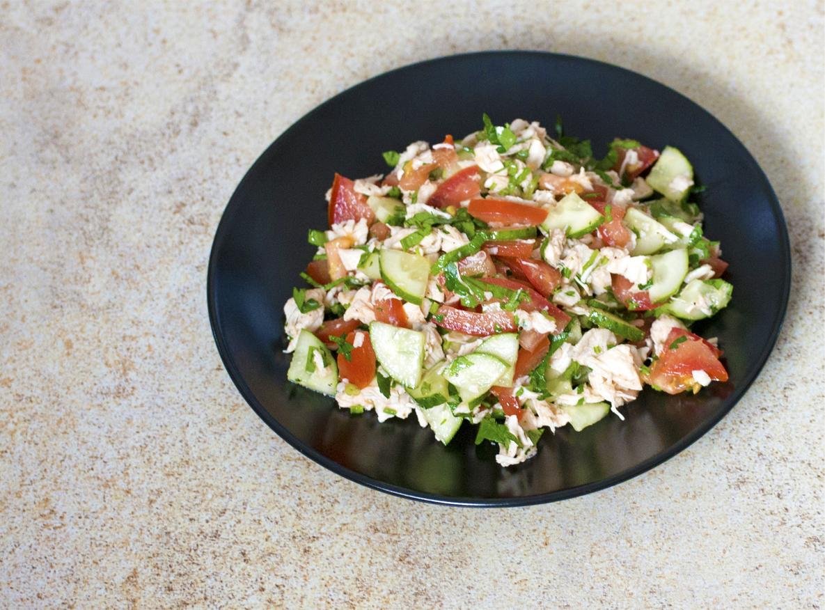 Салат из курицы с огурцом и помидором