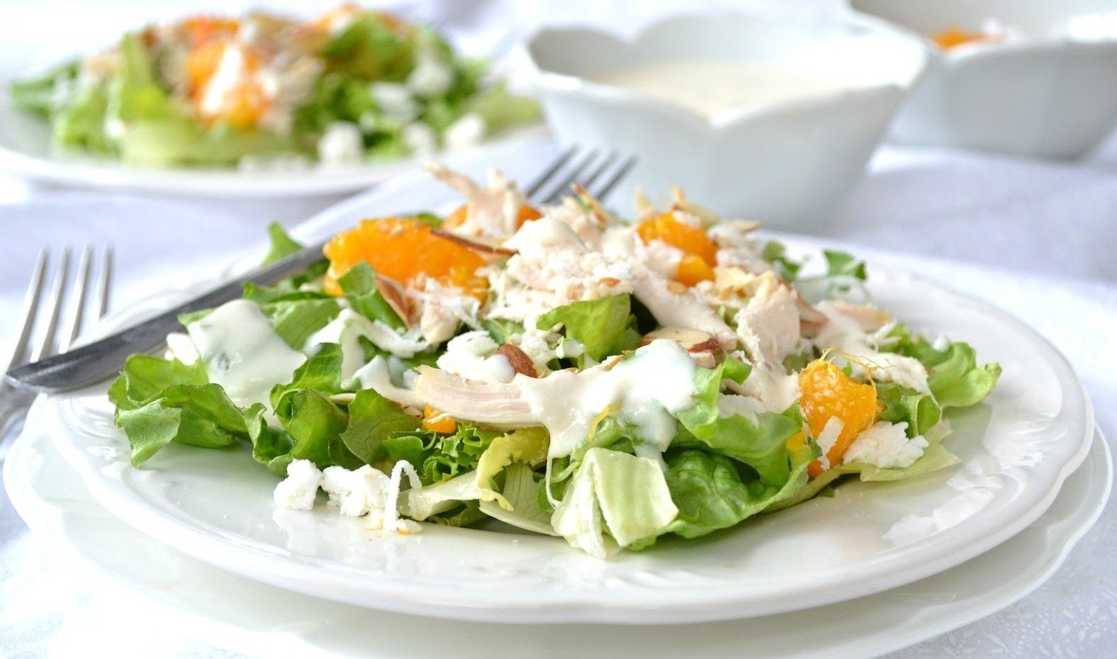 Салат с апельсинами, куриным филе и сыром Фета
