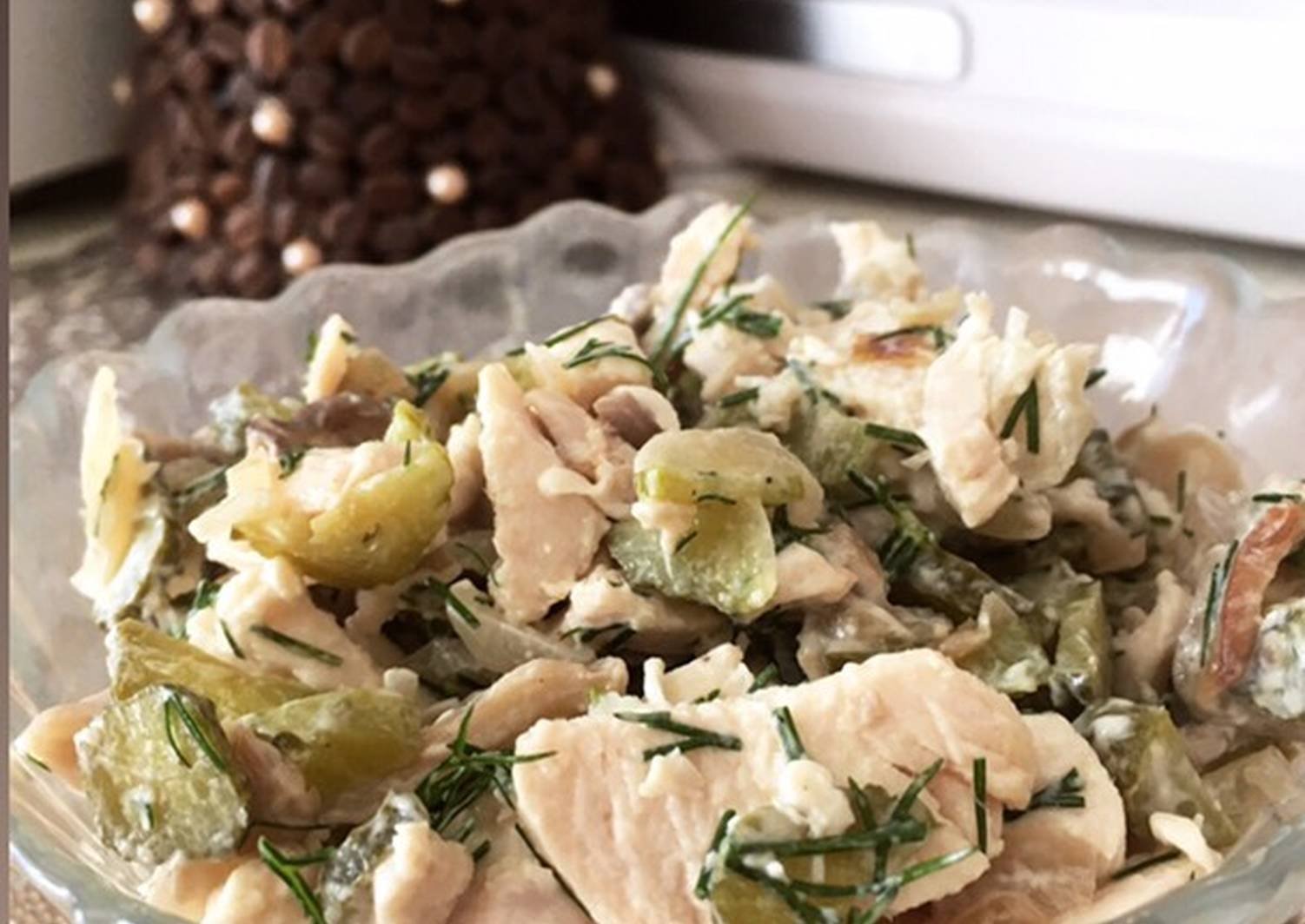 Салат с курицей и солеными огурцами