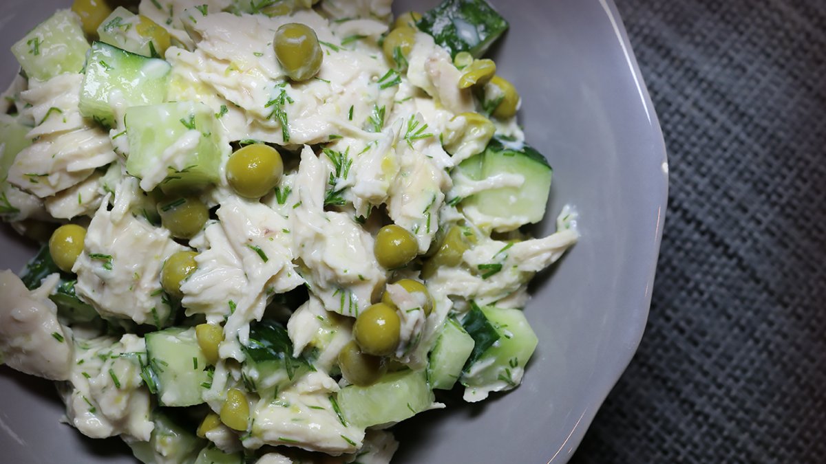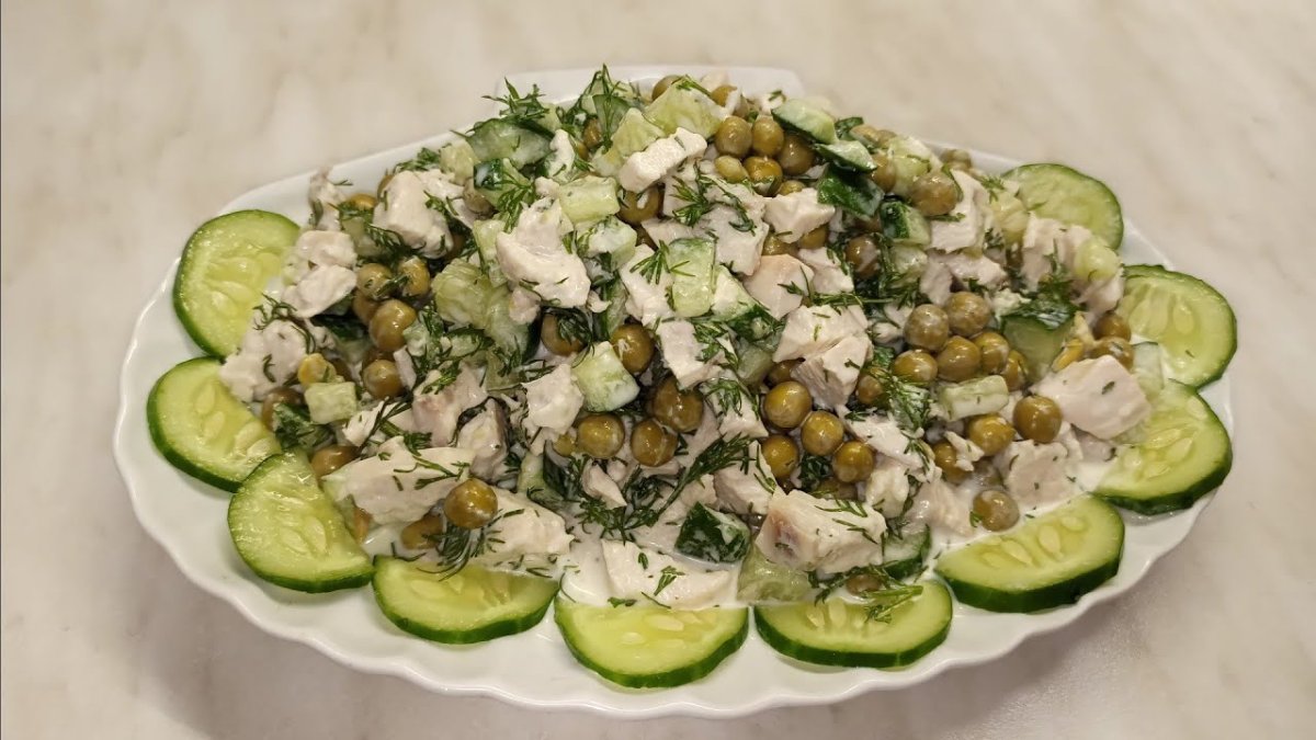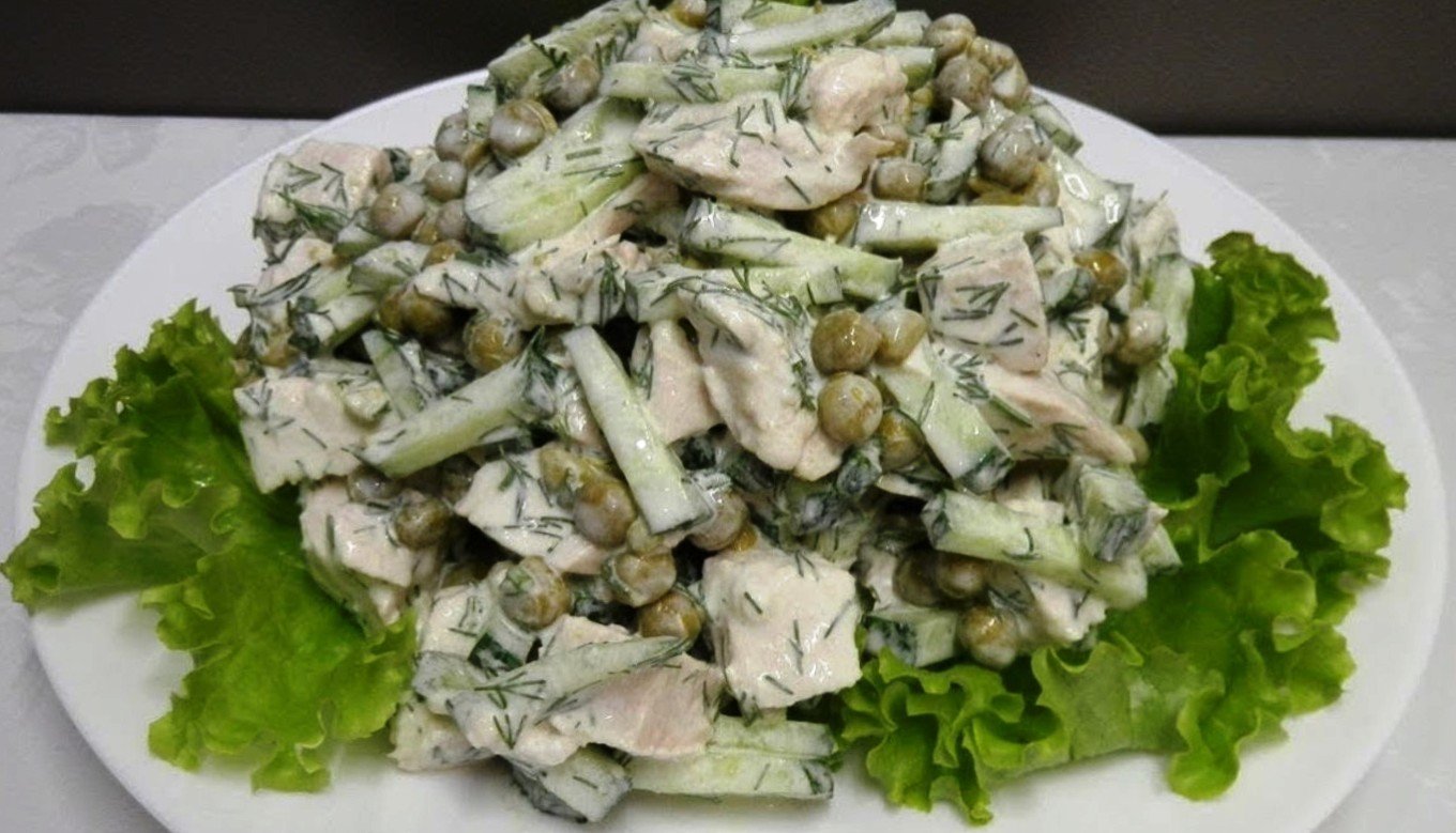 Салат с зелёным горошком и куриной грудкой