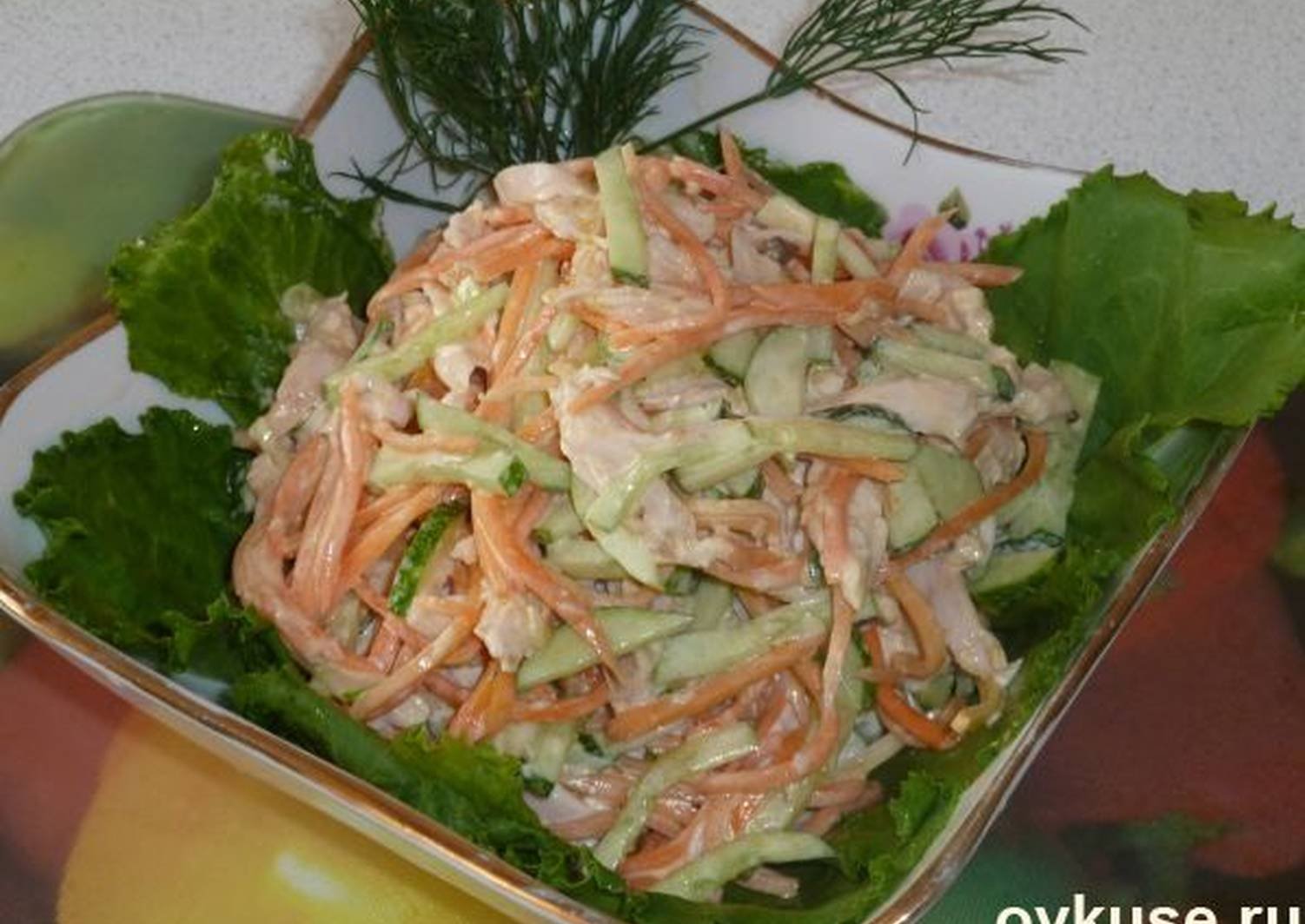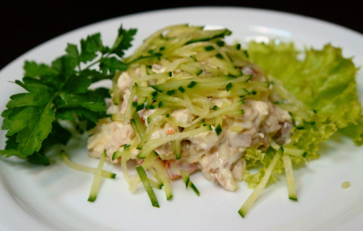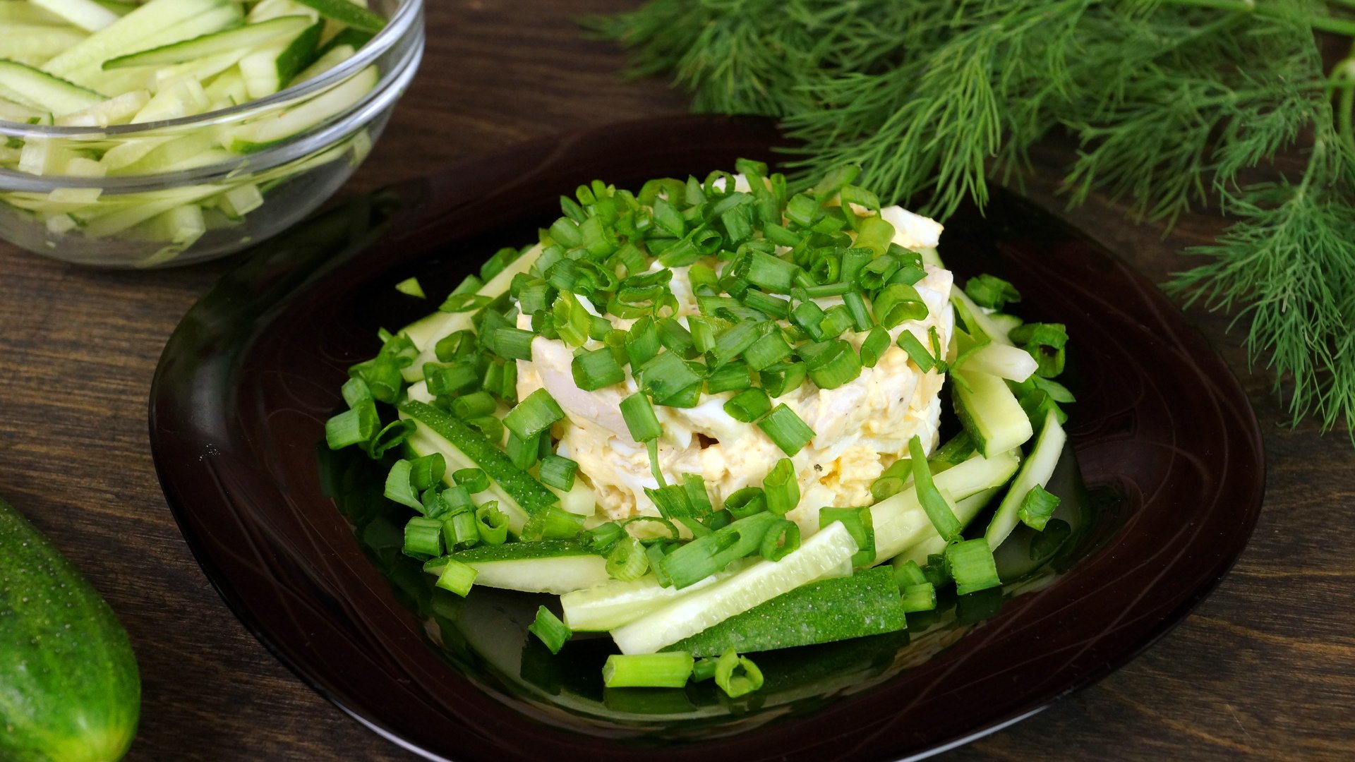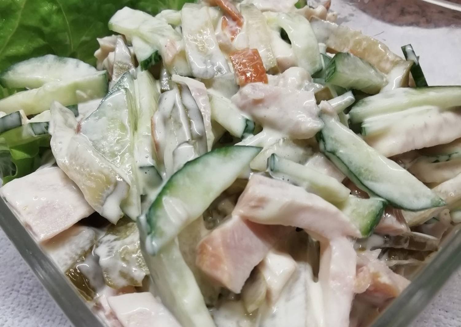 Салат леди с курицей и огурцом