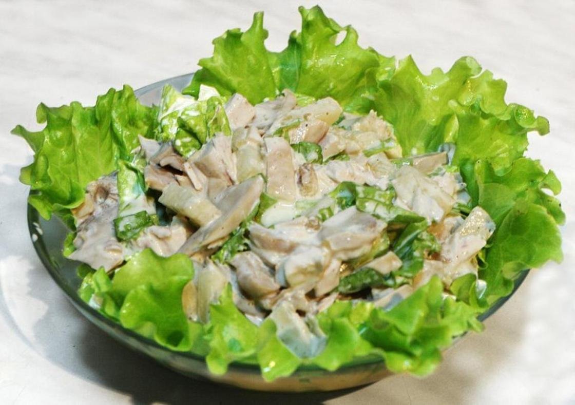 Грибной салат с курицей