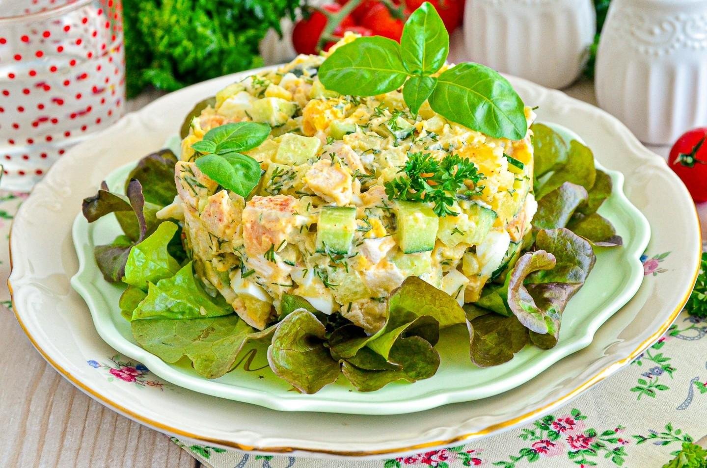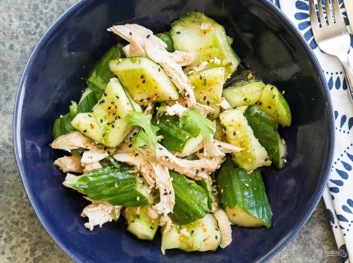 Куриный салат с огурцами