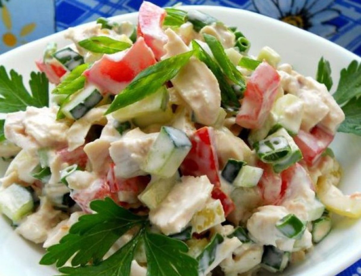 Салат с курицей и огурцами свежими