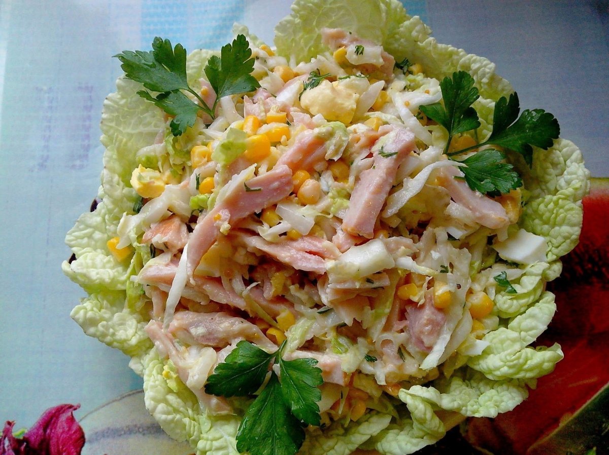 Салат из пекинской капусты с копченой колбасой