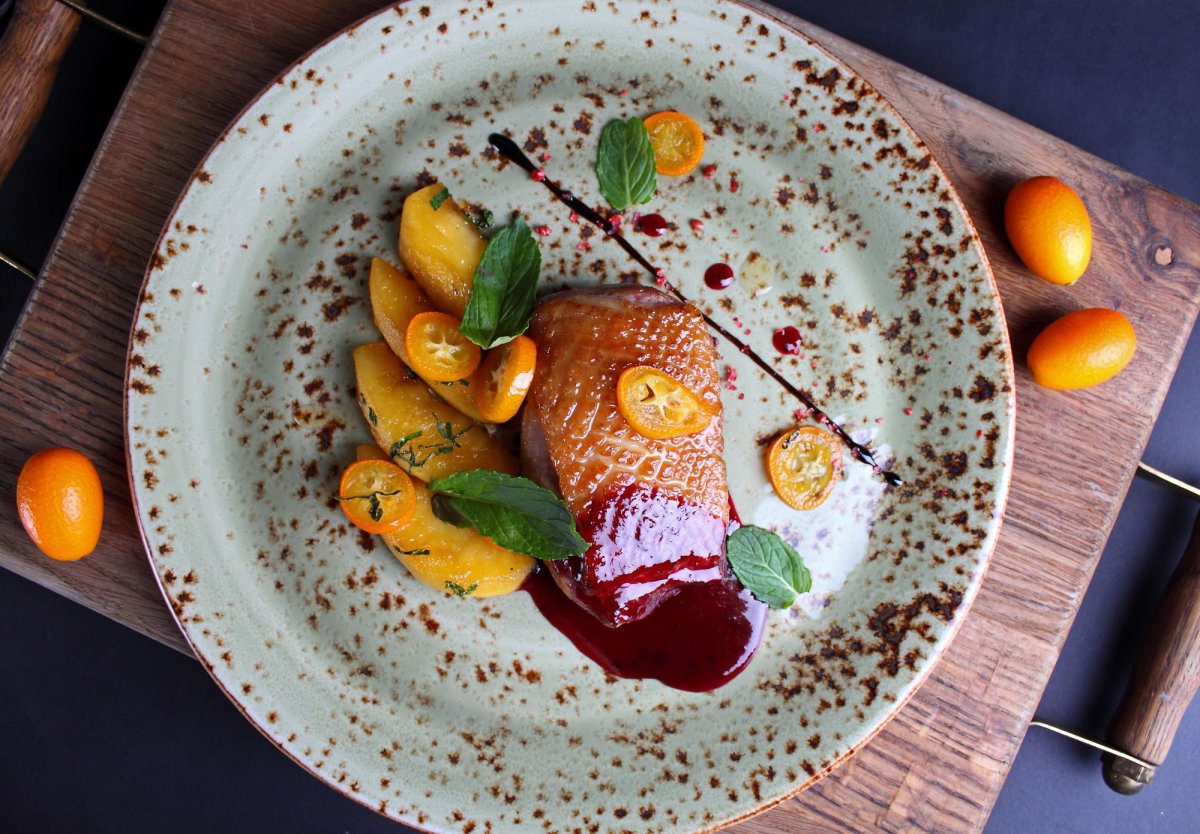 Обжаренная Утиная грудка с картофелем и соусом из кумквата