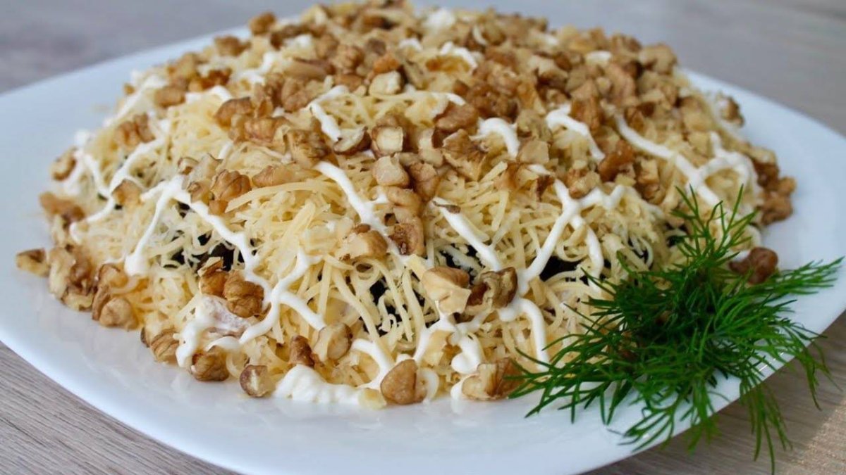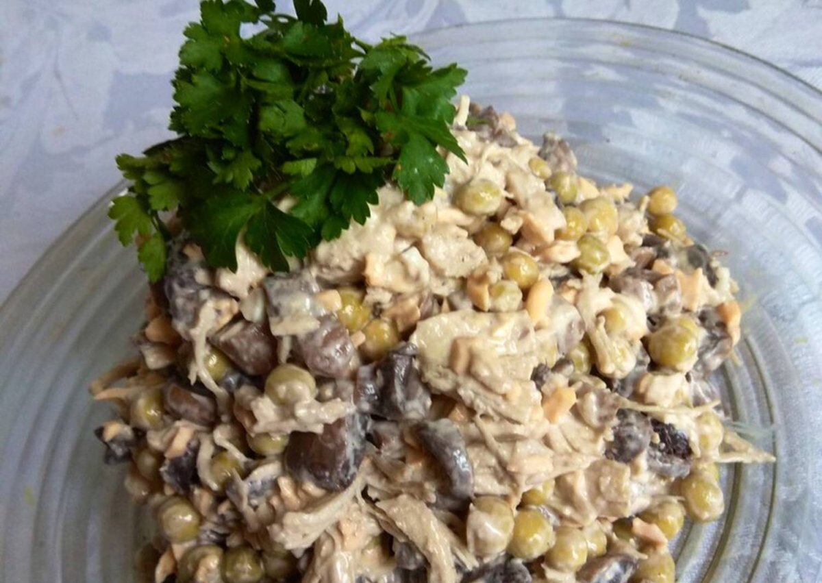 Салат с черносливом и курицей и грецкими орехами и грибами