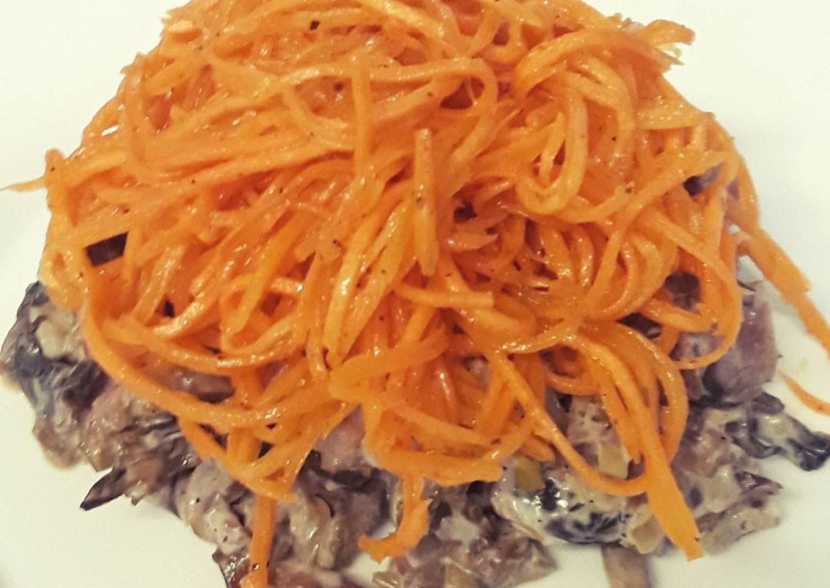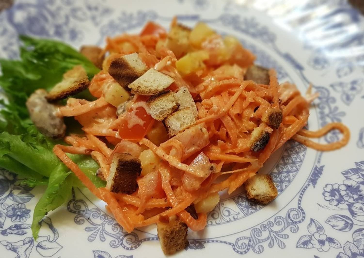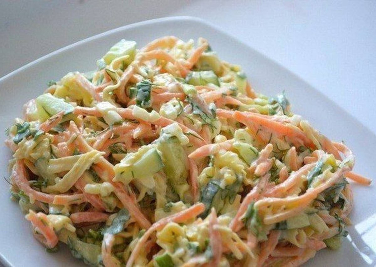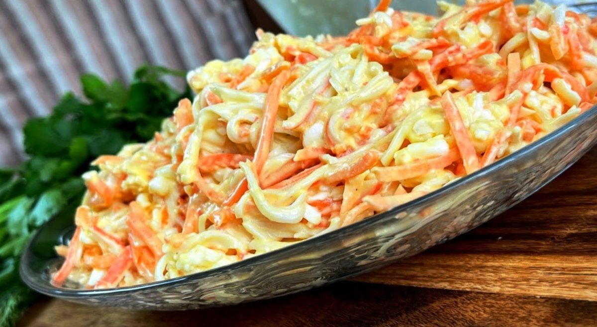 Салат с корейской морковью и крабовыми палочками и кукурузой