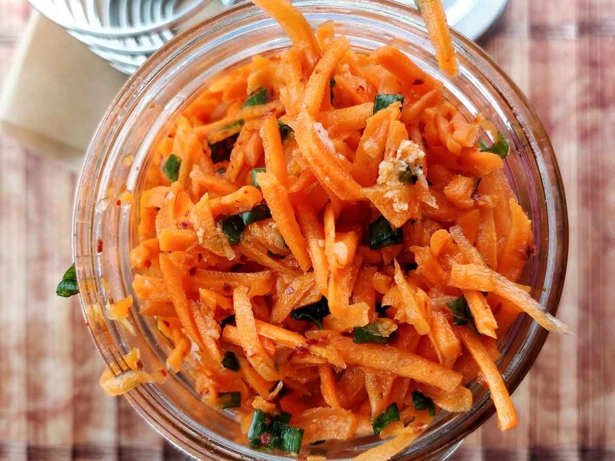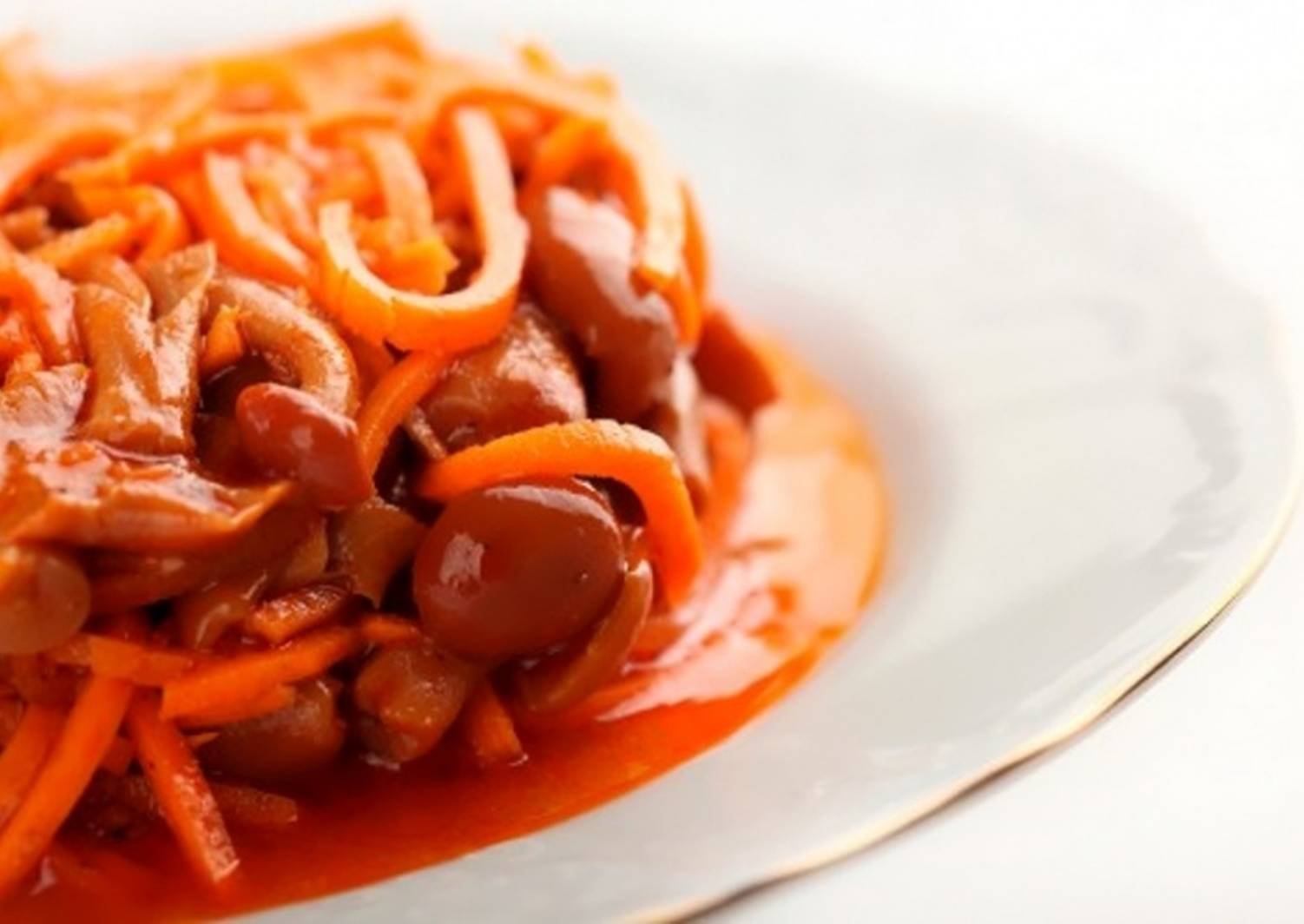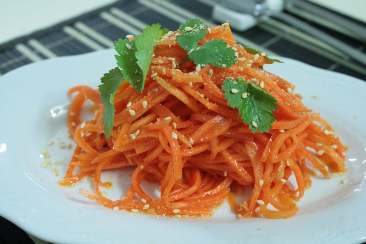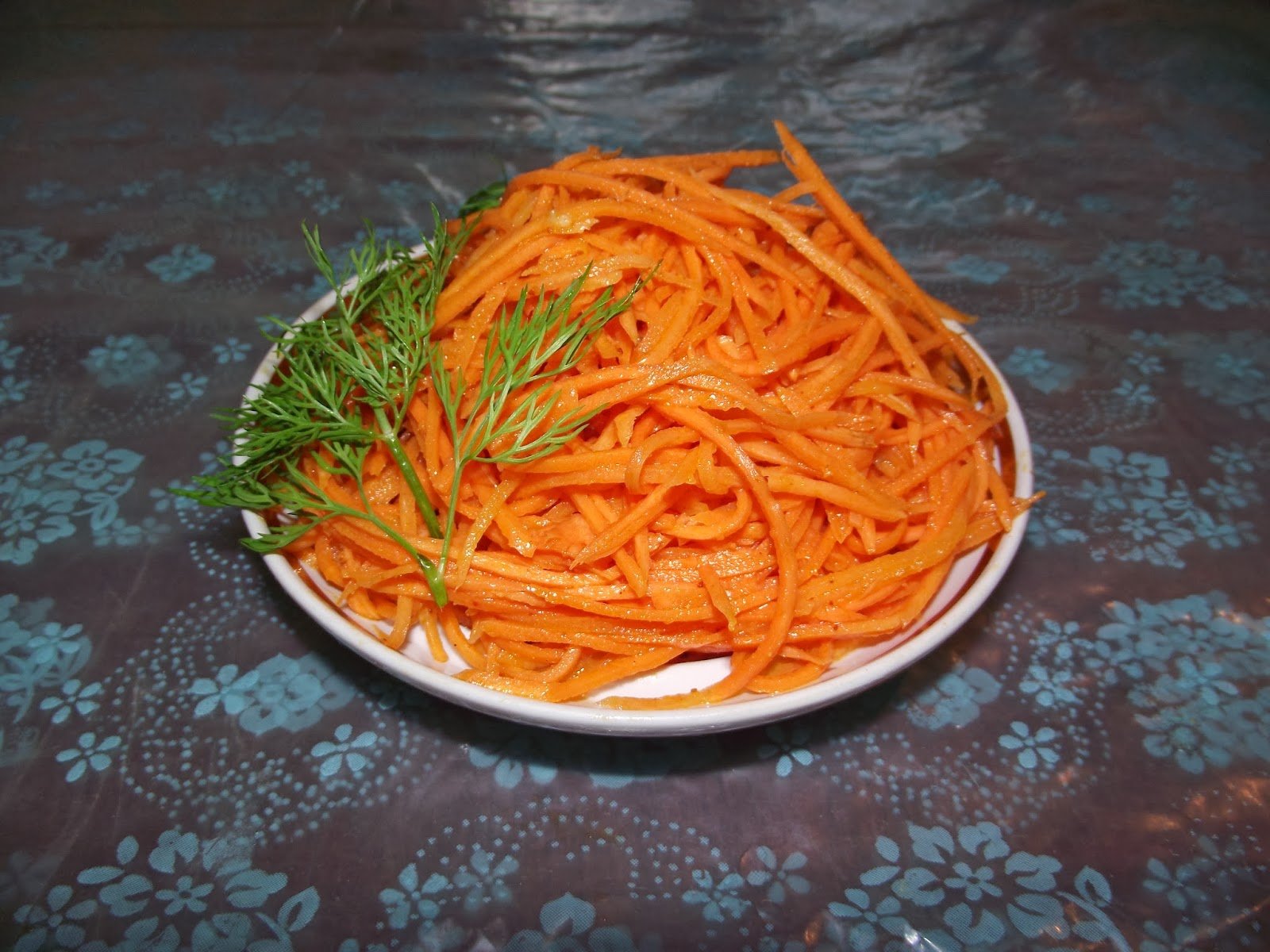 Салат с корейской морковью и крабовыми палочками и кукурузой