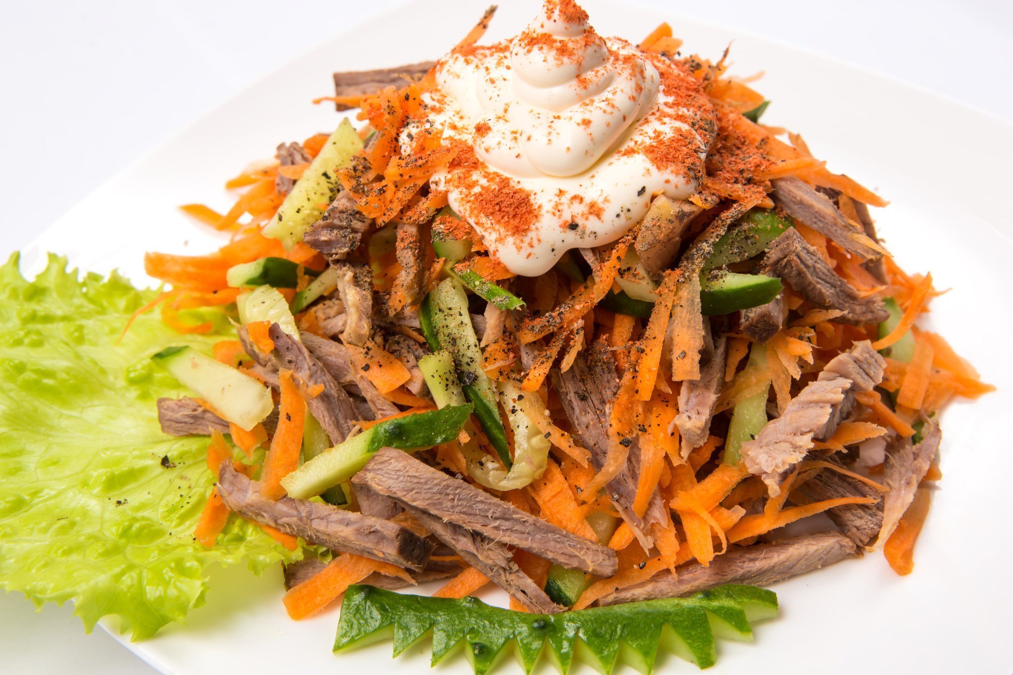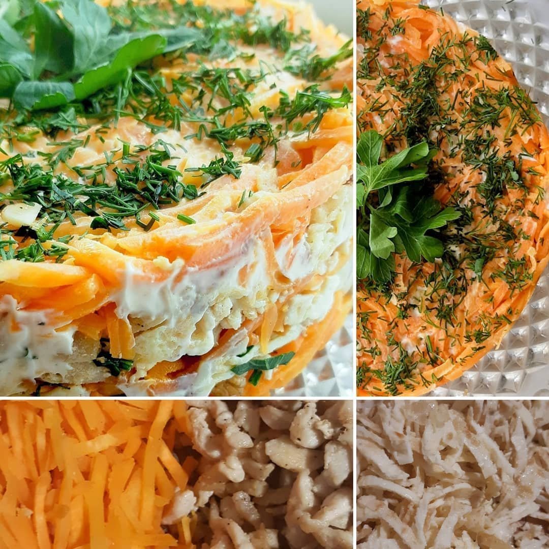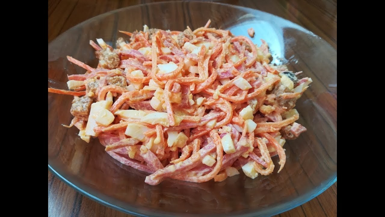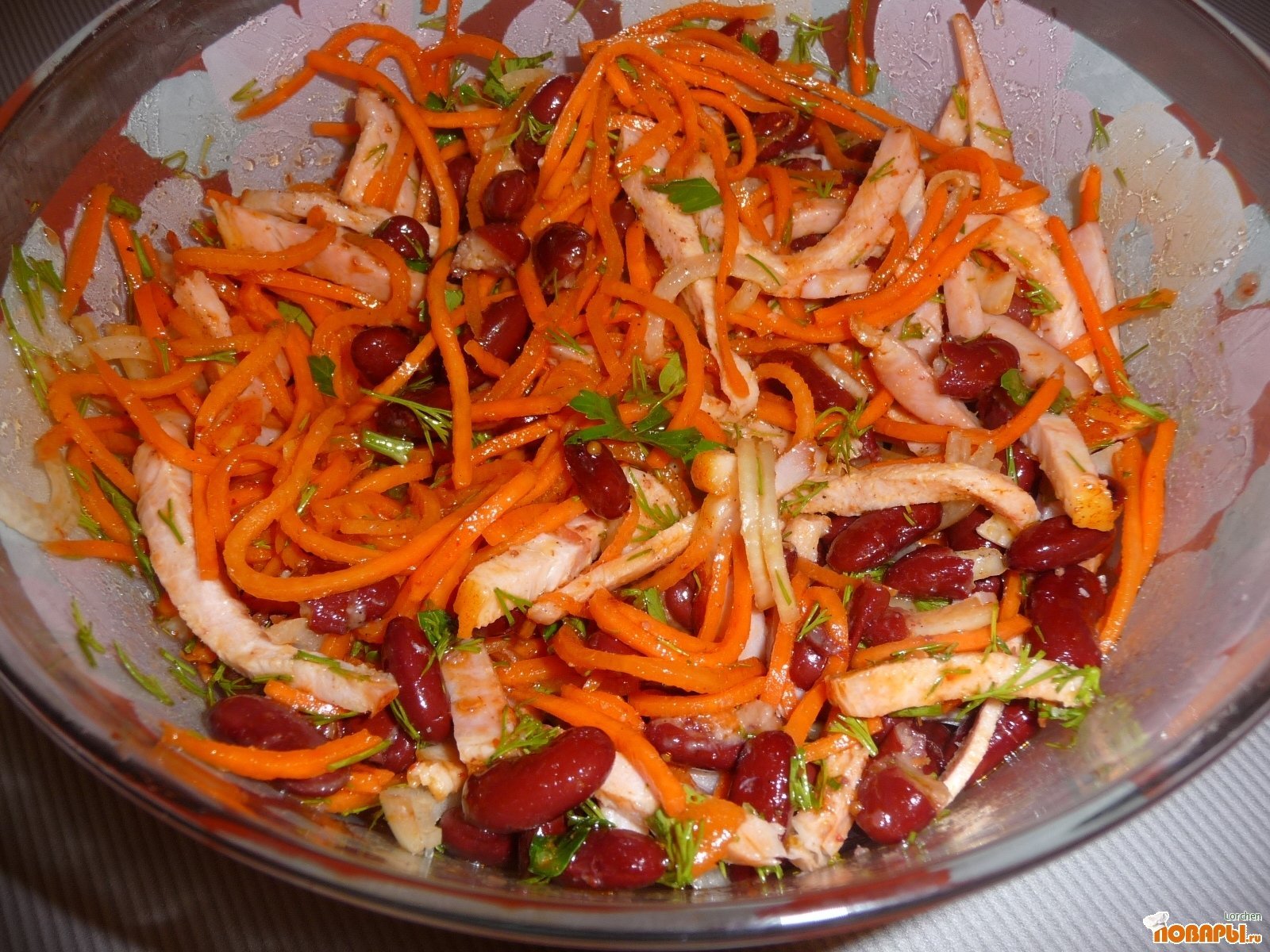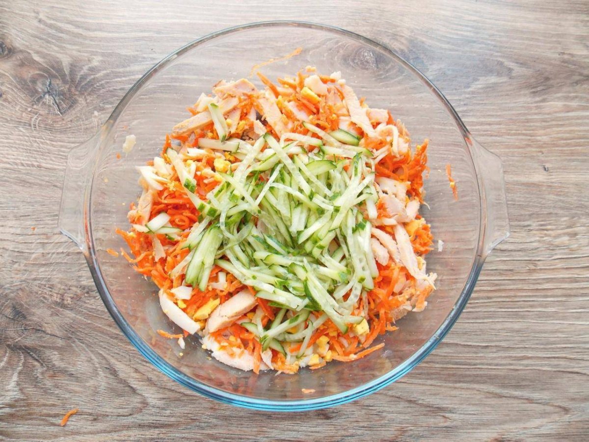 Салат из копчёной курицы с корейской морковкой и огурцом