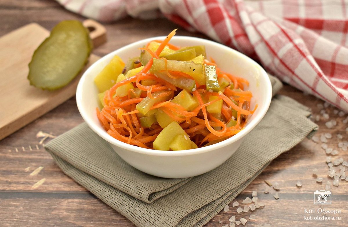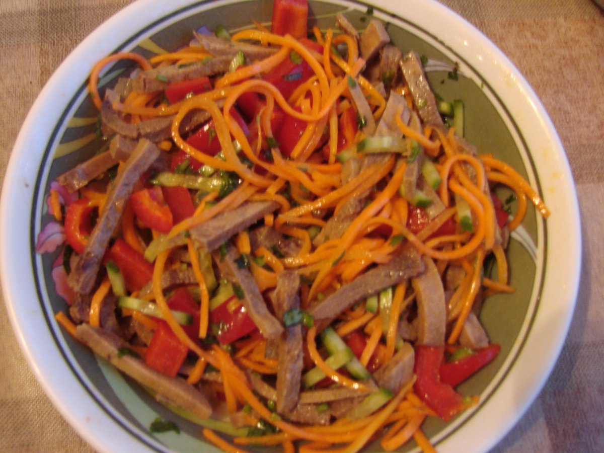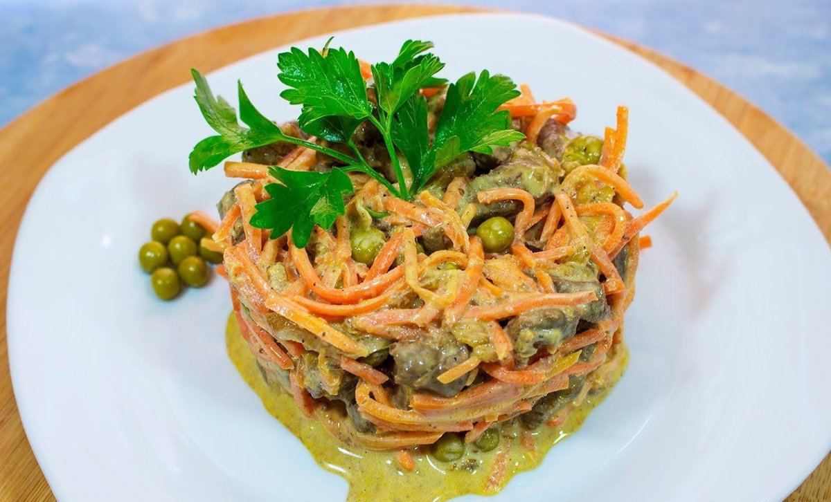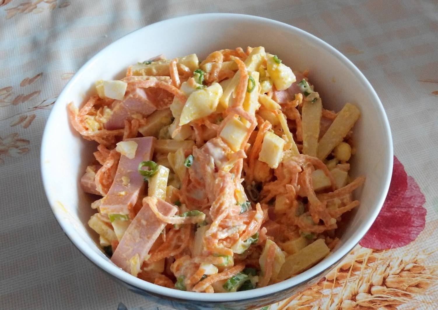 Салат из копчёной курицы с корейской морковкой и огурцом