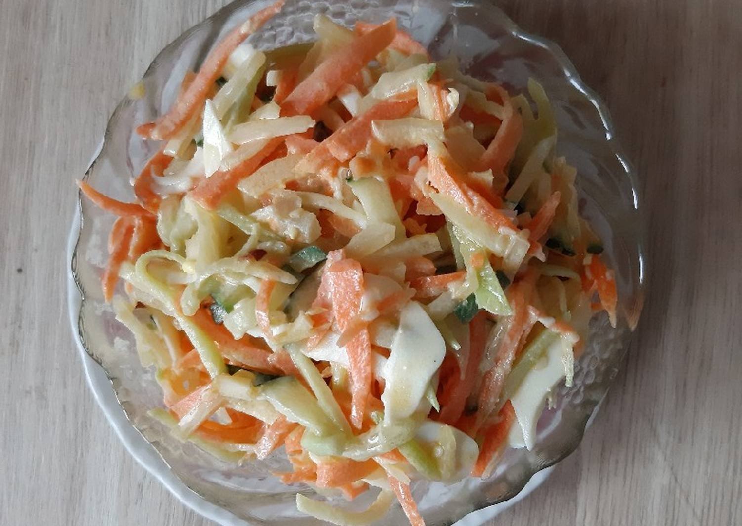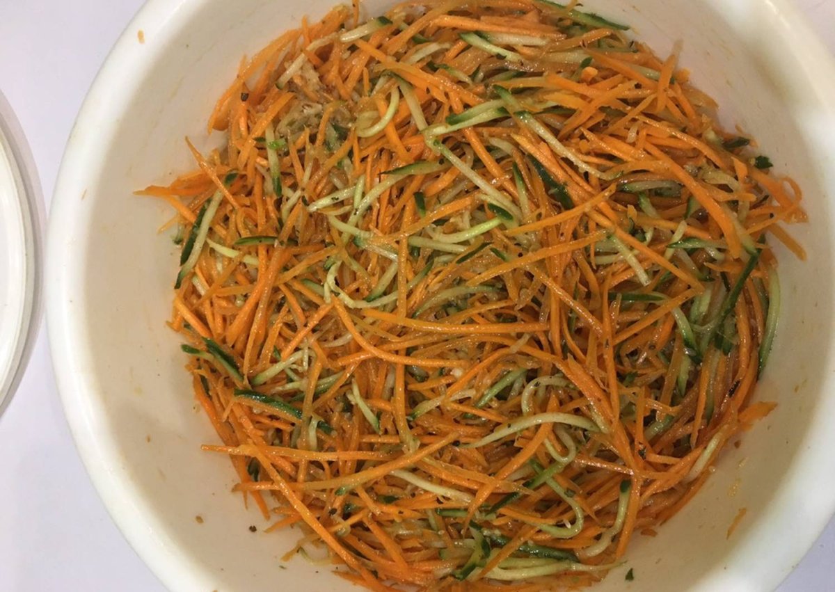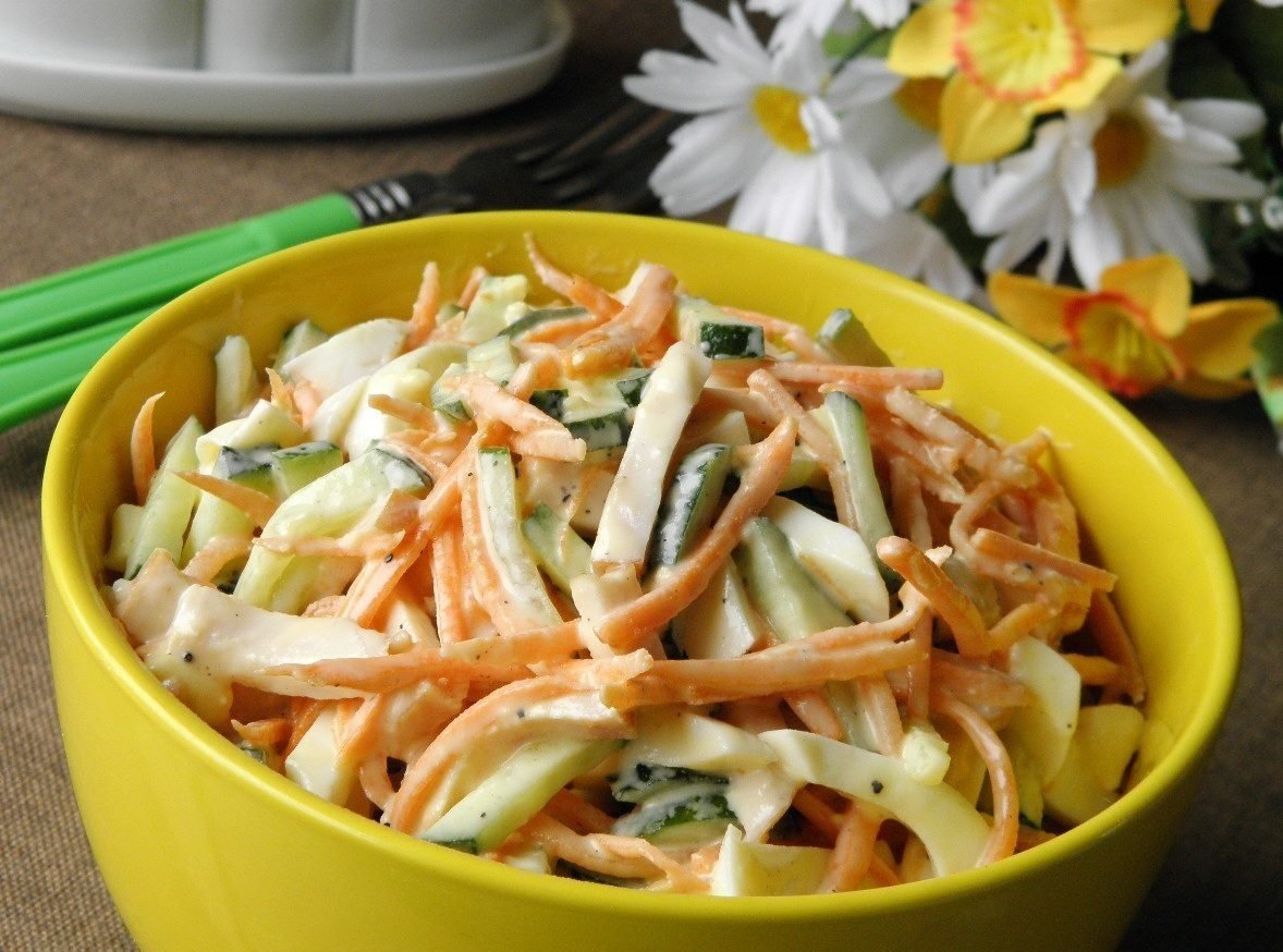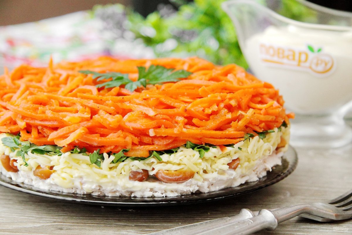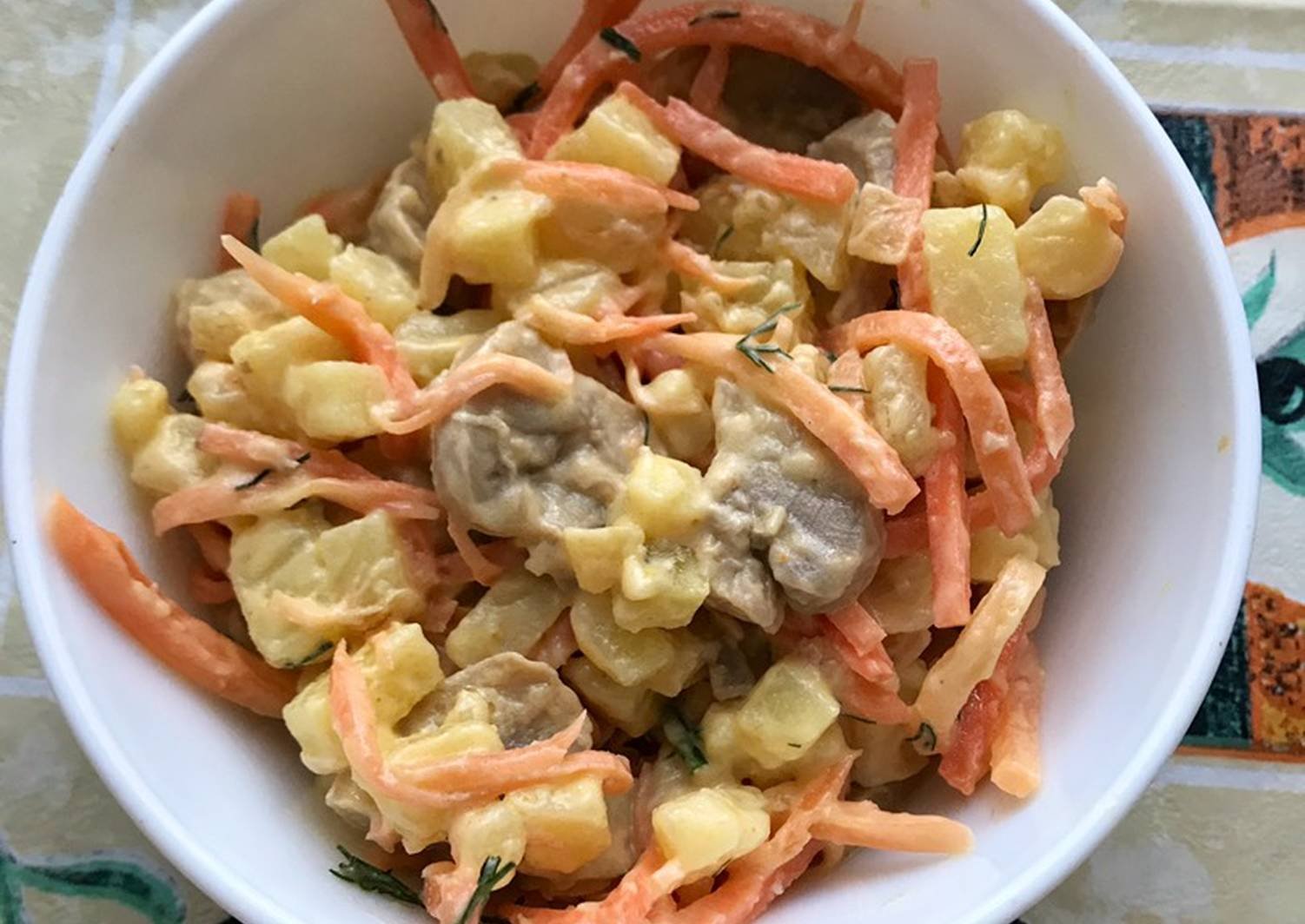 Салат из копчёной курицы с корейской морковкой и огурцом