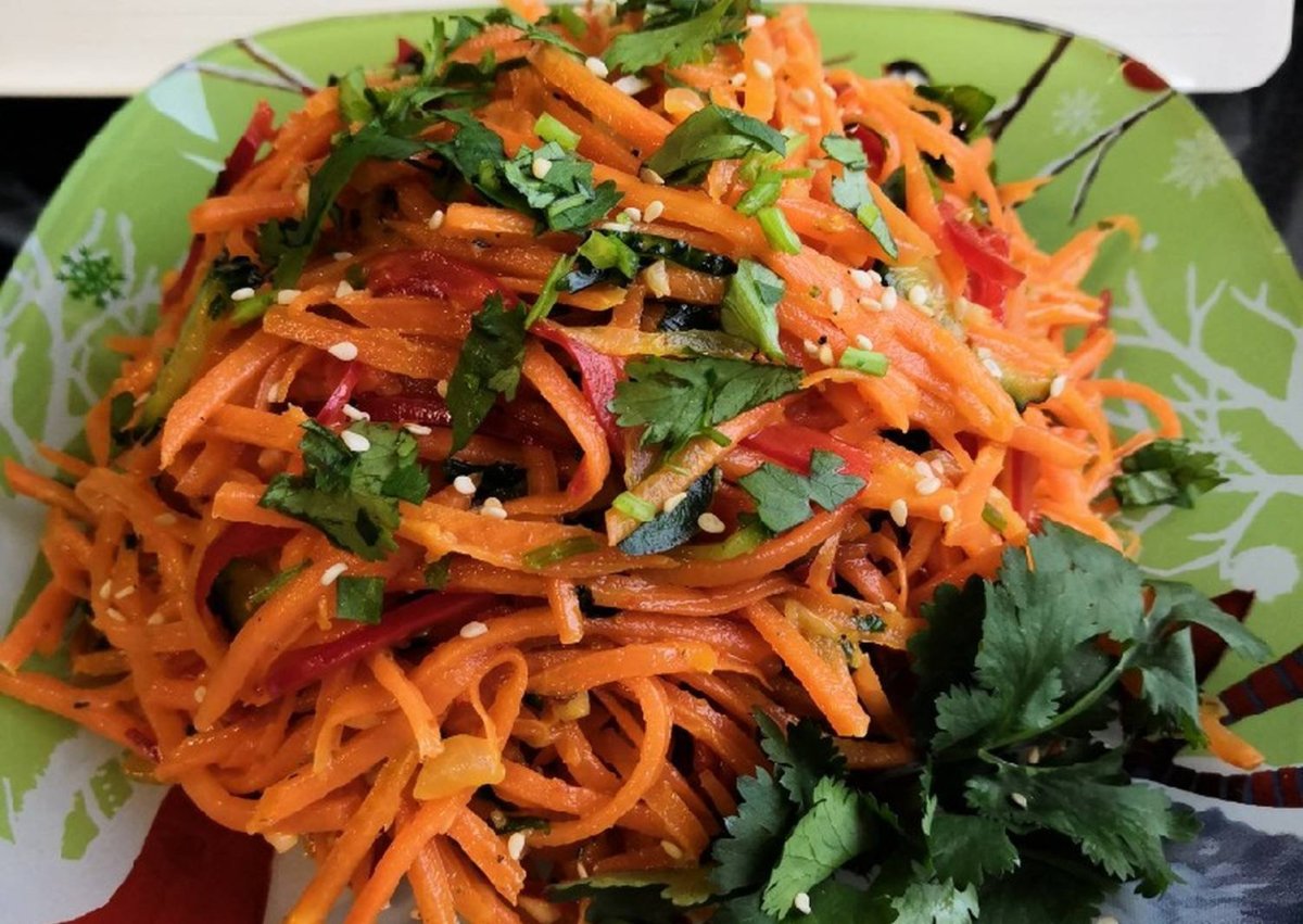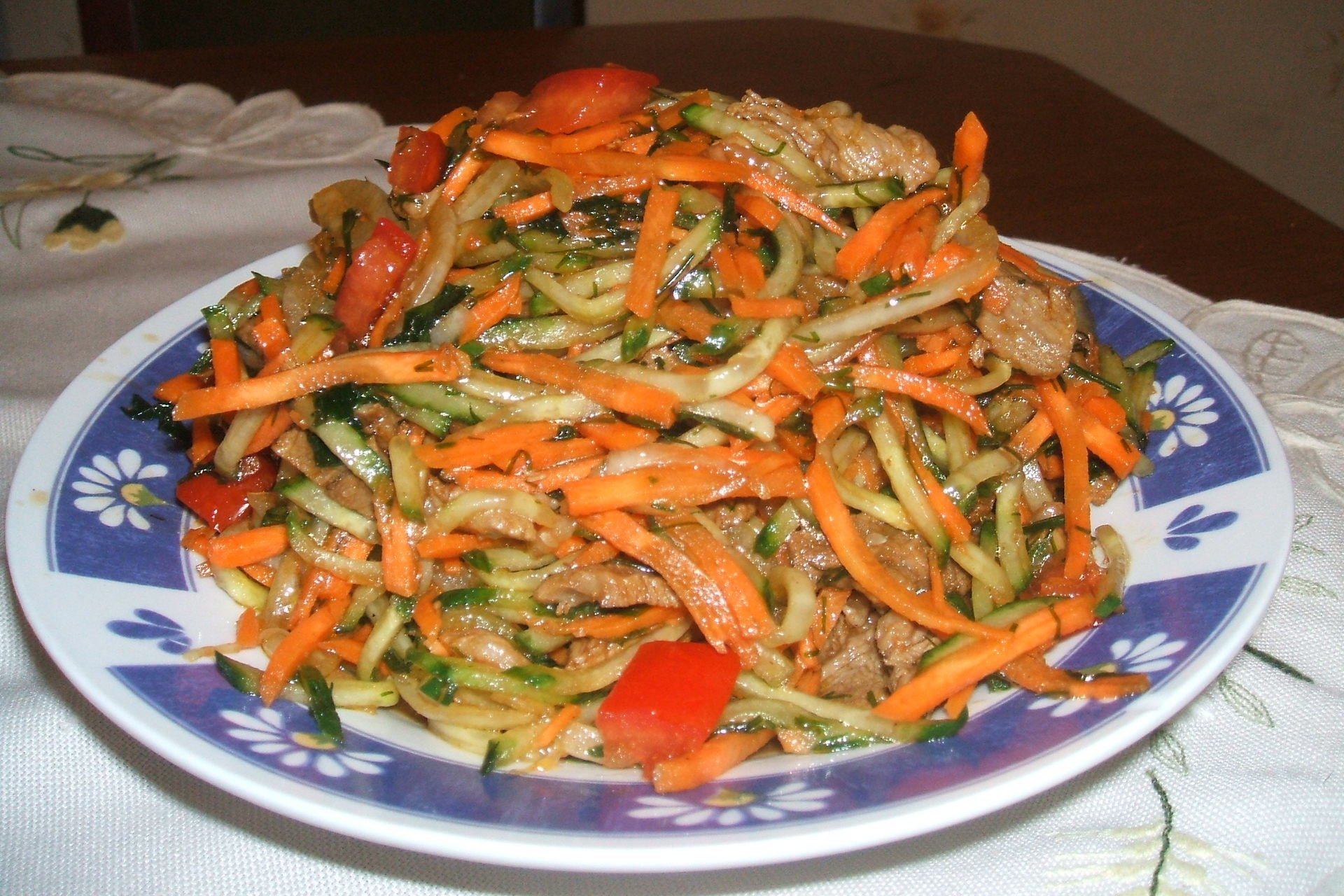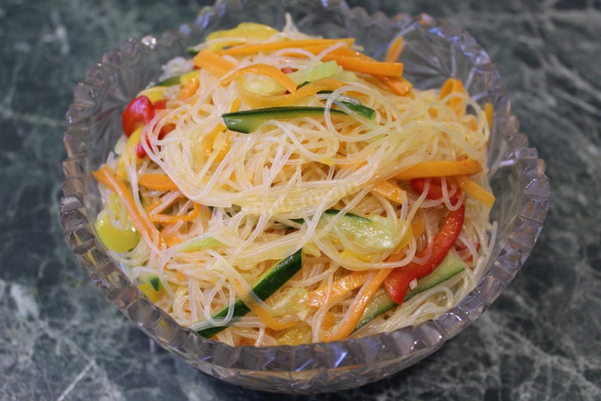 Салат с корейской морковью и курицей и кукурузой и огурцом