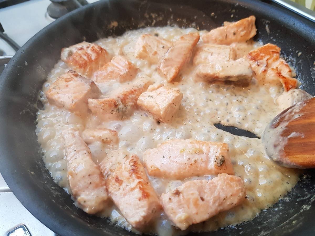 Красная рыба кусочками в сливочном соусе