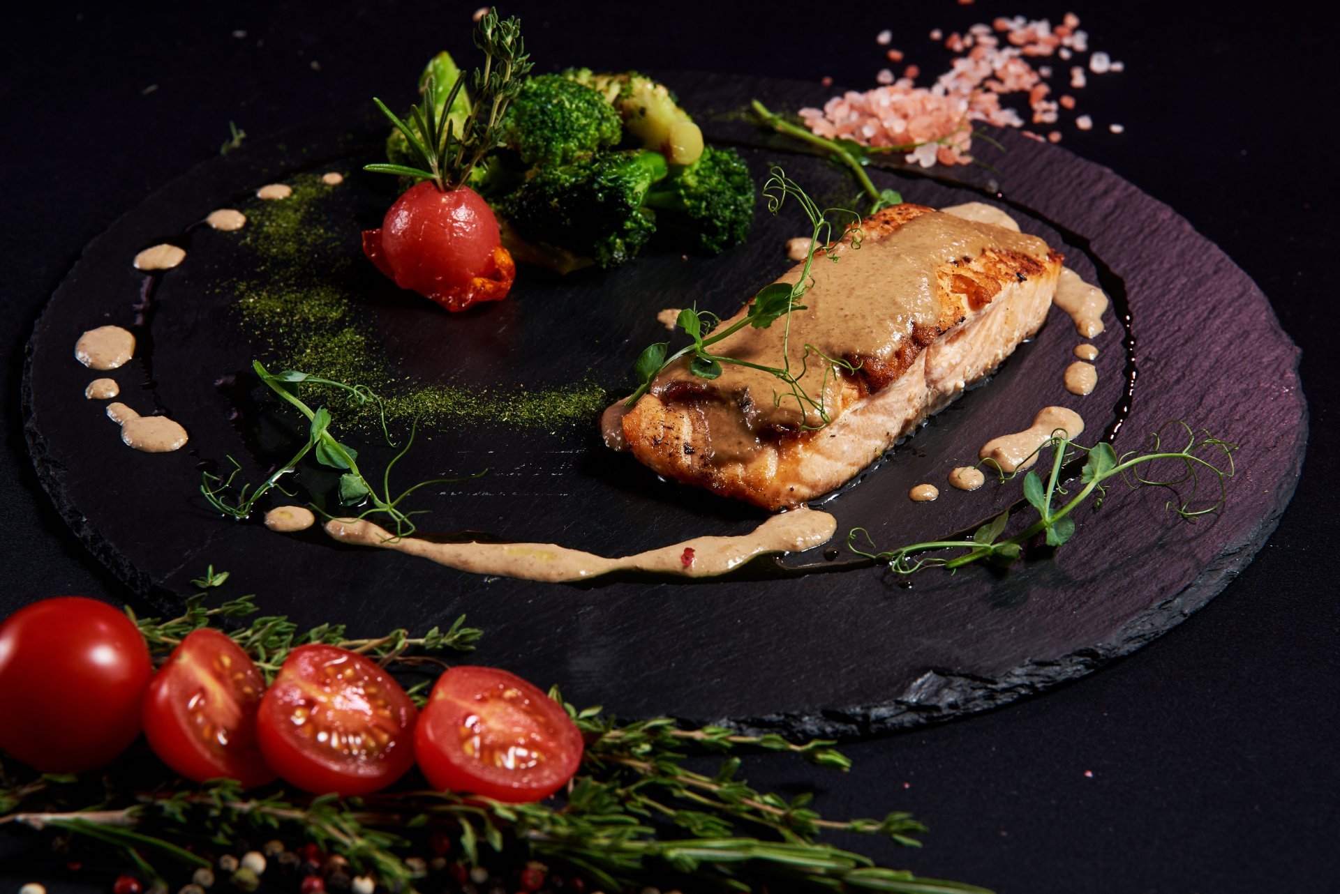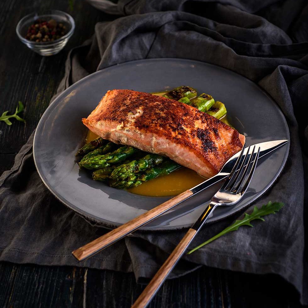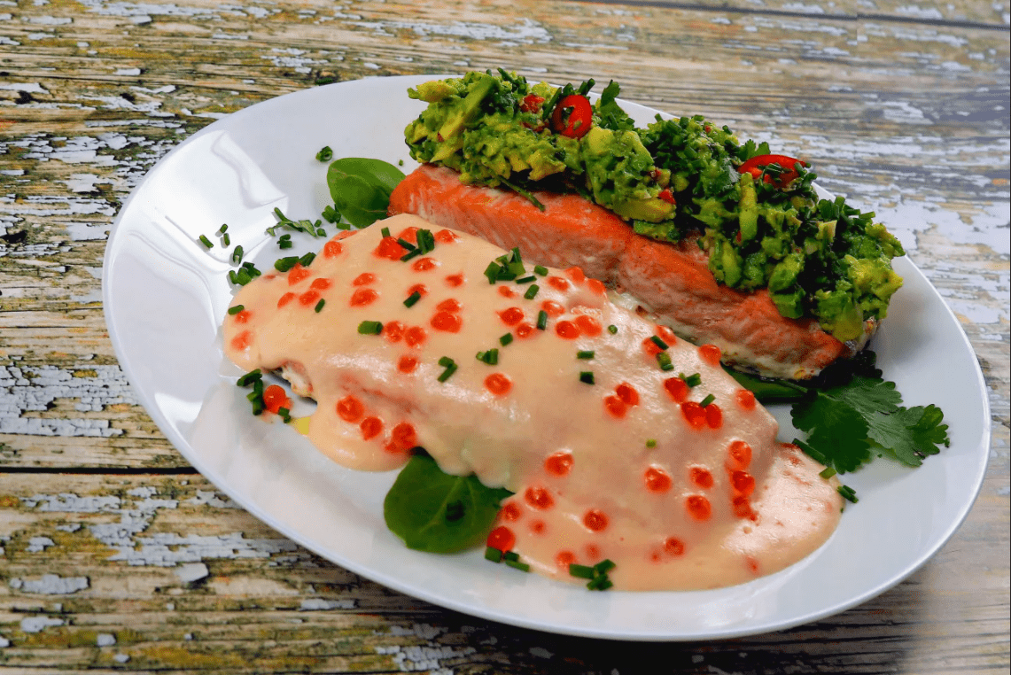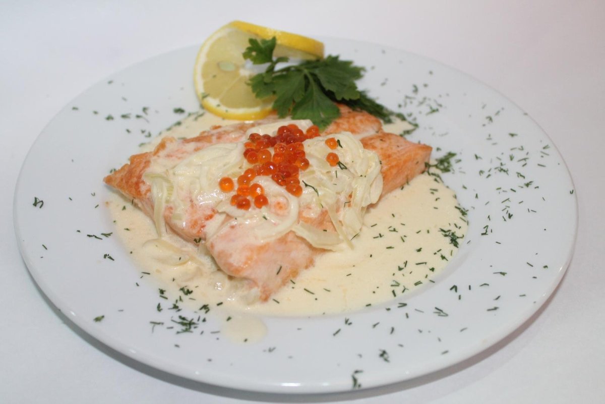 Стейк из семги с икорным соусом