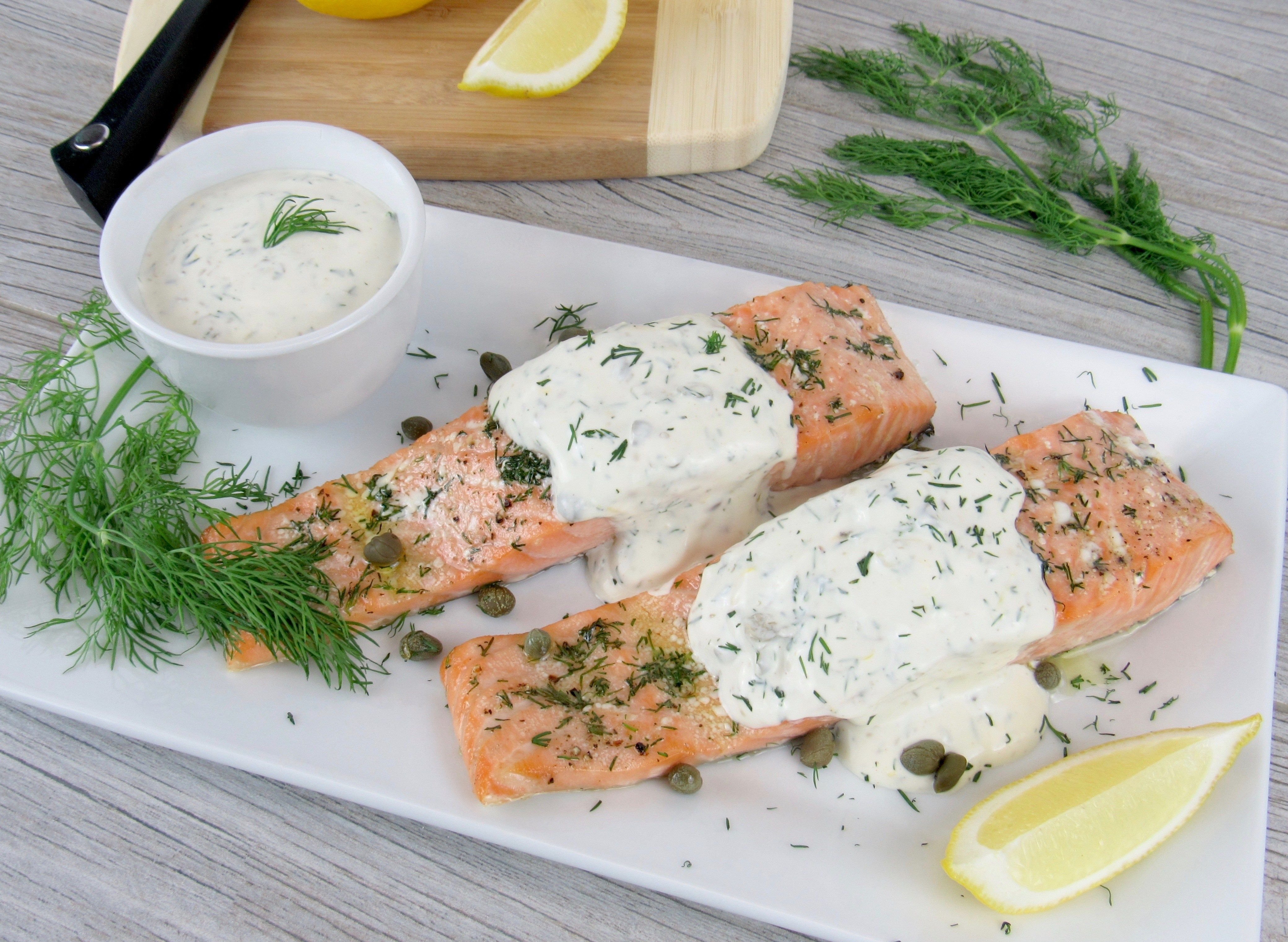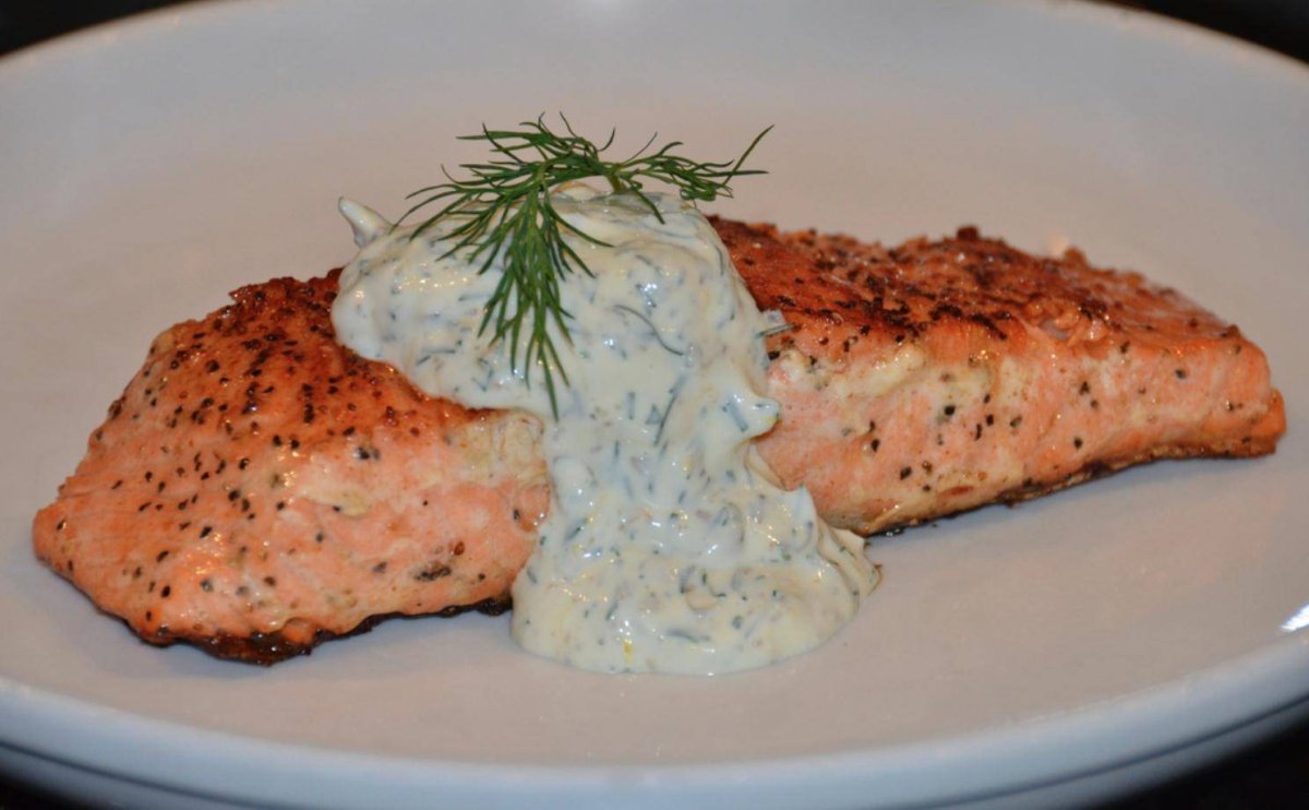 Красная рыба с соусом тартар