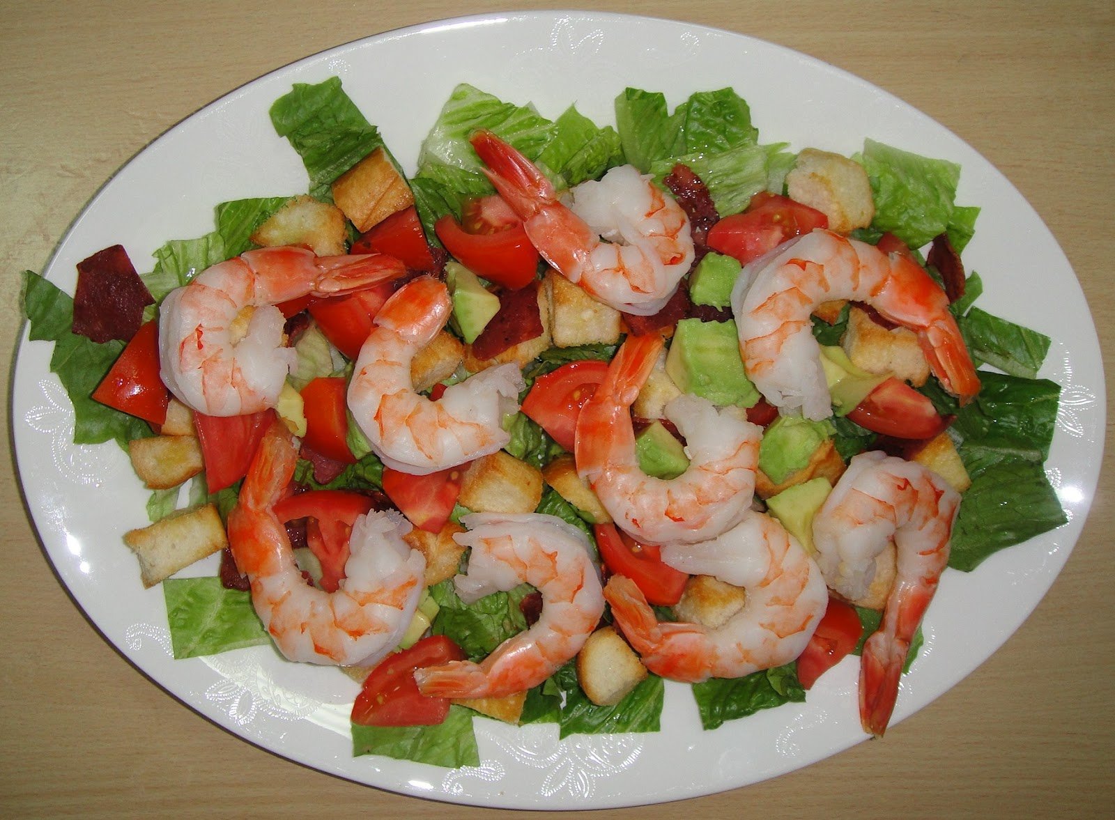 Салат украшенный креветками