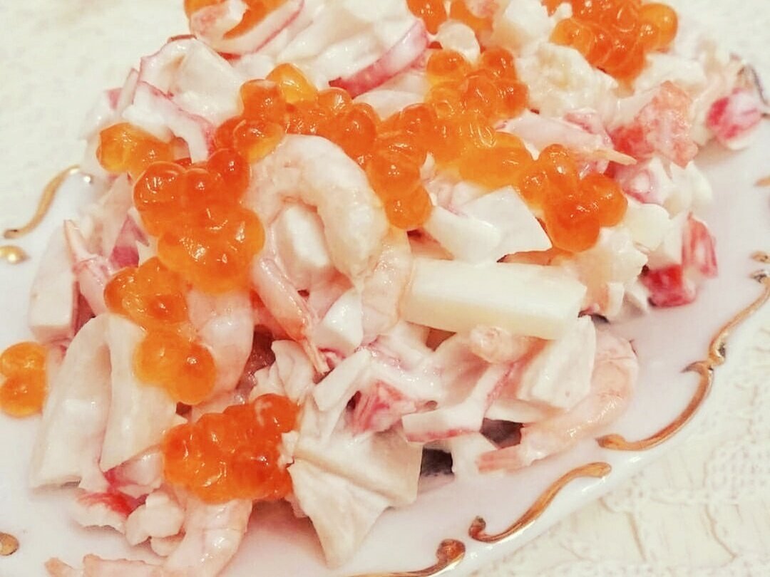 Салат из креветок и крабовых палочек