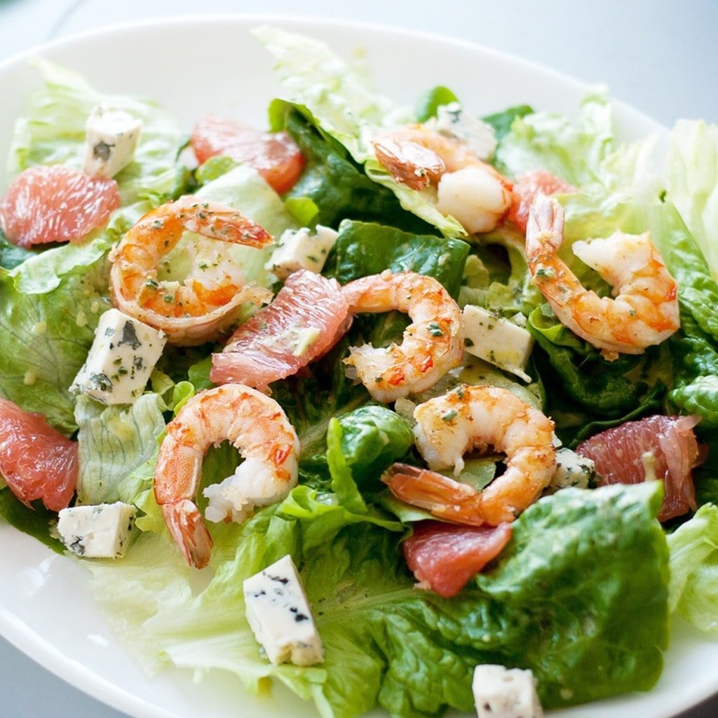 Салат с креветками и грейпфрутом
