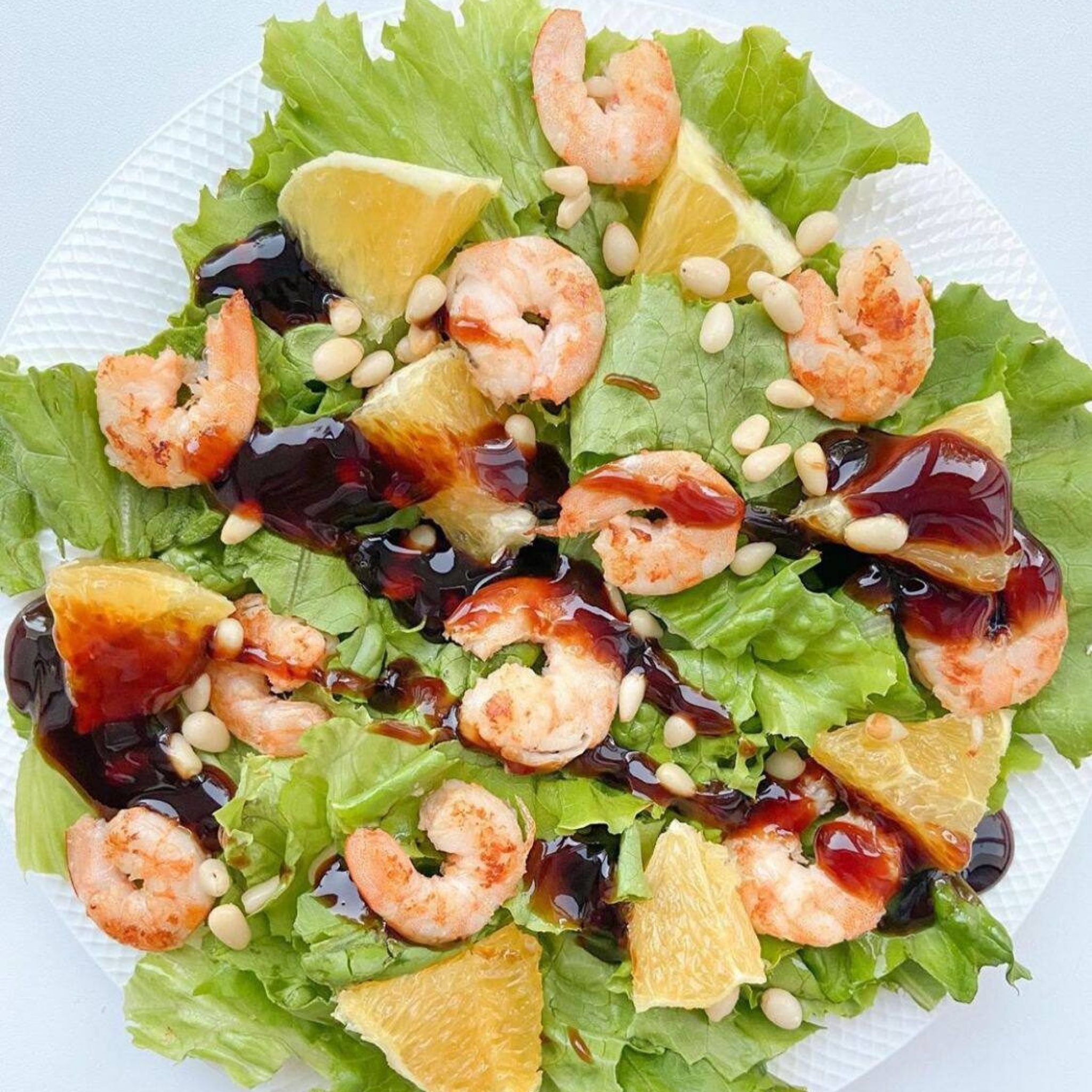 Салат с креветками и апельсино