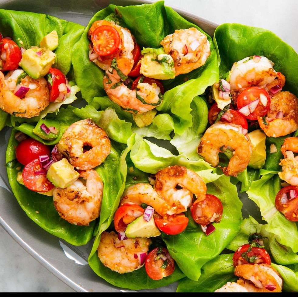 Салат с рукколой и креветками помидоры черри
